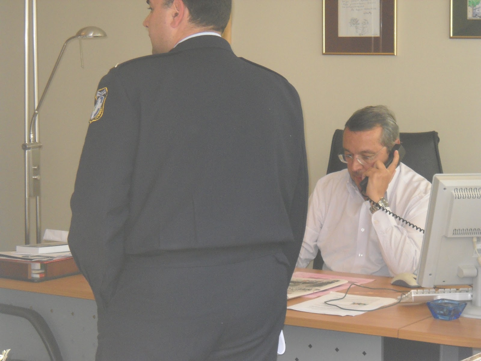 Λίγα λεπτά πριν από τη σύλληψη του εκδότη της εφημερίδας Παρασκευής +13, Αιμίλιου Λιάτσου. Ο Αιμίλιος Λιάτσος, από το γραφείο του στην εφημερίδα, τηλεφωνεί στον δικηγόρο του ενώπιον του προϊσταμένου του Α.Τ. Συντάγματος για να τον ενημερώσει σχετικά με την σύλληψή του. Μπροστά του έχει το πρωτοσέλιδο της εφημερίδας…
