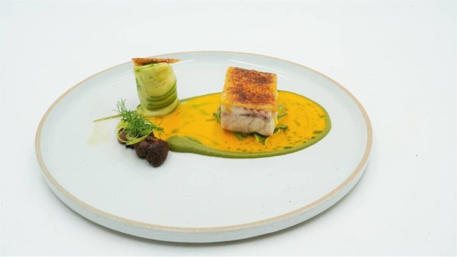 Το πιάτο που έπρεπε να αντιγράψουν οι παίκτες ήταν ροφός με πουρέ από πράσινη ελιά και ρολό από ταρτάρ ροφού σε κολοκύθι