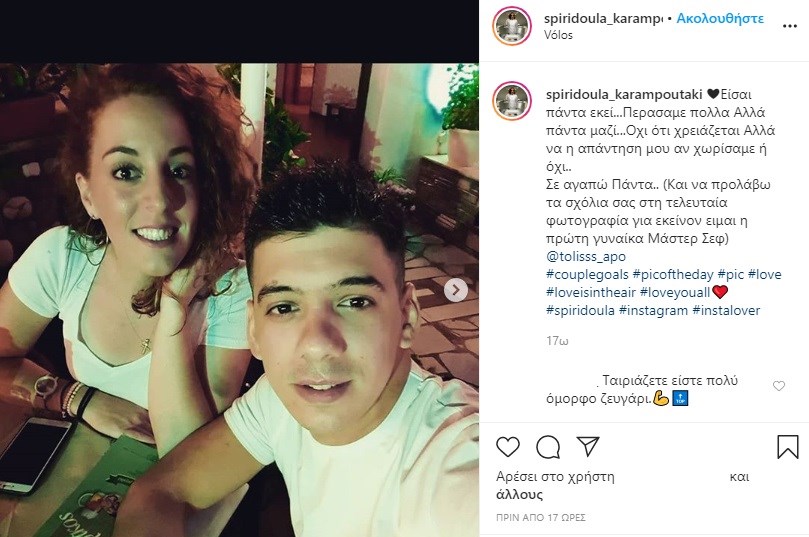 Η πρώην παίκτρια του reality μαγειρικής επέλεξε τρεις φωτογραφίες που ποζάρει στο πλευρό του συντρόφου της και της ανήρτησε στον λογαριασμό της στο instagram σχολιάζοντας -και ουσιαστικά απαντώντας: “Είσαι πάντα εκεί… Περάσαμε πολλά. Αλλά πάντα μαζί.. Όχι ότι χρειάζεται Αλλά να η απάντησή μου αν χωρίσαμε ή όχι. Σε αγαπώ Πάντα (Και να προλάβω τα σχόλιά σας στη ντελευταία φωτογραφία για εκείνον είναι η πρώτη γυναίκα Μάστερ Σεφ).