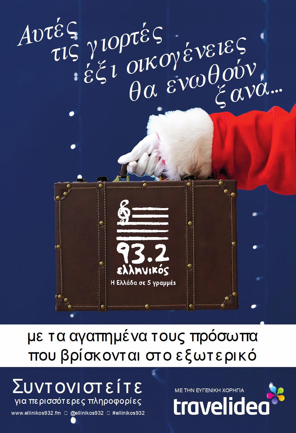 Ο Ελληνικός 93,2 και το Travel Idea, δίνουν τη δυνατότητα σε έξι συνολικά οικογένειες, να φέρουν στην Ελλάδα το αγαπημένο τους πρόσωπο από όποια πόλη της Ευρώπης και αν βρίσκεται, κάτι που γίνεται για πρώτη φορά από ελληνικό ραδιοφωνικό σταθμό.