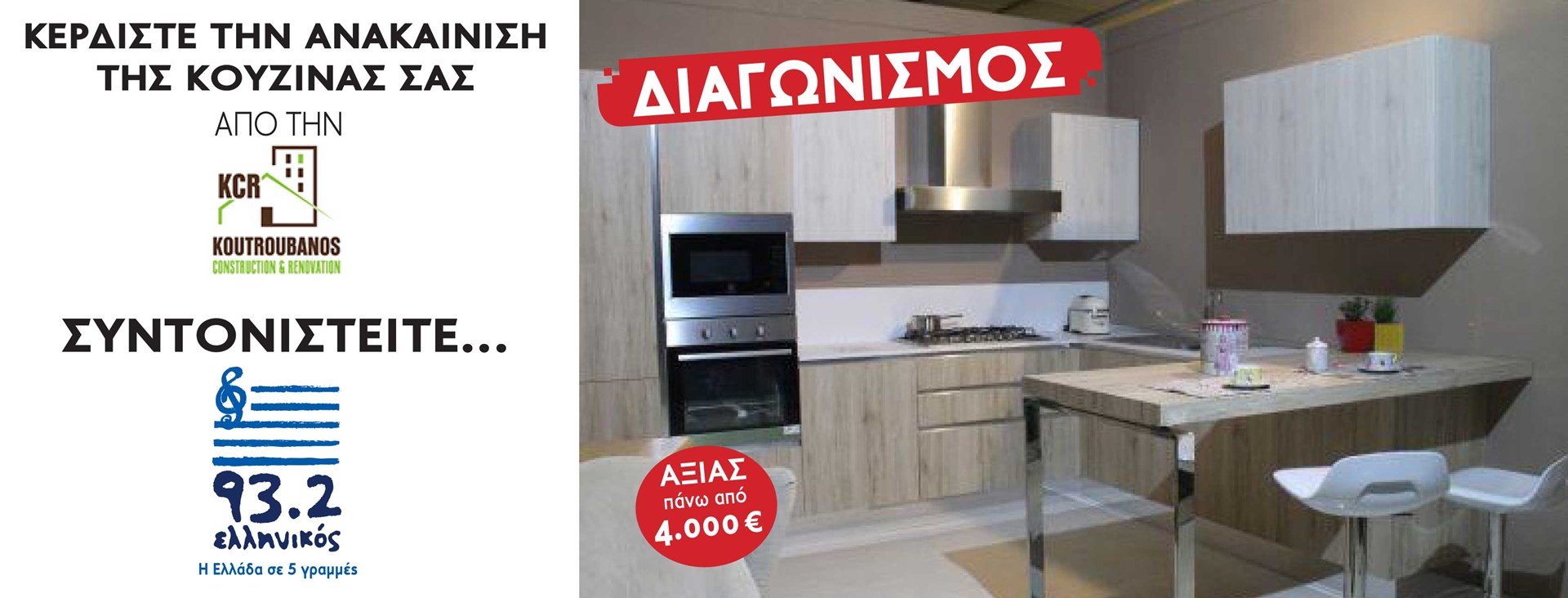 Ο Ελληνικός 93,2 και η τεχνική εταιρία KCR Κουτρουμπάνος σας κάνουν δώρο την κουζίνα των ονείρων σας!