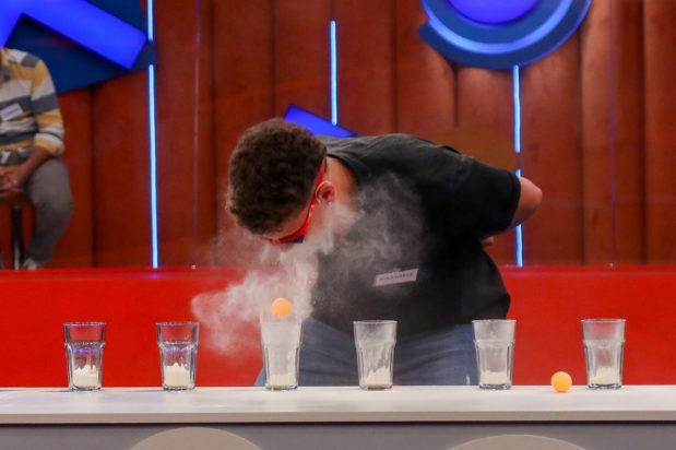Πόσα μπαλάκια ping pong θα βγάλουν οι άντρες… φυσώντας μέσα στα ποτήρια που είναι γεμάτα αλεύρι;