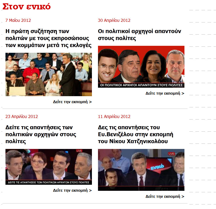 Οι εκπομπές είναι αρχειοθετημένες με χρονολογική σειρά και η κατηγορία θα ανανεώνεται μετά το τέλος κάθε νέας εκπομπής.Πατήστε εδώ για να περιηγηθείτε στην κατηγορία