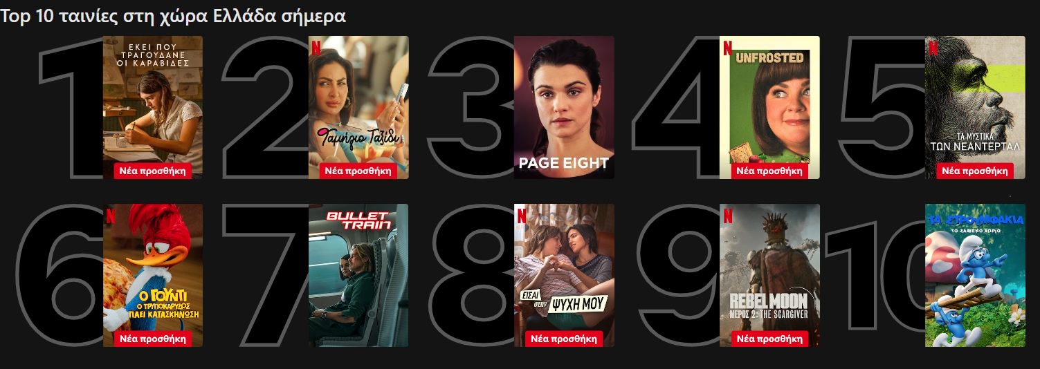Ας δούμε όμως ποιες ταινίες βρίσκονται στην κορυφή του Netflix σήμερα, Τετάρτη 8 Μαΐου 2024.