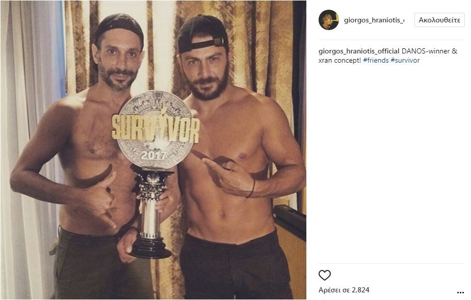 Ο Γιώργος Χρανιώτης και ο Γιώργος Αγγελόπουλος, είχαν αναπτύξει μία ισχυρή φιλία κατά τη διάρκεια της συμμετοχής τους στο Survivor, η οποία όπως όλα δείχνουν συνεχίζεται και εκτός παιχνιδιού.Ο ηθοποιός μαζί με τον Ντάνο, έβγαλαν… τις μπλούζες τους και πόζαραν κρατώντας το έπαθλο του δημοφιλούς ριάλιτι επιβίωσης.Τη φωτογραφία ανέβασε ο Γιώργος Χρανιώτης στον προσωπικό του λογαριασμό στο Instagram, και όπως ήταν αναμενόμενο απέσπασε χιλιάδες likes.Δείτε την ανάρτηση: