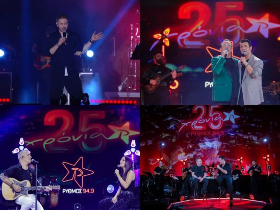 Οι δύο καλλιτέχνες ένωσαν τις φωνές τους στο 18ο Exclusive Live Event του ΡΥΘΜΟΥ 94.9 «Πέφτει η νύχτα με… ΡΥΘΜΟ», που πραγματοποιήθηκε στη βραβευμένη αίθουσα Vmax Sphera των Village Cinemas στο The Mall Athens με παρουσιάστρια τη ραδιοφωνική παραγωγό Γιώτα Τσιμπρικίδου.