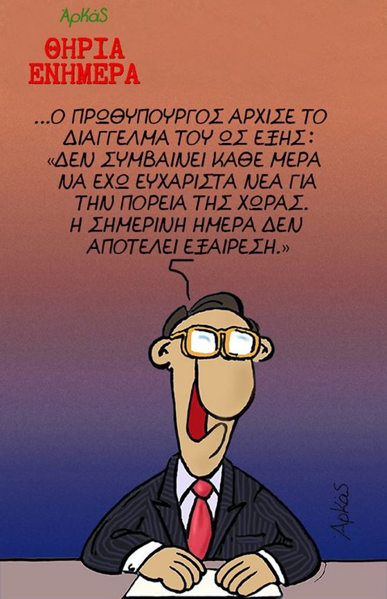 Το νέο σκίτσο του Αρκά στο facebook σατιρίζει το διάγγελμα του Πρωθυπουργού.