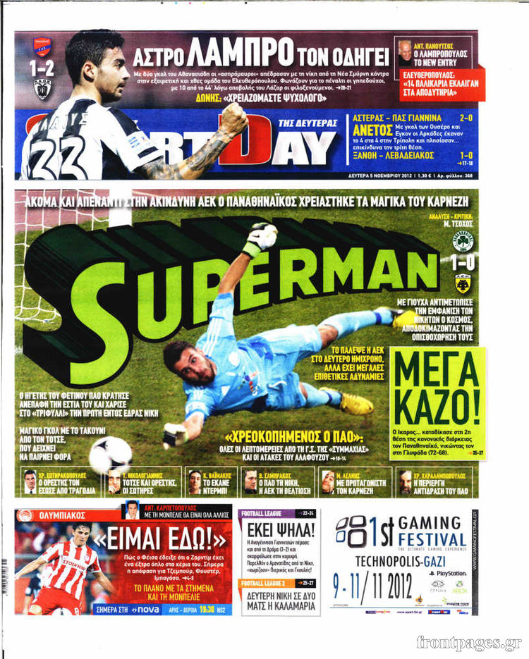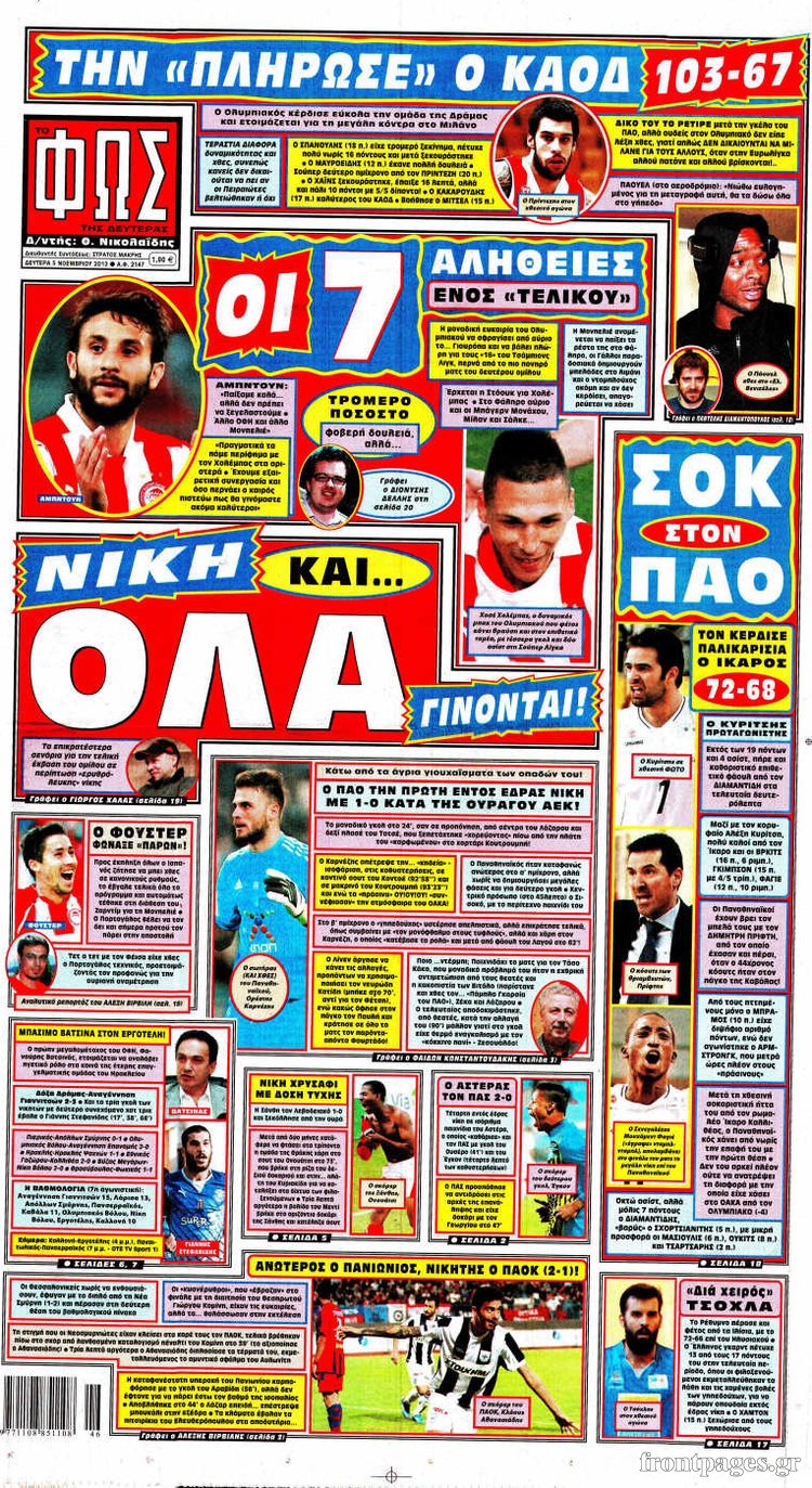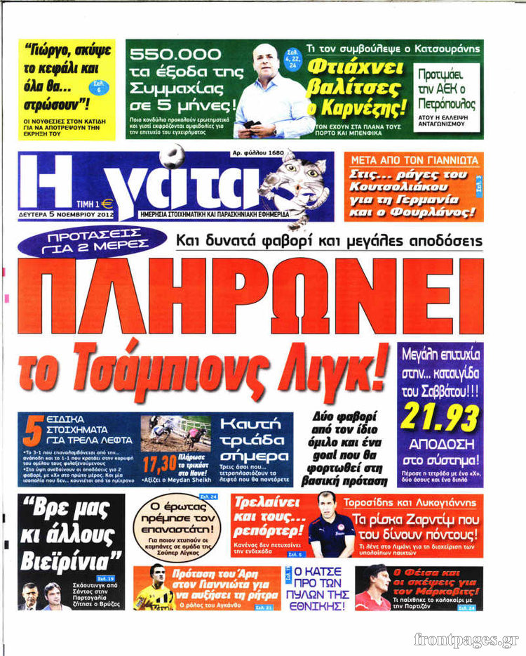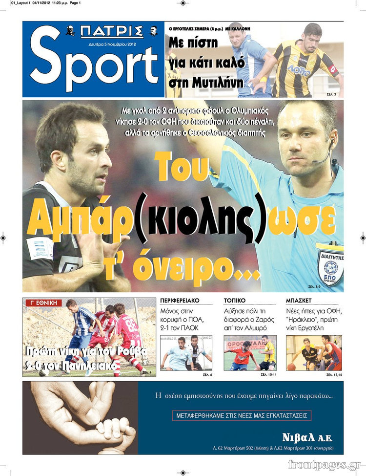 Ο αθλητικός Τύπος Enikos Newsroom 08:22, Δευτέρα 05 Νοεμβρίου 2012 Media Ο αθλητικός Τύπος «Ξεφυλλίστε» τα πρωτοσέλιδα των σημερινών αθλητικών εφημερίδων εδώ… Μοιράσου το: σχολίασε κι εσύ (0 σχόλια) Ακολουθήστε το enikos.gr στο Google News και μάθετε πρώτοι όλες τις ειδήσεις Δείτε όλες τις τελευταίες ειδήσεις από την Ελλάδα και τον Κόσμο στο enikos.gr Ειδήσεις Ροή Ειδήσεων 3 ώρες πριν Κύκλωμα διακίνησης ναρκωτικών σε σχολεία: Βίντεο ντοκουμέντο από τα βασανιστήρια στους ανήλικους – Συζητούσαν για το πώς θα κάνουν «ξέπλυμα χρήματος» 2 ώρες πριν Κλιμακώνουν τις κινητοποιήσεις τους οι αγρότες: Κλείνουν τη Δευτέρα τις σήραγγες των Τεμπών για τα φορτηγά – Ανοίγουν την Τρίτη τους δρόμους για τους εκδρομείς 3 ώρες πριν Αιματηρό επεισόδιο στον Άγιο Παντελεήμονα – Δύο τραυματίες, αναζητείται ο δράστης 2 ώρες πριν ΗΠΑ: Αυξάνουν την πίεση στην Βενεζουέλα – Το νέο ρεσάλτο σε τάνκερ και ο στόχος του Τραμπ 2 ώρες πριν Κασσελάκης για παραίτηση Μάλαμα: «Η πορεία μας δεν θα καθοριστεί από μεμονωμένα πρόσωπα, μηχανισμούς και προσωπικές ατζέντες» 3 ώρες πριν Ύπνος: Τι είναι ο «κανόνας 3-3-3» που χρησιμοποιεί ένας γιατρός για να ξεχωρίσει την κόπωση από την αϋπνία 4 ώρες πριν Αριθμολογία: Οι άνθρωποι που έχουν γεννηθεί αυτές τις 4 ημερομηνίες, είναι οι πιο πιστοί και αφοσιωμένοι σύντροφοι 2 ώρες πριν Αρχαιολογικό θρίλερ στην καρδιά της Ευρώπης: Παράξενο θραύσμα με ανάγλυφα και σφηνοειδή γραφή ανακαλύφθηκε σε μέρος που δεν περίμενε κανείς 2 ημέρες πριν Enerwave: Το νέο «ρεύμα» στη λιανική ενέργειας που αλλάζει την εμπειρία του καταναλωτή 10 λεπτά πριν Πέθανε ο Rosa von Praunheim – Πρωτοπόρος του queer κινηματογράφου και της γκέι απελευθέρωσης 22 λεπτά πριν MasterChef: Στον… αέρα το τρέιλερ του 10ου κύκλου – ΒΙΝΤΕΟ 36 λεπτά πριν Περιστέρι: Έφοδος της Αστυνομίας σε νυχτερινό κέντρο που σέρβιρε αλκοόλ σε ανήλικους – Μία σύλληψη 45 λεπτά πριν Γουατεμάλα: 12 νεκροί κοντά στην πρωτεύουσα – Για ξεκαθάρισμα λογαριασμών κάνουν λόγο οι Αρχές 58 λεπτά πριν Μαρόκο – Κομόρες 2-0: Ιδανική πρεμιέρα στο Copa Africa με… αριστούργημα του Ελ Κααμπί – Δείτε Βίντεο ENIKOS NETWORK Οι γυναίκες έχουν βρει μια νέα απόλαυση στην κρεβατοκάμαρα που οι περισσότεροι άνδρες αγνοούν Christmas glow: 5 χρυσές συμβουλές για επιδερμίδα που λάμπει από ομορφιά τα Χριστούγεννα Νέο έτος ρεκόρ για τον ελληνικό τουρισμό το 2025: «Είμαστε μέσα στους 10 πλέον επισκέψιμους προορισμούς παγκοσμίως» λέει η ... Τιμές καυσίμων: Πόσο θα πληρώσουν οι εκδρομείς των Χριστουγέννων – Το κόστος μετακινήσεων σε δημοφιλείς προορισμούς Χαρτογραφώντας το «σημείο χωρίς επιστροφή»: Για πρώτη φορά αποκαλύπτεται με λεπτομέρεια το ακανθώδες όριο της ατμόσφαιρας τ... Η Google καταργεί τη λειτουργία «dark web report» – Πώς θα μπορούν οι χρήστες να διαγράφουν τα δεδομένα τους περισσότερα 00:13 , Δευτέρα 22 Δεκεμβρίου 2025 MasterChef: Στον… αέρα το τρέιλερ του 10ου κύκλου – ΒΙΝΤΕΟ Κυκλοφόρησε το τρέιλερ για τον 10ο κύκλο του MasterChef, σηματοδοτώντας την επιστροφή του δημο... 21:30 , Κυριακή 21 Δεκεμβρίου 2025 Ο Δικαστής: Στα χέρια της Αστυνομίας βίντεο, που ανατρέπει όλα τα δεδομένα – Στενεύει ο κλοιός γύρω από τον Δικαστή Καταιγιστικές εξελίξεις στο τελευταίο επεισόδιο της χρονιάς της σειράς “Ο Δικαστής”... 17:18 , Κυριακή 21 Δεκεμβρίου 2025 «Η Μεγάλη Χίμαιρα»: Μάγεψε το κοινό κατά την avant-première της προβολής της Την Πρωτοχρονιά (Πέμπτη 1η Ιανουαρίου 2026) στο ERTFLIX θα γίνει η πρεμιέρα της πολυαναμενόμεν... 15:08 , Κυριακή 21 Δεκεμβρίου 2025 