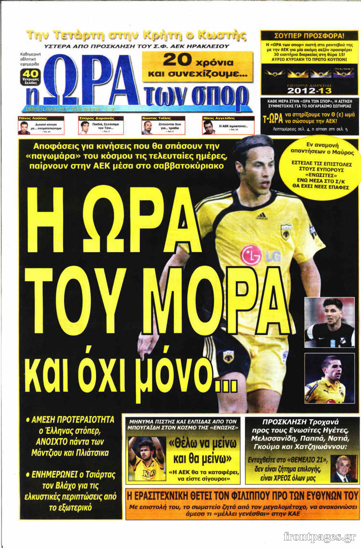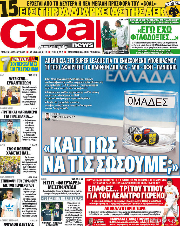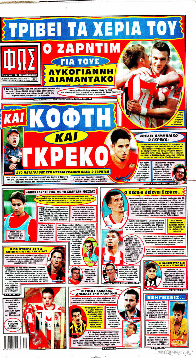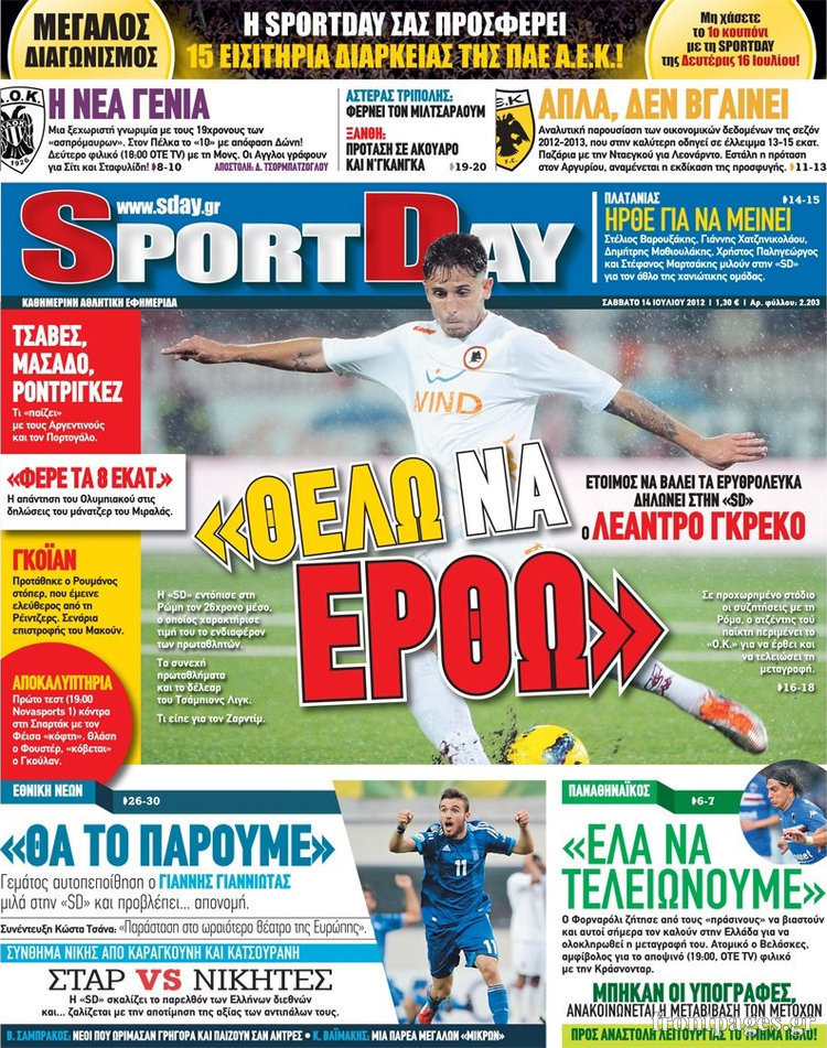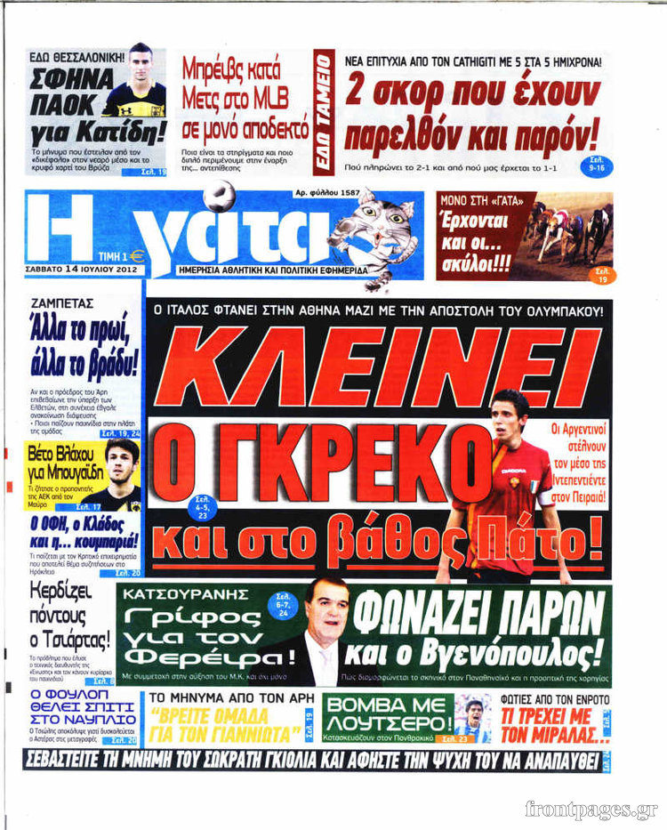 Ο αθλητικός Τύπος Enikos Newsroom 10:13, Σάββατο 14 Ιουλίου 2012 Media ΕΦΗΜΕΡΙΔΕΣ Μοιράσου το: σχολίασε κι εσύ (0 σχόλια) Ακολουθήστε το enikos.gr στο Google News και μάθετε πρώτοι όλες τις ειδήσεις Δείτε όλες τις τελευταίες ειδήσεις από την Ελλάδα και τον Κόσμο στο enikos.gr Ειδήσεις Ροή Ειδήσεων 2 ώρες πριν Αυξάνουν την πίεση προς την κυβέρνηση οι αγρότες: Κλείνουν παρακαμπτήριους και ανοίγουν διόδια – Τι θα γίνει τις γιορτές 1 ώρα πριν ΟΠΕΚΕΠΕ: Προφυλακιστέος ο φερόμενος αρχηγός και ο λογιστής της εγκληματικής οργάνωσης 2 ώρες πριν Φοινικούντα: Το Σάββατο απολογείται ο 30χρονος γιος γνωστού επιχειρηματία της Πλάκας που παραδόθηκε – Όσα είπε στους αστυνομικούς και ο ρόλος του στο έγκλημα 2 ώρες πριν Μπορεί ο Μαδούρο να αντέξει τον αποκλεισμό του Τραμπ; Τι θα χρειαστεί η Ουάσινγκτον για να τον ανατρέψει 3 ώρες πριν Πρίγκιπας Ουίλιαμ – Κέιτ: Η νέα οικογενειακή φωτογραφία για τις Χριστουγεννιάτικες κάρτες του 2025 3 ώρες πριν Ύπνος: Η απλή βραδινή ρουτίνα για να προστατεύσετε τα μαλλιά σας από το κρύο κατά τη διάρκεια του χειμώνα 4 ώρες πριν Manifesting: Πώς να συναντήσετε τον σύντροφο της ζωής σας, ανάλογα με τον μήνα γέννησής σας 2 ημέρες πριν 20 χρόνια τα Χριστούγεννα ξεκινούν στα Public με μεγάλη ποικιλία σε δώρα! 2 ώρες πριν Αρχαιολόγοι ανακάλυψαν ρωμαϊκά τεχνουργήματα από μια πόλη που δεν υπήρξε ποτέ – Τα τρία εντυπωσιακά κτίρια και ο αμφορέας με τις… σαρδέλες 3 λεπτά πριν Conference League: Με Νόα, Ντρίτα, Άλκμααρ ή Τσέλιε στους «16» η ΑΕΚ 11 λεπτά πριν Conference League: Απευθείας στους «16» η ΑΕΚ Λάρνακας και η Ρακόβ των Σβάρνα και Κωνσταντόπουλου – Τα αποτελέσματα και η βαθμολογία, 3η η ΑΕΚ 21 λεπτά πριν Σε ομάδες που συνδέονται με το ρωσικό κράτος αποδίδει η Δανία δύο κυβερνοεπιθέσεις που δέχθηκε 36 λεπτά πριν Βαθμολογία UEFA: Η Πολωνία προσπέρασε την Ελλάδα 52 λεπτά πριν Conference League: Οι ομάδες που προκρίθηκαν στους «16» και τα «ζευγαρώματα» στα νοκ άουτ ENIKOS NETWORK Σε περίοδο αυξημένης δραστηριότητας η γρίπη στην Ελλάδα-Μέτρα προστασίας από τον ΕΟΔΥ Σκέφτεστε συνέχεια συζητήσεις που έχετε κάνει; Τι σημαίνει αυτό, σύμφωνα με ειδικό Στεγαστικό: Τι λέει η ΠΟΜΙΔΑ για τα νέα μέτρα που ανακοίνωσε ο Κυριάκος Μητσοτάκης Λαγκάρντ: Αισιόδοξη για την ανάπτυξη της Ευρωζώνης, αβέβαιη για τον πληθωρισμό Χαρτογραφώντας το «σημείο χωρίς επιστροφή»: Για πρώτη φορά αποκαλύπτεται με λεπτομέρεια το ακανθώδες όριο της ατμόσφαιρας τ... Η Google καταργεί τη λειτουργία «dark web report» – Πώς θα μπορούν οι χρήστες να διαγράφουν τα δεδομένα τους περισσότερα 17:45 , Πέμπτη 18 Δεκεμβρίου 2025 ROUK ZOUK: Εορταστικό επεισόδιο με καλεσμένους τους πρωταγωνιστές του «Γιατί ρε πατέρα» Το Σάββατο 20 Δεκεμβρίου στις 21:00, η Ζέτα Μακρυπούλια υποδέχεται εκλεκτούς ηθοποιούς που όλο... 17:20 , Πέμπτη 18 Δεκεμβρίου 2025 Άγιος έρωτας: Η Χριστίνα εξομολογείται στον πατέρα Νικόλαο, απόψε στις 21:00 στον Alpha Η Νότα αποφασίζει να εκδικηθεί τον Πέτρο και τον Στέφανο, για χάρη του Λούη, όμως τα πράγματα ... 16:50 , Πέμπτη 18 Δεκεμβρίου 2025 Να μ’ αγαπάς: Ζωή και Φωτεινή συμφιλιώνονται ως μάνα με κόρη, απόψε στις 20:00 Η ταυτότητα του Άγγελου αποκαλύπτεται στο νέο επεισόδιο της σειράς “Να μ’ αγαπάς... 15:52 , Πέμπτη 18 Δεκεμβρίου 2025 Το Σπίτι Δίπλα Στο Ποτάμι: Το καθηλωτικό τελευταίο επεισόδιο για το 2025 απόψε στις 22:30 Καθηλώνει το σημερινό επεισόδιο της σειράς “Το Σπίτι Δίπλα Στο Ποτάμι” που έρχεται... ΤΕΛΕΥΤΑΙΕΣ ΕΙΔΗΣΕΙΣ 3 λεπτά πριν Conference League: Με Νόα, Ντρίτα, Άλκμααρ ή Τσέλιε στους «16» η... 11 λεπ