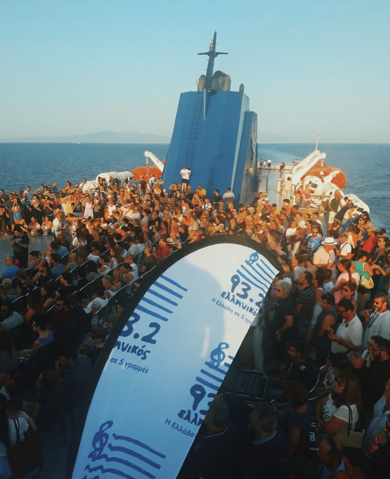 100 τυχεροί ακροατές, είχαν την ευκαιρία να ζήσουν μαζί με τους παραγωγούς του Ελληνικού 93,2 μια πρωτόγνωρη εμπειρία παρέα με τον Κώστα ΜακεδόναΠόπη Χατζηδημητρίου, η Έλενα Δημητράκη, ο Δημήτρης Μάρκος και ο Διονύσης Καστόρας,παρέα με συντελεστές του ραδιοφωνικού σταθμού και τους τυχερούς ακροατές, αναχωρήσαν, νωρίς το πρωί, από το λιμάνι της Ραφήνας για να ζήσουν την πιο κεφάτη εκδρομή – γιορτή του καλοκαιριού.