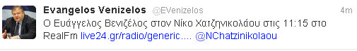 Ο Ευάγγελος Βενιζέλος μόλις έγραψε στο twitter του: