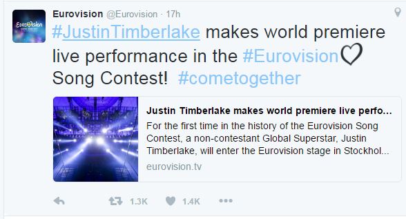 “Είναι μια μεγάλη στιγμή και μια μεγάλη ευκαιρία, είμαστε πραγματικά χαρούμενοι και ενθουσιασμένοι που ο Justin Timberlake θα εκτελέσει το νέο του τραγούδι με το συγκρότημά του στο σόου μας” δήλωσε ο Sven Stojanovic, παραγωγός του Eurovision Song Contest 2016.