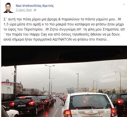 Δείτε τι έγραψε ο τραγουδιστής Ηλίας Βρεττός στο facebook:
