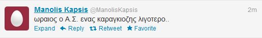 Λίγη ώρα μετά την δημοσίευση της είδησης για τον Νίκο Νικόπουλο, ο Μανώλης Καψής σχολίασε στο twitter : “ωραίος ο Α.Σ ένας καραγκιόζης λιγότερο..”