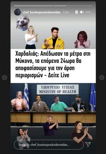 Ο γνωστός σεφ και κριτής του MasterChef ανέβασε ένα insta story όπου εκφράζει τις σκέψεις του για τη γρήγορη απόδοση των μέτρων στο Νησί των Ανέμων και τη μερική υποχώρηση της περαιτέρω διασποράς του ιού.