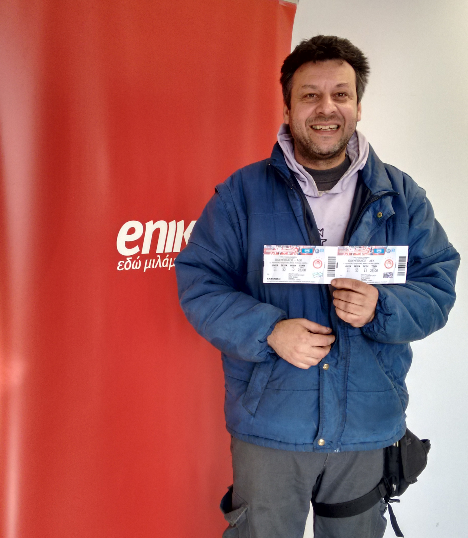 Ο Γιώργος Ραγιάς είναι ο ένας από τους δύο τυχερούς νικητές των διπλών εισιτηρίων για τον αγώνα κυπέλλου “Ολυμπιακός – ΑΕΚ”.