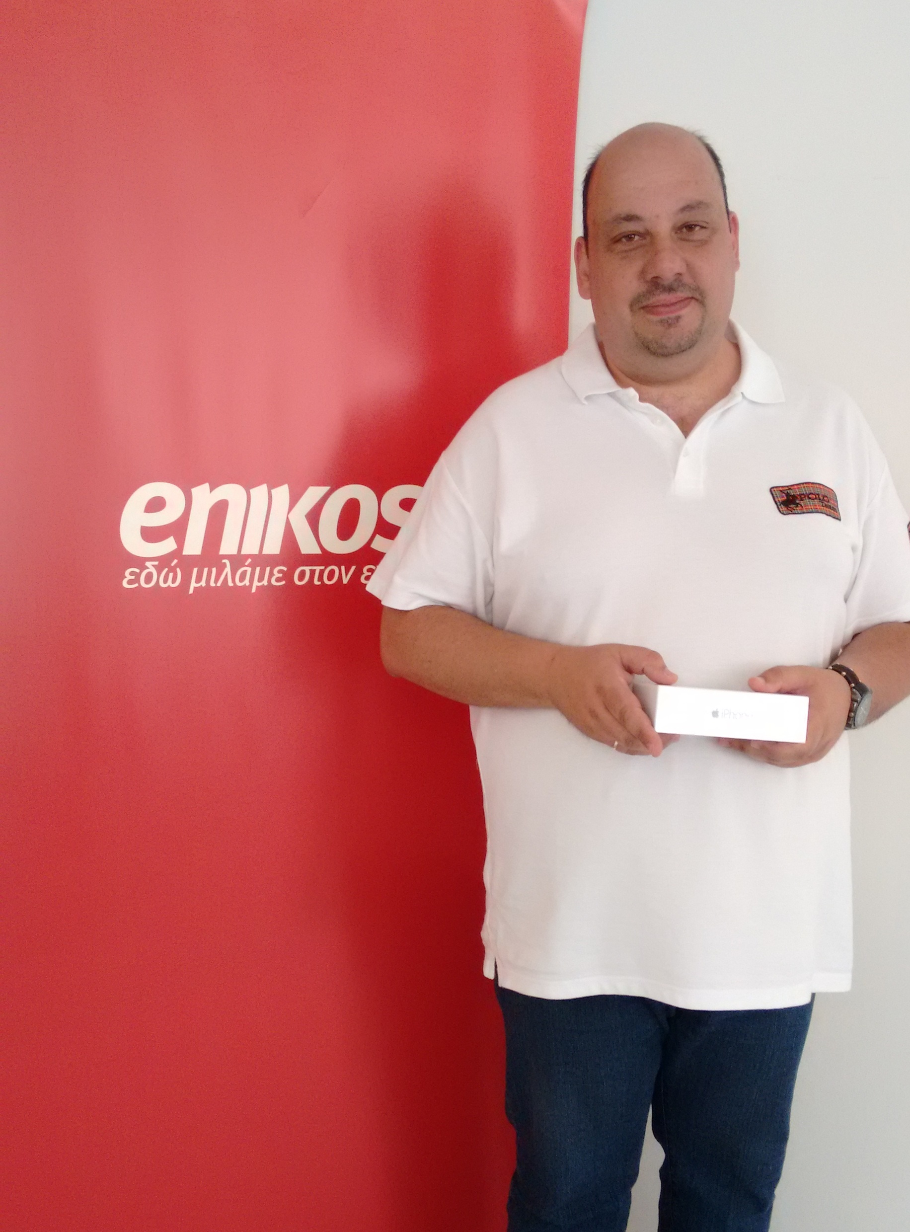 Ο Λεωνίδας Θεοφιλόπουλος, ο ένας από τους δύο μεγάλους νικητές του διαγωνισμού του enikos.gr, παρέλαβε το δώρο του.