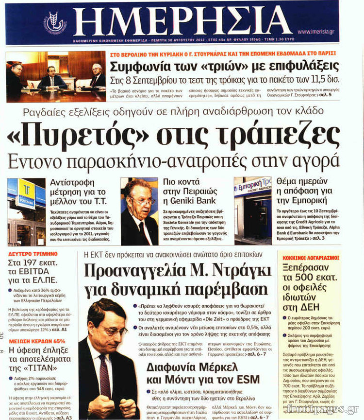 Διαβάστε τα πρωτοσέλιδα των οικονομικών εφημερίδων…