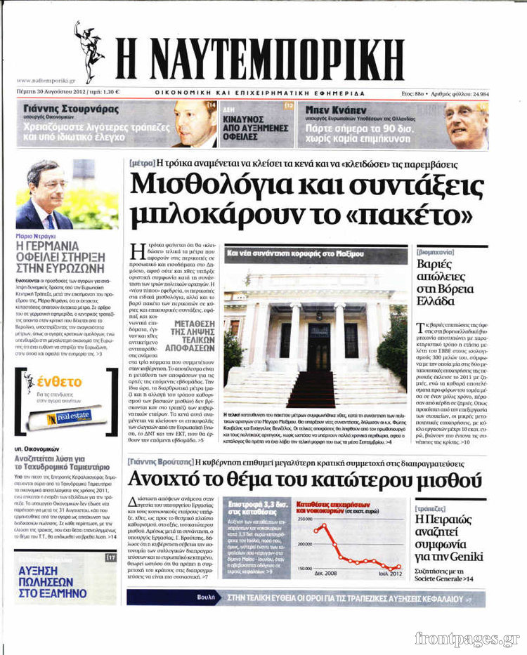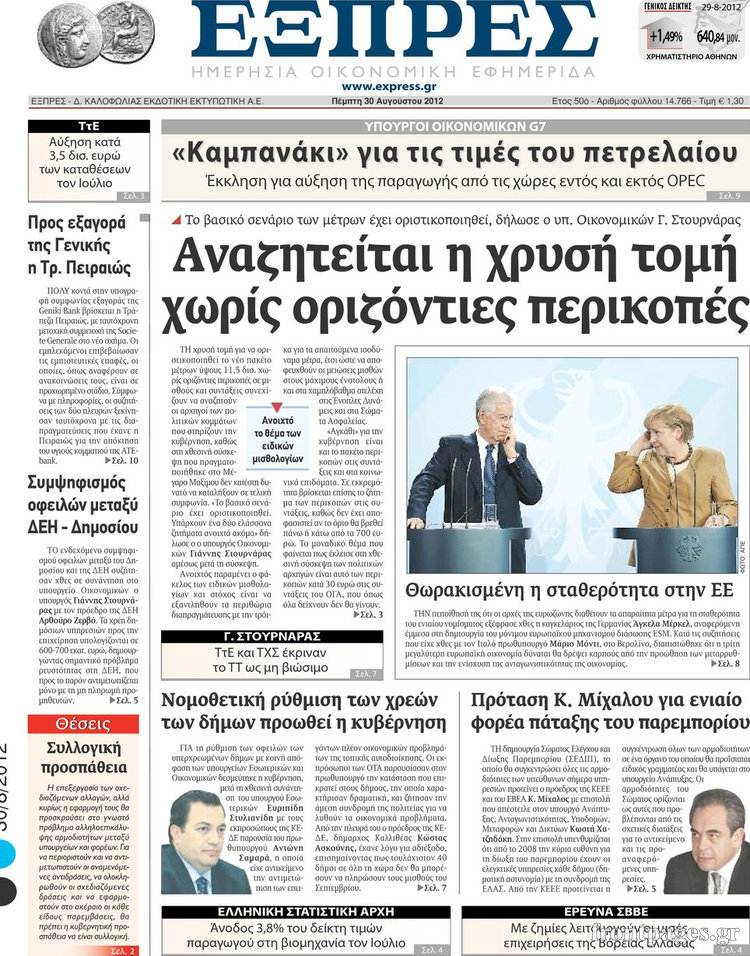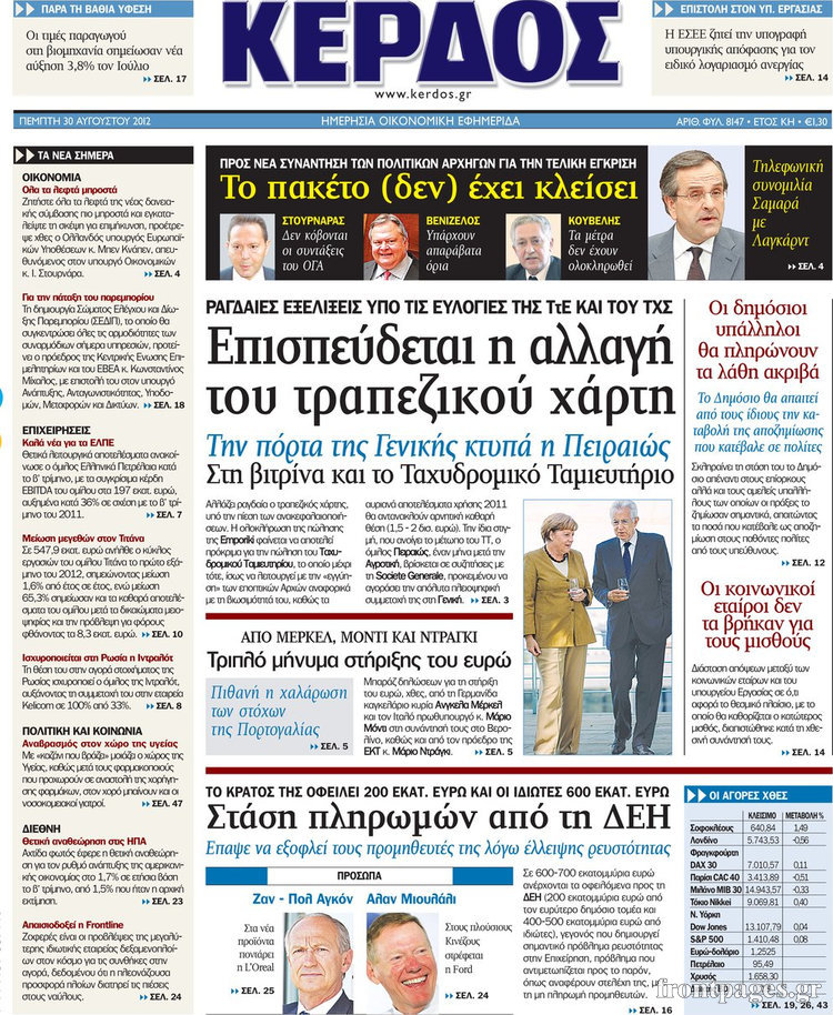 Διαβάστε τα πρωτοσέλιδα των οικονομικών εφημερίδων…