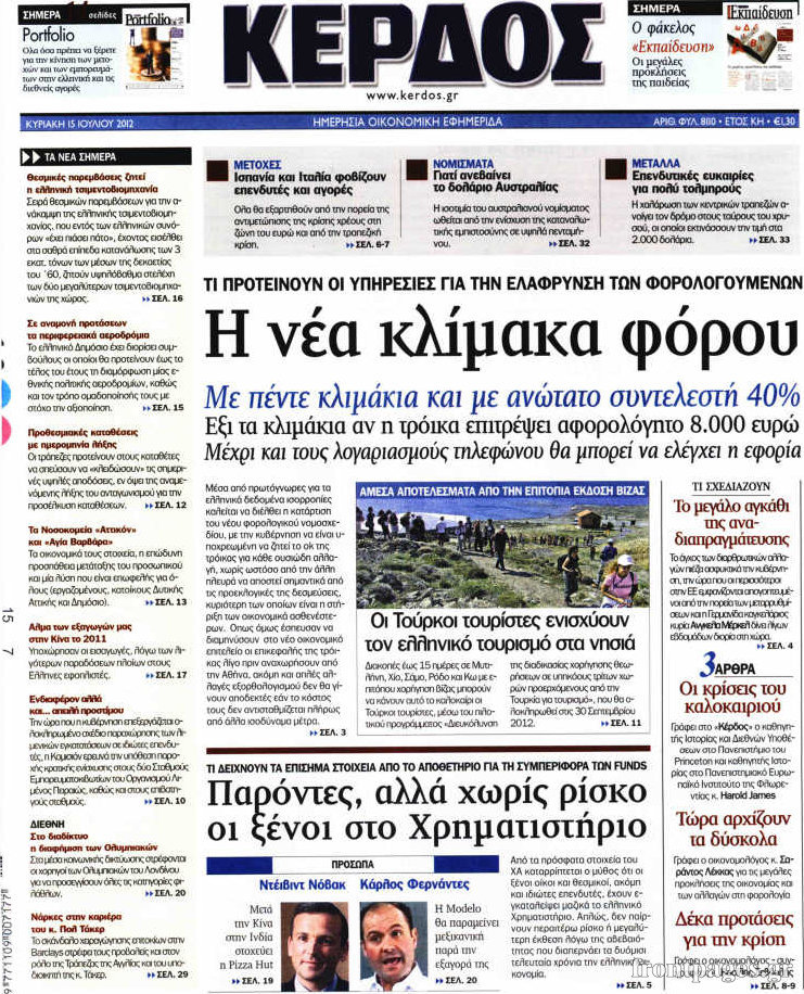 Ο οικονομικός Τύπος Enikos Newsroom 10:53, Κυριακή 15 Ιουλίου 2012 Media ΟΙΚΟΝΟΜΙΚΕΣ ΕΦΗΜΕΡΙΔΕΣ Μοιράσου το: σχολίασε κι εσύ (0 σχόλια) Ακολουθήστε το enikos.gr στο Google News και μάθετε πρώτοι όλες τις ειδήσεις Δείτε όλες τις τελευταίες ειδήσεις από την Ελλάδα και τον Κόσμο στο enikos.gr Ειδήσεις Ροή Ειδήσεων 2 ώρες πριν Αγρότες: Έδωσαν στη δημοσιότητα τη λίστα με τα αιτήματά τους – Δείτε αναλυτικά τι ζητούν 36 λεπτά πριν Τρομοκρατική επίθεση στο Σίδνεϊ: Νέο βίντεο από τα 15 λεπτά της φρίκης – Παιδιά και γονείς πεσμένοι στο έδαφος, οι φωνές και οι εκκλήσεις 4 ώρες πριν ΟΠΕΚΕΠΕ-Κρήτη: Προθεσμία να απολογηθούν από την Τρίτη έως την Πέμπτη έλαβαν οι 16 συλληφθέντες 48 λεπτά πριν Τραγική εξέλιξη στο Αίγιο: Πέθανε ο 43χρονος που γρονθοκόπησε γιατρό στο νοσοκομείο 1 ώρα πριν Θεσσαλονίκη: «Δεν έκανα κάτι παράνομο» είπε ο οδηγός του λεωφορείου – Αφέθηκε ελεύθερος, προκαταρκτική έρευνα διέταξε η εισαγγελέας 43 λεπτά πριν Οι 7 βραδινές συνήθειες που μαρτυρούν ότι κάποιος υποφέρει από βαθιά μοναξιά, σύμφωνα με την ψυχολογία 4 ώρες πριν Τα 5 ζώδια που ευνοούνται στα ερωτικά τους έως τις 21 Δεκεμβρίου – «Η επόμενη σχέση σας θα είναι καθοριστική» 5 ώρες πριν Γεωλογική αποκάλυψη: Επιστήμονες εξηγούν πώς η Ιβηρική Χερσόνησος περιστρέφεται σαν… ρολόι 9 ώρες πριν Τα 8 πράγματα που τα ευτυχισμένα ζευγάρια δεν κάνουν ποτέ μπροστά στα παιδιά τους 4 λεπτά πριν ΟΛΜΕ: Συμμετέχει στην 24ωρη απεργία της ΑΔΕΔΥ στις 16 Δεκεμβρίου 12 λεπτά πριν Κουτσούμπας από τα μπλόκα των αγροτών στη Φθιώτιδα: «Ο κόμπος έχει φτάσει στο χτένι» 20 λεπτά πριν Ναταλία Γερμανού: «Την ορφάνια την ένιωσα όταν πέθανε η γιαγιά μου» 28 λεπτά πριν Αττική: Συνελήφθησαν 15 παρκαδόροι και 8 υπεύθυνοι καταστημάτων για αυθαίρετη κατάληψη δημοσίων χώρων 36 λεπτά πριν Τρομοκρατική επίθεση στο Σίδνεϊ: Νέο βίντεο από τα 15 λεπτά της φρίκης – Παιδιά και γονείς πεσμένοι στο έδαφος, οι φωνές και οι εκκλήσεις ENIKOS NETWORK 8 κορυφαίες συμβουλές για άνδρες που θέλουν φλογερή σεξουαλική ζωή, σύμφωνα με ειδικό Baby botox: Ποια τα οφέλη και οι κίνδυνοι του να ξεκινήσει κάποιος τις ενέσεις πριν εμφανιστούν ρυτίδες Δημόσιο: Αποτελεσματικότητα και διαφάνεια μέσω του ψηφιακού μετασχηματισμού – Παπαστεργίου: «Ένα στοίχημα που κερδίζουμε χρ... Πορτοκαλί τιμολόγια ρεύματος: Πότε θα αρχίσει η εφαρμογή τους – Τι ισχύει για νοικοκυριά και επιχειρήσεις – Παραδείγματα Σύγχρονος Νοστράδαμος: Προειδοποιεί για «μεγάλο γεγονός» τους επόμενους μήνες που θα συγκλονίσει τη Βρετανία και τον κόσμο Τεστ παρατηρητικότητας: Μπορείτε να βρείτε τις 3 διαφορές στις εικόνες με έναν πιγκουίνο σε 14 δευτερόλεπτα περισσότερα 17:38 , Κυριακή 14 Δεκεμβρίου 2025 Τηλεθέαση (13/12): Τα ποσοστά για το βράδυ του Σαββάτου Η «μάχη» της prime time για την τηλεθέαση, συνεχίστηκε δυναμικά το βράδυ του Σαββάτου (13/12).... 16:32 , Κυριακή 14 Δεκεμβρίου 2025 Τηλεθέαση (13/12): Πώς κινήθηκαν οι εκπομπές στην πρωινή ζώνη το Σάββατο Με αμείωτη ένταση συνεχίστηκε η μάχη για την τηλεθέαση στην πρωινή ζώνη των τηλεοπτικών καναλι... 15:07 , Κυριακή 14 Δεκεμβρίου 2025 IQ160: Η Μαρίνα στέλνει το φούτερ του Τηλέμαχου για το τεστ πατρότητας Η Πηνελόπη αποφασίζει να κάνει αμνιοπαρακέντηση, για να βεβαιωθεί για την υγεία του μωρού της ... 12:46 , Κυριακή 14 Δεκεμβρίου 2025 Η Realnews στο www.pressreader.com Διαβάστε την ψηφιακή έκδοση της εφημερίδας στην οθόνη του κινητού, του tablet και του υπολογισ... ΤΕΛΕΥΤΑΙΕΣ ΕΙΔΗΣΕΙΣ 4 λεπτά πριν ΟΛΜΕ: Συμμετέχει στην 24ωρη απεργία τη
