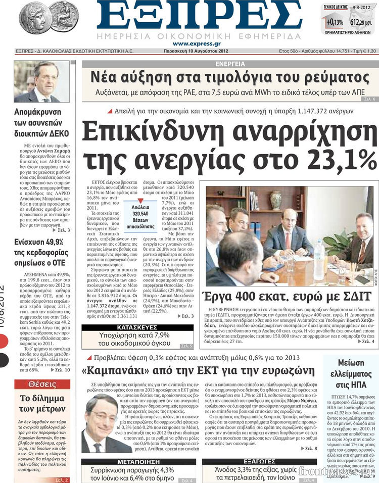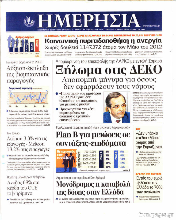 Διαβάστε τα πρωτοσέλιδα των οικονομικών εφημερίδων…