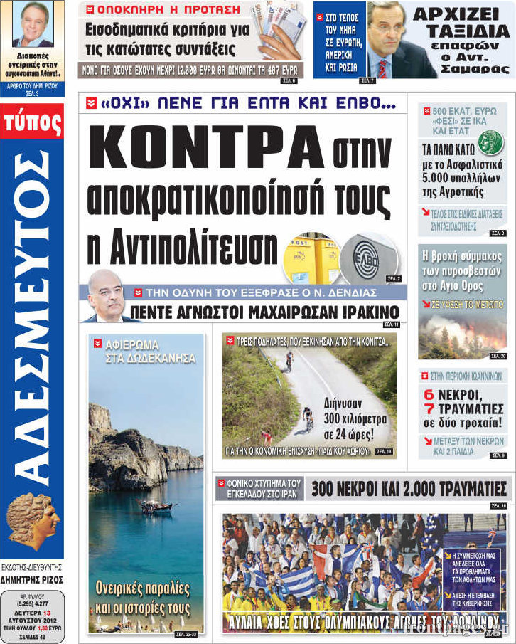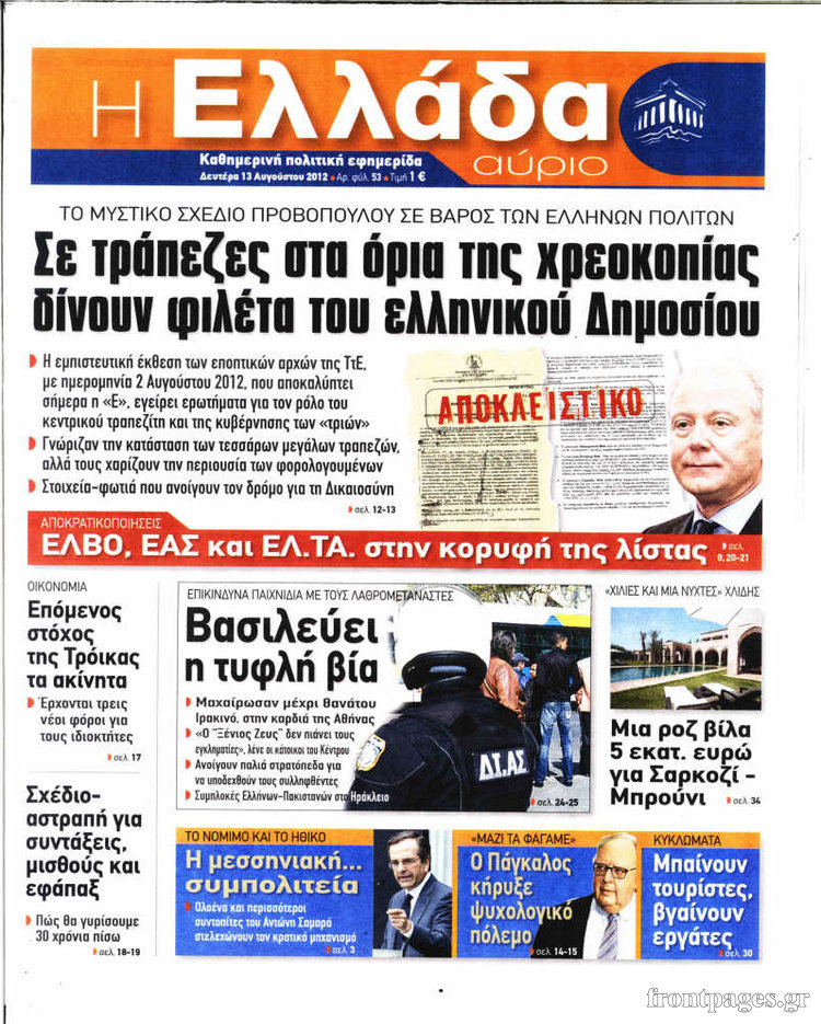 Διαβάστε τα πρωτοσέλιδα των πολιτικών εφημερίδων…