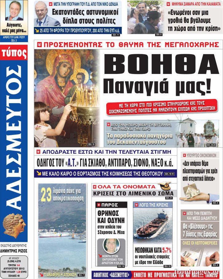 Διαβάστε τα πρωτοσέλιδα του πολιτικού τύπου…