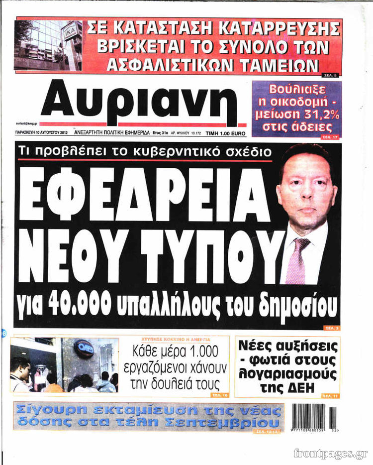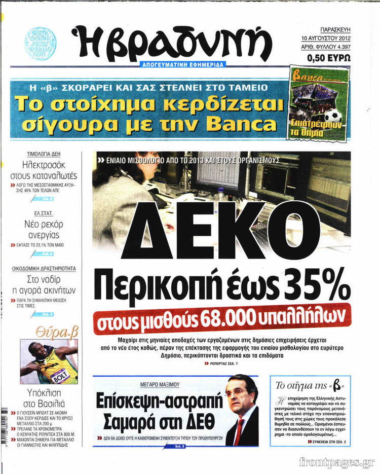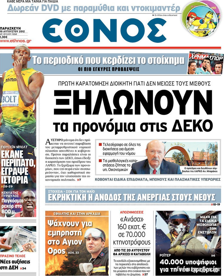 Διαβάστε τα πρωτοσέλιδα του σημερινού Τύπου…