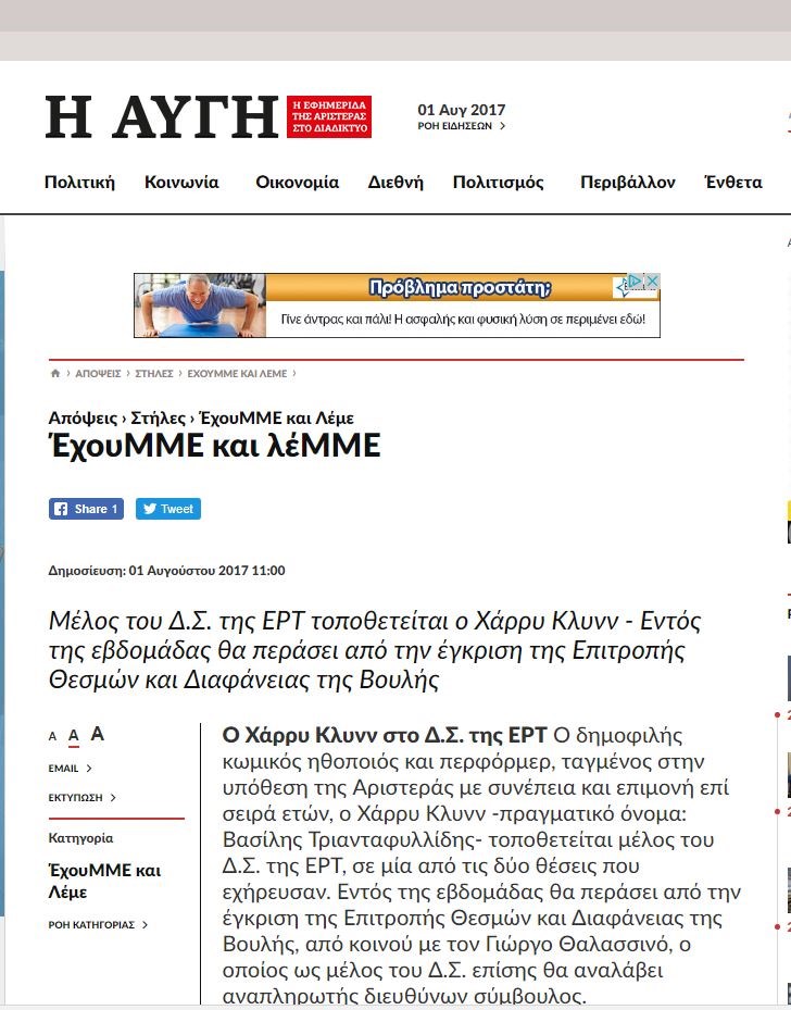 Δείτε το δημοσίευμα της «Αυγής»: