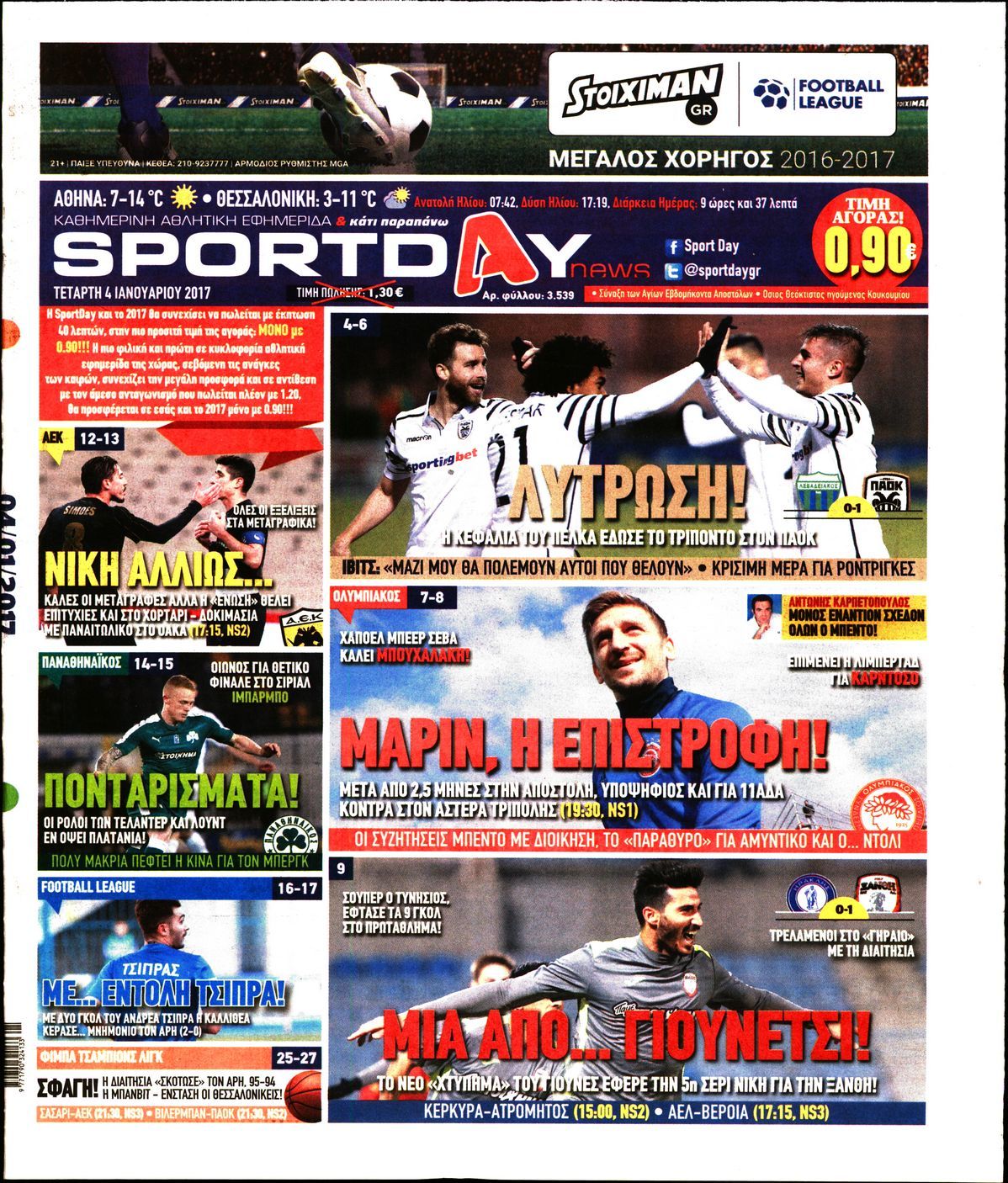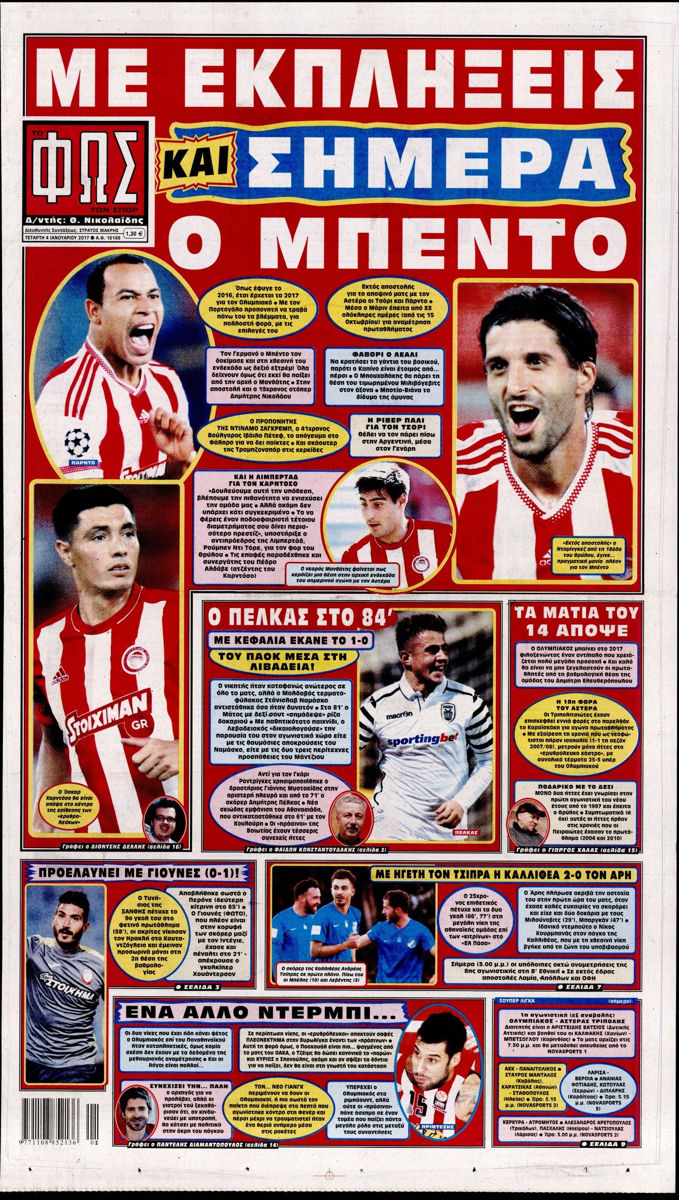 Οι αθλητικές εφημερίδες 04/01/2017 Enikos Newsroom 01:33, Τετάρτη 04 Ιανουαρίου 2017 Media Διαβάστε τα σημερινά πρωτοσέλιδα των αθλητικών εφημερίδων: ΑΘΛΗΤΙΚΕΣ ΕΦΗΜΕΡΙΔΕΣ ΠΡΩΤΟΣΕΛΙΔΑ Μοιράσου το: σχολίασε κι εσύ (0 σχόλια) Ακολουθήστε το enikos.gr στο Google News και μάθετε πρώτοι όλες τις ειδήσεις Δείτε όλες τις τελευταίες ειδήσεις από την Ελλάδα και τον Κόσμο στο enikos.gr Ειδήσεις Ροή Ειδήσεων 2 ώρες πριν Σίδνεϊ: Βίντεο με ηλικιωμένο ζευγάρι που όρμησε για να σταματήσει τον έναν δράστη – Συγκλονιστικές μαρτυρίες για τους «ήρωες μέχρι τέλους» 21 λεπτά πριν Κατρίνης: «Ο μικρός μου γιος οδηγούσε χωρίς δίπλωμα, πράξη αδικαιολόγητη και παράνομη – Ο νόμος ισχύει για όλους» 3 ώρες πριν Κυψέλη: Υπό κατάληψη το σχολείο που η 16χρονη μαχαίρωσε συμμαθήτριά της – Την είχαν διώξει από προηγούμενο 17 λεπτά πριν Τσιάρας: Καλούμε τους αγρότες να έρθουν να συζητήσουμε για την επίλυση του θέματος 2 ώρες πριν «Το θαύμα των Χριστουγέννων»: Σκύλος που εξαφανίστηκε το 2021 βρέθηκε σε καταφύγιο ζώων σε απόσταση 3.200 χιλιομέτρων – ΒΙΝΤΕΟ 1 ώρα πριν Τέλος η μοναξιά για 3 ζώδια μετά τις 16 Δεκεμβρίου – «Ξαναβρίσκετε τον εαυτό σας» 5 ώρες πριν Οπτική ψευδαίσθηση: Μόνο 1 στους 10 ανθρώπους θα βρει το κόκκινο αυγό σε 7 δευτερόλεπτα 3 ώρες πριν Ανακαλύφθηκε περίτεχνη μαρμάρινη μπανιέρα που επαναχρησιμοποιήθηκε ως κρήνη 2 ώρες πριν Η πεθερά της την κατηγορεί πως δεν την ταΐζει σωστά – «Δεν παραπονιέται όμως στον γιο της» 5 λεπτά πριν Οι άνθρωποι που φαίνονται «τυχεροί» στη ζωή τους, συνήθως έχουν αυτές τις 8 αθόρυβες συνήθειες 5 λεπτά πριν Καινούργιου: «Με την εγκυμοσύνη προς το παρόν ξεχνάω, δεν βλέπω, δεν ακούω…» 10 λεπτά πριν ΕΕ: Η Κομισιόν παρουσιάζει σήμερα σχέδιο για την αντιμετώπιση της στεγαστικής κρίσης – Προτείνει πλαφόν στα Airbnb 15 λεπτά πριν Ντόναλντ Τραμπ Τζούνιορ: Αρραβωνιάστηκε για τρίτη φορά – «Εκλεκτή» της καρδιάς του η κοσμική Μπετίνα Άντερσον 17 λεπτά πριν Τσιάρας: Καλούμε τους αγρότες να έρθουν να συζητήσουμε για την επίλυση του θέματος ENIKOS NETWORK Οι ρίζες της άνοιας ίσως βρίσκονται στην παιδική ηλικία – Τι έδειξαν πρόσφατες μελέτες Όμιλος ΠΡΟΣΥΦΑΠΕ: Επιστρέφει στην κοινωνία τμήμα της υπεραξίας που παράγει Τα μυστικά για τις μεταβιβάσεις ακινήτων – Αναλυτικός οδηγός Προϋπολογισμός 2026: Η ομιλία Μητσοτάκη στη Βουλή- Τι θα πει για το αγροτικό, το στεγαστικό και το πακέτο μέτρων του 2026 Σύγχρονος Νοστράδαμος: Προειδοποιεί για «μεγάλο γεγονός» τους επόμενους μήνες που θα συγκλονίσει τη Βρετανία και τον κόσμο Τεστ παρατηρητικότητας: Μπορείτε να βρείτε τις 3 διαφορές στις εικόνες με έναν πιγκουίνο σε 14 δευτερόλεπτα περισσότερα 09:58 , Τρίτη 16 Δεκεμβρίου 2025 LIVE – Ακούστε την εκπομπή του Νίκου Χατζηνικολάου 16/12/2025 Ακούστε την εκπομπή του Νίκου Χατζηνικολάου, στον Realfm 97,8. Ακούστε LIVE εδώ 09:26 , Τρίτη 16 Δεκεμβρίου 2025 Τηλεθέαση (15/12): Τα νούμερα για την prime time – Ποιες σειρές ξεχώρισαν Ξεκάθαρη πρωτιά στην τηλεθέαση κατέκτησε η σειρά «Μια νύχτα μόνο», η οποία βρέθηκε στην κορυφή... 08:00 , Τρίτη 16 Δεκεμβρίου 2025 Την Κυριακή με τη Realnews: Δωροεπιταγή 10€ Δωροεπιταγή αξίας 10€ για αγορές άνω των 60€ από τα πολυκαταστήματα FactoryOutlet H προσφορά ι... 05:48 , Τρίτη 16 Δεκεμβρίου 2025 Οι οικονομικές εφημερίδες 16/12/2025 Διαβάστε τα πρωτοσέλιδα από τις οικονομικές εφημερίδες, σήμερα 16/12/2025. ΤΕΛΕΥΤΑΙΕΣ ΕΙΔΗΣΕΙΣ 5 λεπτά πριν Καινούργιου: «Με την εγκυμοσύνη προς το παρόν ξεχνάω,... 10 λεπτά πριν ΕΕ: Η Κομισιόν παρουσιάζει σήμερα σχέδιο για την.