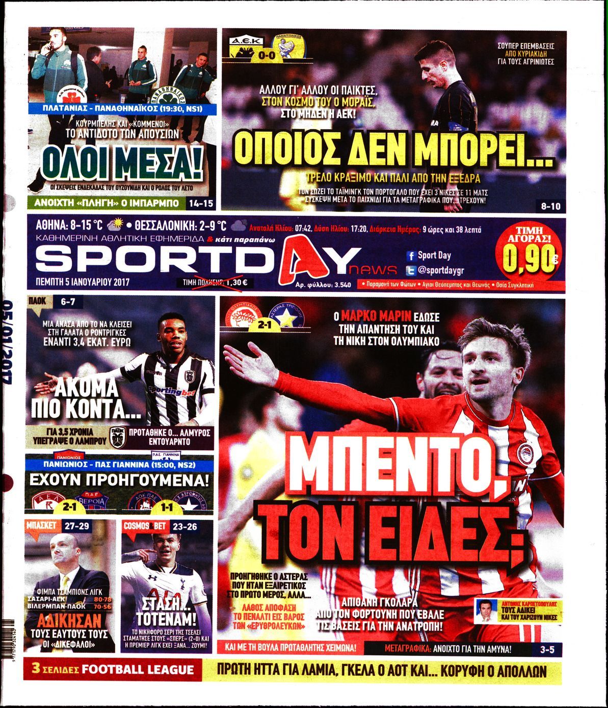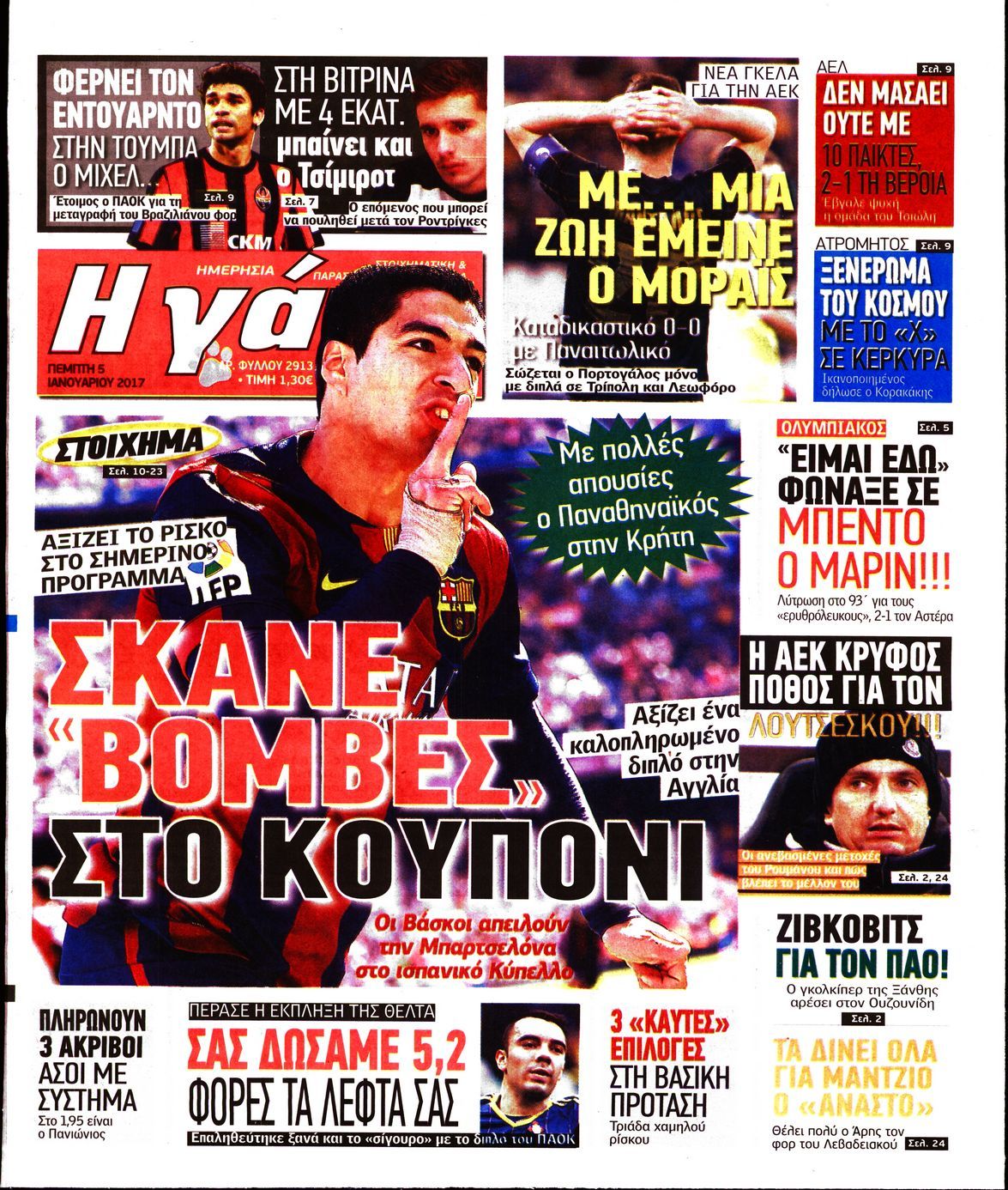 Οι αθλητικές εφημερίδες 05/01/2017 Enikos Newsroom 01:20, Πέμπτη 05 Ιανουαρίου 2017 Media Διαβάστε τα σημερινά πρωτοσέλιδα των αθλητικών εφημερίδων: ΑΘΛΗΤΙΚΕΣ ΕΦΗΜΕΡΙΔΕΣ ΠΡΩΤΟΣΕΛΙΔΑ Μοιράσου το: σχολίασε κι εσύ (0 σχόλια) Ακολουθήστε το enikos.gr στο Google News και μάθετε πρώτοι όλες τις ειδήσεις Δείτε όλες τις τελευταίες ειδήσεις από την Ελλάδα και τον Κόσμο στο enikos.gr Ειδήσεις Ροή Ειδήσεων 1 ώρα πριν Έρευνα MRB: Η πρόθεση ψήφου και τα σημαντικότερα προβλήματα – Οι «λέξεις» που εκφράζουν τους πολίτες 20 λεπτά πριν Εξεταστική ΟΠΕΚΕΠΕ – Μυλωνάκης: «Ουδέποτε είχα πληροφόρηση ή ενημέρωσα οποιονδήποτε για επισυνδέσεις της δικογραφίας» 1 ώρα πριν Αλαλούμ με τις πληρωμές στους αγρότες: Δεν καταβλήθηκε η Βασική Ενίσχυση, αλλά έγινε παρακράτηση της εισφοράς στον ΕΛΓΑ – Τι απαντά η κυβέρνηση 31 λεπτά πριν Κλέφτες άρπαξαν έναν… 12μετρο φουσκωτό Άγιο Βασίλη – «Αν κάποιος έχει πληροφορίες να επικοινωνήσει μαζί μας» 2 ώρες πριν Ανδρέας Παναγιωτόπουλος: Δεν ψήφισε στον προϋπολογισμό για να πάει στην εκδήλωση του Αλέξη Τσίπρα – «Μείζονος πολιτικής σημασίας η μεγάλη συγκέντρωση που έκανε» 60 λεπτά πριν Τα 4 ζώδια που ξαναβρίσκουν τον εαυτό τους – «Μπαίνετε επιτέλους στην ουσία των πραγμάτων» 3 ώρες πριν Νεολιθικός σκύλος βρέθηκε προσεκτικά θαμμένος στον βυθό λίμνης – Δίπλα του βρέθηκε ένα στιλέτο 2 ώρες πριν Έλαβε τελεσίγραφο από τη σύντροφό του – «Μου είπε πως ή θα της κάνω πρόταση στα δύο χρόνια σχέσης ή θα με χωρίσει» 25 λεπτά πριν «Δεν είχα κλάψει από τότε που διαγνώστηκα με καρκίνο, ώσπου ένα τηλεφώνημα με έκανε να λυγίσω» – Η συγκλονιστική εξομολόγηση ενός άνδρα 5 λεπτά πριν ΕΕ: Συνάντηση με τους ηγέτες των Δυτικών Βαλκανίων πριν από τη Σύνοδο Κορυφής – Οι χώρες που έχουν προβάδισμα ένταξης 10 λεπτά πριν Θεσσαλονίκη: Έξι λεωφορειακές γραμμές σε 24ωρη λειτουργία μέσα στις γιορτές 15 λεπτά πριν Ταλαιπωρία για επιβάτες του Προαστιακού λόγω τεχνικού προβλήματος – Αμαξοστοιχία έφτασε στον προορισμό της με καθυστέρηση 87 λεπτών 20 λεπτά πριν Εξεταστική ΟΠΕΚΕΠΕ – Μυλωνάκης: «Ουδέποτε είχα πληροφόρηση ή ενημέρωσα οποιονδήποτε για επισυνδέσεις της δικογραφίας» 25 λεπτά πριν «Δεν είχα κλάψει από τότε που διαγνώστηκα με καρκίνο, ώσπου ένα τηλεφώνημα με έκανε να λυγίσω» – Η συγκλονιστική εξομολόγηση ενός άνδρα ENIKOS NETWORK Ανησυχητική αύξηση της υπέρτασης στα παιδιά – Πώς θα τα προστατέψουμε; Αδενώματα Υπόφυσης: Μια πάθηση καλοήθης, αλλά όχι αθώα ΕΕ: Γιατί η Ελλάδα ξεχωρίζει στις ασφαλείς συναλλαγές-πληρωμές στην ΕΕ Ειδικό επιδοτούμενο πρόγραμμα κατάρτισης της ΔΥΠΑ για ανέργους: Αρχίζει σήμερα η υποβολή ενστάσεων-Ποιους αφορά Σύγχρονος Νοστράδαμος: Προειδοποιεί για «μεγάλο γεγονός» τους επόμενους μήνες που θα συγκλονίσει τη Βρετανία και τον κόσμο Τεστ παρατηρητικότητας: Μπορείτε να βρείτε τις 3 διαφορές στις εικόνες με έναν πιγκουίνο σε 14 δευτερόλεπτα περισσότερα 09:08 , Τετάρτη 17 Δεκεμβρίου 2025 Τηλεθέαση (16/12): Ανακατατάξεις στην πρωινή ψυχαγωγική ζώνη Ξεκάθαρη πρωτιά στην τηλεθέαση για την «Super Κατερίνα» στο δυναμικό κοινό με ποσοστό 18,5%, α... 08:00 , Τετάρτη 17 Δεκεμβρίου 2025 Την Κυριακή με τη Realnews: Δωροεπιταγή 10€ Δωροεπιταγή αξίας 10€ για αγορές άνω των 60€ από τα πολυκαταστήματα FactoryOutlet H προσφορά ι... 07:00 , Τετάρτη 17 Δεκεμβρίου 2025 Την Κυριακή με τη Realnews: Ό,τι και αν αγοράσεις, σκανάρεις και κερδίζεις! Την Κυριακή με τη Realnews: Ό,τι και αν αγοράσεις, σκανάρεις και κερδίζεις! Με το PADU app, το... 05:48 , 