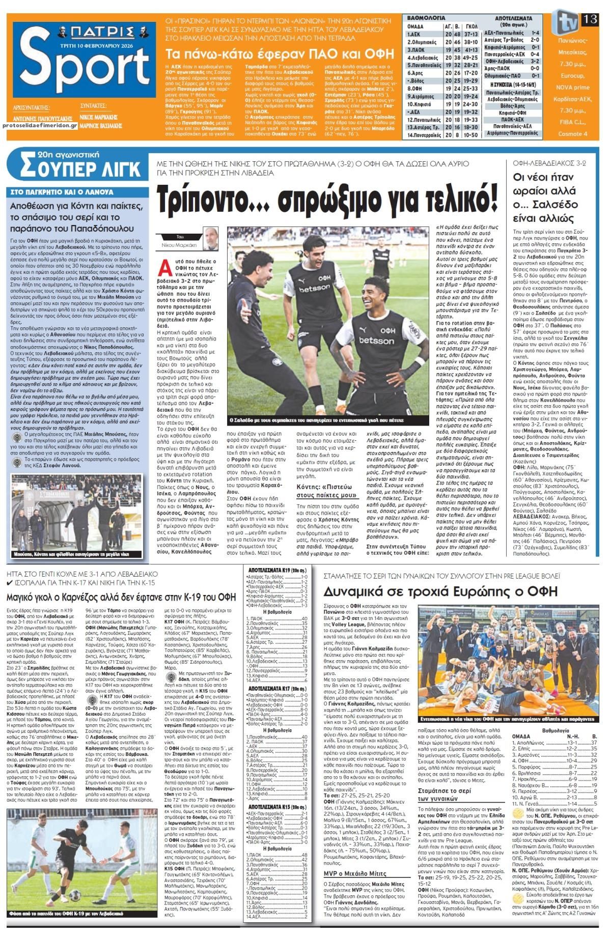 Οι αθλητικές εφημερίδες 10/2/2026 Enikos Newsroom 05:43, Τρίτη 10 Φεβρουαρίου 2026 Media Διαβάστε τα πρωτοσέλιδα από τις αθλητικές εφημερίδες, σήμερα 10/2/2026. ΑΘΛΗΤΙΚΕΣ ΕΦΗΜΕΡΙΔΕΣ ΕΦΗΜΕΡΙΔΕΣ ΠΡΩΤΟΣΕΛΙΔΑ Μοιράσου το: La Liga: Η Βιγιαρεάλ σάρωσε 4-1 την Εσπανιόλ και βλέπει Champions League – Δείτε αποτελέσματα και βαθμολογία Στέφανος Τσιτσιπάς: Ο Γάλλος Αρτούρ Ριντερκνές πρώτος του αντίπαλος στο Ρότερνταμ – Ανέβηκε στη 32η θέση Θεσσαλονίκη: Συνάντηση του δήμου με την ΠΑΕ ΠΑΟΚ για τη «Νέα Τούμπα» σχολίασε κι εσύ (0 σχόλια) Ακολουθήστε το enikos.gr στο Google News και μάθετε πρώτοι όλες τις ειδήσεις Δείτε όλες τις τελευταίες ειδήσεις από την Ελλάδα και τον Κόσμο στο enikos.gr Ειδήσεις Ροή Ειδήσεων 8 ώρες πριν Καλλιθέα: Συγκρατημένα αισιόδοξοι οι γιατροί για το κοριτσάκι που νοσηλεύεται διασωληνωμένο – Συγκλονίζουν οι μαρτυρίες των αστυνομικών 8 ώρες πριν Υπόθεση Παναγόπουλου: Τα επόμενα στάδια της έρευνας – Στο «μικροσκόπιο» το ακίνητο στον Άγιο Στέφανο και το σπίτι στην Αρκαδία 9 ώρες πριν Προκαλεί ο Ομέρ Τσελίκ: Έθεσε ξανά θέμα αποστρατιωτικοποίησης νησιών του Αιγαίου και άφησε αιχμές για τον Δένδια 9 ώρες πριν Πώς έγινε η οικογενειακή τραγωδία στην Ελευσίνα – «Τα παιδάκια φώναζαν “Η γιαγιά, η γιαγιά”» 8 ώρες πριν Βρετανία: Τι ψάχνει η αστυνομία στις σχέσεις του έκπτωτου πρίγκιπα Άντριου με τον Επστάιν – Τα έγγραφα που δείχνουν ροή πληροφοριών 1 ώρα πριν Οπτική ψευδαίσθηση: Μόνο το 1% των ανθρώπων θα βρει το κολίμπρι σε 13 δευτερόλεπτα 1 ώρα πριν Φυτικές ίνες και πρωτεΐνη: Το μυστικό συστατικό που πρέπει να προσθέσετε στα ζυμαρικά σας, σύμφωνα με ειδικό 4 ώρες πριν Ζώδια 10/2: Αιγόκεροι, το να λέτε την αλήθεια σας είναι το πιο σημαντικό – Οι προβλέψεις για όλα τα ζώδια σήμερα 8 ώρες πριν Ανακαλύφθηκε σπάνιο χάλκινο φυλαχτό σε ιερή πόλη της Μικράς Ασίας που αναφέρεται συχνά στην Καινή Διαθήκη 45 λεπτά πριν Αυτή την Κυριακή με τη Realnews: Ένας βασιλικός φόνος της συγγραφέως S.J. Bennett – Η βασίλισσα αναζητεί την αλήθεια σε μια σκοτεινή ιστορία δράσης και μυστηρίου 4 λεπτά πριν Εορτολόγιο: Ποιοι γιορτάζουν σήμερα 10 Φεβρουαρίου 15 λεπτά πριν Την Κυριακή με τη Realnews: Ό,τι και αν αγοράσεις, σκανάρεις και κερδίζεις! 25 λεπτά πριν Προκλητικός Φιντάν επιτίθεται σε Δένδια: «Λειτουργεί ανασταλτικά στην προσπάθεια ελληνοτουρκικής προσέγγισης» 30 λεπτά πριν Λιβύη: Συντριβή ελικοπτέρου εναέριου-ασθενοφόρου εντός στρατιωτικής βάσης – 5 νεκροί, ανάμεσα τους 2 Ρώσοι πιλότοι ENIKOS NETWORK Τεστ IQ: Μόνο όσοι έπαιρναν 20 στα μαθηματικά στο σχολείο μπορούν να λύσουν σωστά αυτή την αριθμητική παράσταση μέσα σε 7″ Το μπαχαρικό σύμβολο της αναγέννησης που μπορεί να μειώσει το σάκχαρο και να ενισχύσει τον εγκέφαλο Παπαστεργίου: Στο τραπέζι των συζητήσεων οι απαγορεύσεις και οι περιορισμοί στη χρήση των social media ανάλογα με την ηλικί... ΕΦΚΑ: Η μικρή, αλλά σημαντική λεπτομέρεια για την παραγραφή χρεών στην 5ετία Ευπάθεια στο moltbook ai αποκαλύπτει email, tokens σύνδεσης και api keys Αυτός είναι ο ρόλος της μικρής τρύπας στους νυχοκόπτες – «Είμαι ο μόνος που δεν το ήξερε;»» περισσότερα 19:55 , Δευτέρα 09 Φεβρουαρίου 2026 Grand Hotel: Ο Πέτρος είναι έξαλλος και ξεσπάει στον Άρη, απόψε στις 21:00 Όσα θα δούμε στο αποψινό διπλό επεισόδιο της σειράς “Grand Hotel” στις 21:00 στον ... 18:02 , Δευτέρα 09 Φεβρουαρίου 2026 «Ηλέκτρα»: H Δόμνα εξαφανίζεται από προσώπου γης – Καταιγιστικές εξελίξεις στα επόμενα επεισόδια Οι εξελίξεις είναι καταιγιστικές στα νέα επεισόδια της ερωτικής