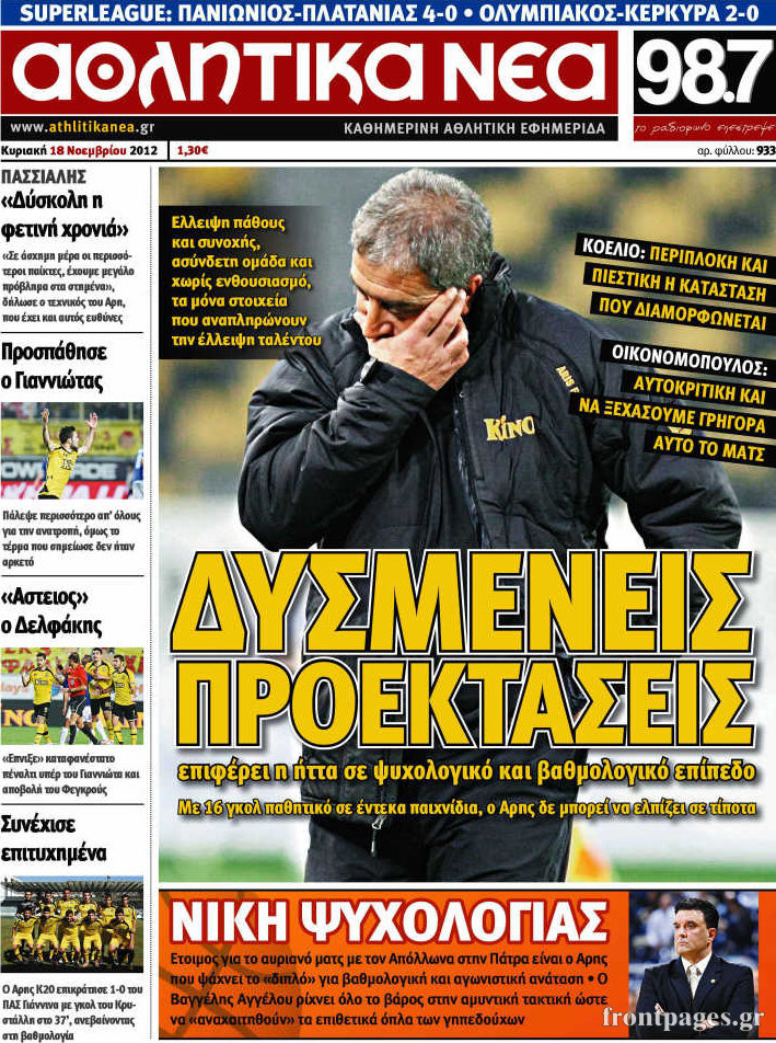 Οι αθλητικές εφημερίδες Enikos Newsroom 09:27, Κυριακή 18 Νοεμβρίου 2012 Media Οι αθλητικές εφημερίδες ΑΘΛΗΤΙΚΑ ΑΘΛΗΤΙΚΕΣ ΕΦΗΜΕΡΙΔΕΣ ΠΡΩΤΟΣΕΛΙΔΑ Μοιράσου το: σχολίασε κι εσύ (0 σχόλια) Ακολουθήστε το enikos.gr στο Google News και μάθετε πρώτοι όλες τις ειδήσεις Δείτε όλες τις τελευταίες ειδήσεις από την Ελλάδα και τον Κόσμο στο enikos.gr Ειδήσεις Ροή Ειδήσεων 1 ώρα πριν Δημοσκόπηση Alco: Στο 23,6% η ΝΔ, στο 11,6% το ΠΑΣΟΚ – Η άποψη των πολιτών για αγρότες, εκλογές και Τσίπρα 5 ώρες πριν Κυψέλη: Για πρώτη ημέρα βρισκόταν στο σχολείο η 16χρονη που επιτέθηκε με μαχαίρι στην 14χρονη – Τι αναφέρουν μαρτυρίες μαθητών για το επεισόδιο 2 ώρες πριν Φοινικούντα: Αρνούνται τις κατηγορίες οι 2 συλληφθέντες – «Θέλω να συμβάλλω στην αποκάλυψη της αλήθειας» λέει ο ανιψιός του θύματος 3 ώρες πριν Κρήτη: Εντοπίστηκε στίγμα του 33χρονου γιατρού που έχει εξαφανιστεί μέσω νέας τεχνολογίας που εφαρμόζεται για πρώτη φορά στην Ελλάδα 4 ώρες πριν Ρομπ και Μισέλ Ράινερ: Συνελήφθη ο γιος τους ως ύποπτος για την δολοφονία τους 6 ώρες πριν Τα 3 ζώδια που θα έχουν τύχη «βουνό» έως τις 21 Δεκεμβρίου – «Η ανατροπή που περιμένετε πλησιάζει» 3 ώρες πριν Γάμος: Αν ένας άνδρας νιώθει βαθιά μοναξιά, θα αρχίσει να κάνει αυτά τα 11 πράγματα μέσα στο σπίτι 2 ώρες πριν Πώς να μην μαραίνονται γρήγορα τα κομμένα λουλούδια: Το λάθος στην τοποθέτηση του βάζου που πρέπει να αποφεύγετε 7 ώρες πριν Επιστήμονες του CERN έλυσαν ένα μυστήριο δεκαετιών της σωματιδιακής φυσικής – Τι ανακάλυψαν 6 λεπτά πριν Βάσω Λασκαράκη: «Χρόνια πολλά, αγάπη μου σε ευχαριστώ που κάνεις την ζωή μου πιο ωραία» – Οι ευχές στον Λευτέρη Σουλτάτο για την γιορτή του 12 λεπτά πριν Μερτς: Οι συνομιλίες για την Ουκρανία είναι «ίσως η μεγαλύτερη διπλωματική δυναμική» – Ζελένσκι: «Επώδυνο το εδαφικό» 16 λεπτά πριν Κόντρα Θεοδωρικάκου – Φάμελλου στη Βουλή – Τα «πυρά» της Κωνσταντοπούλου 21 λεπτά πριν Πιερρακάκης: Σύντομα η Ελλάδα θα έχει περάσει στην πρώτη πεντάδα της Ευρώπης στην ψηφιακή πολιτική – Έχουμε πετύχει έναν άθλο 26 λεπτά πριν Νέα σύλληψη στο «Ελ. Βενιζέλος» για ναρκωτικά – Χειροπέδες σε 23χρονο που είχε 18,5 κιλά κάνναβης στη βαλίτσα του ENIKOS NETWORK Πότε το χρόνιο ροχαλητό να αποτελέσει ένδειξη κινδύνου για την καρδιά; Τι λένε οι ειδικοί Μάριος Θεμιστοκλέους: Το ΕΣΥ ενισχύεται, εκσυγχρονίζεται, αλλάζει ΟΠΕΚΑ: Ποιο επίδομα αυξάνεται από τον επόμενο μήνα και γιατί Ευλογιά αιγοπροβάτων: Έως το τέλος του έτους η οικονομική στήριξη 187 εκατ. ευρώ σε κτηνοτρόφους – Όλα όσα είπε ο Πρωτοψάλτ... Σύγχρονος Νοστράδαμος: Προειδοποιεί για «μεγάλο γεγονός» τους επόμενους μήνες που θα συγκλονίσει τη Βρετανία και τον κόσμο Τεστ παρατηρητικότητας: Μπορείτε να βρείτε τις 3 διαφορές στις εικόνες με έναν πιγκουίνο σε 14 δευτερόλεπτα περισσότερα 19:46 , Δευτέρα 15 Δεκεμβρίου 2025 Άγιος έρωτας: Η Χριστίνα λέει την αλήθεια στον Αντρέα Ο Βασίλης δέχεται επίθεση από τους συμμαθητές του, η Αναστασία είναι συντετριμμένη με την απώλ... 18:45 , Δευτέρα 15 Δεκεμβρίου 2025 Συνέδριο «Ελληνικός Τουρισμός 2025, Μια εθνική υπόθεση!» – «Ο Θαλάσσιος Πυλώνας ως Ενιαία Στρατηγική: Συνέργειες σε Λιμάνια, Μαρίνες, Ακτοπλοΐα, Κρουαζιέρα και Yachting» Στο πλαίσιο της τέταρτης και τελευταίας ενότητας του 7ου συνεδρίου «Ελληνικός Τουρισμός 2025, ... 18:13 , Δευτέρα 15 Δεκεμβρίου 2025 Συνέδριο «Ελληνικός Τουρισμός 2025, Μια εθνική υπόθεση!» – Κικίλιας: «Μεγάλα asset της Ελλάδας η ναυτιλία και ο τουρισμός» Στον θαλάσσιο οικονομικό «π