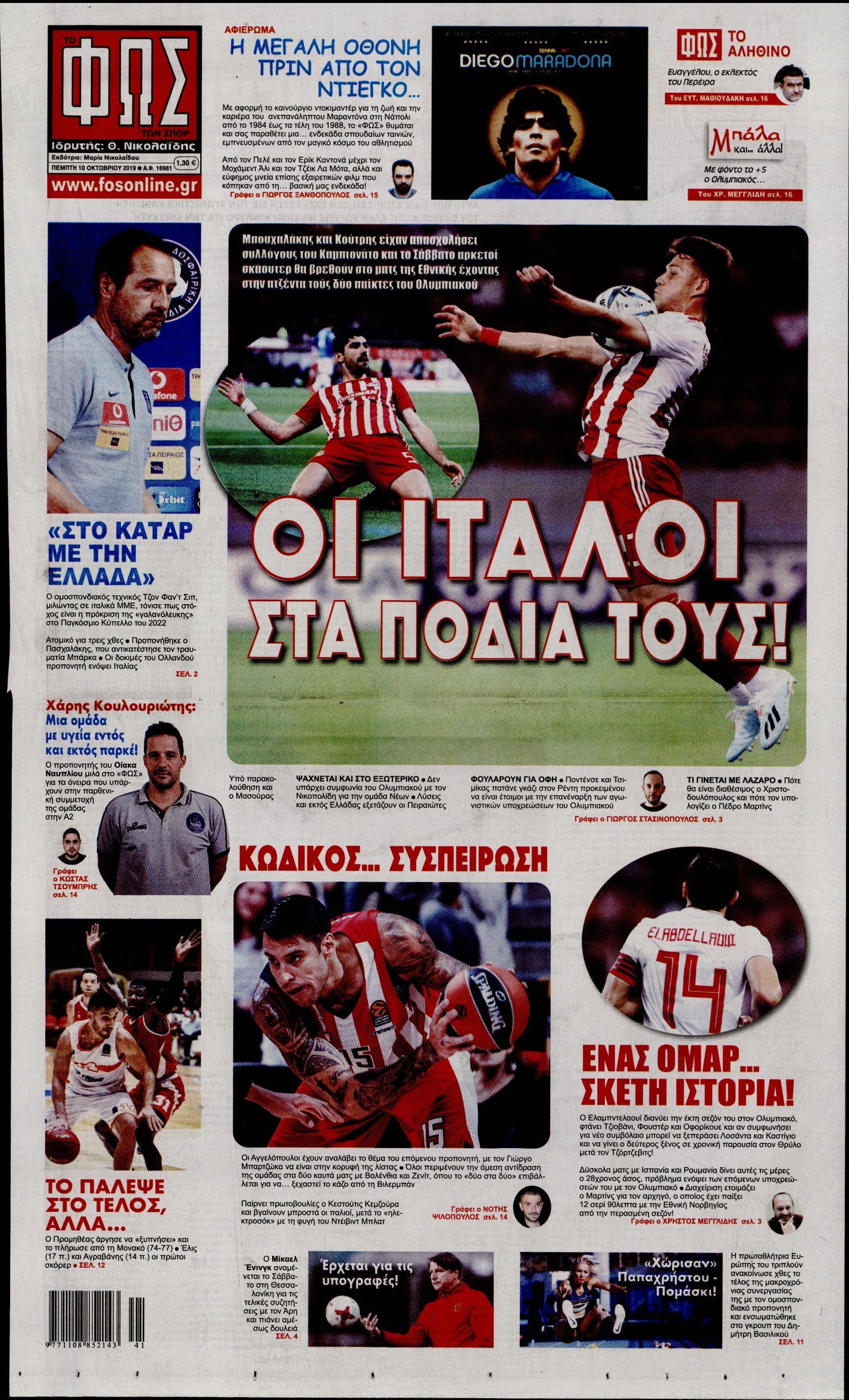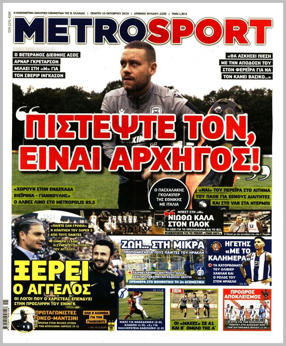 Οι αθλητικές εφημερίδες 10/10/19 Διονύσης Νίκκας 06:38, Πέμπτη 10 Οκτωβρίου 2019 Media Διαβάστε τα πρωτοσέλιδα των αθλητικών εφημερίδων… ΑΘΛΗΤΙΚΕΣ ΕΦΗΜΕΡΙΔΕΣ Μοιράσου το: σχολίασε κι εσύ (0 σχόλια) Ακολουθήστε το enikos.gr στο Google News και μάθετε πρώτοι όλες τις ειδήσεις Δείτε όλες τις τελευταίες ειδήσεις από την Ελλάδα και τον Κόσμο στο enikos.gr Ειδήσεις Ροή Ειδήσεων 1 ώρα πριν Δημοσκόπηση Metron Analysis: Στις 10 μονάδες η διαφορά ΝΔ-ΠΑΣΟΚ, στην 3η θέση η Πλεύση Ελευθερίας – 8 στους 10 στηρίζουν τον αγώνα των αγροτών 6 ώρες πριν Αγρότες: «Όχι στον διάλογο, μας εμπαίζει η κυβέρνηση» – Αποφάσισαν κλιμάκωση των κινητοποιήσεων, τι θα γίνει τα Χριστούγεννα 1 ώρα πριν Νίκος Παππάς στον ΑΝΤ1: «Δεν κρύβομαι – Μετά το συμβάν ακολούθησα κανονικά το πρόγραμμά μου» – ΒΙΝΤΕΟ 3 ώρες πριν Αθήνα: Εξαρθρώθηκε εγκληματική οργάνωση που διακινούσε ναρκωτικά σε μορφή σοκολάτας – Δύο τράπερ ανάμεσα στους 4 συλληφθέντες – ΒΙΝΤΕΟ 1 ώρα πριν Διαμαντής Καραναστάσης: Οδηγούσε υπό την επήρεια αλκοόλ – Του αφαιρέθηκε το δίπλωμα και του επιβλήθηκε πρόστιμο 350 ευρώ 2 ώρες πριν Manifesting: Πώς να συναντήσετε τον σύντροφο της ζωής σας, ανάλογα με τον μήνα γέννησής σας 4 ώρες πριν Γάμος: 11 ψυχρές αλλά ευγενικές φράσεις, που λέει ένας άνδρας όταν σκέφτεται τον χωρισμό 3 ώρες πριν Σφουγγάρισμα: Η συνήθεια που θα σας βοηθήσει να διατηρήσετε το σπίτι σας καθαρό και τακτοποιημένο 2 ημέρες πριν 20 χρόνια τα Χριστούγεννα ξεκινούν στα Public με μεγάλη ποικιλία σε δώρα! 4 λεπτά πριν Αυξάνουν την πίεση προς την κυβέρνηση οι αγρότες: Κλείνουν παρακαμπτήριους και ανοίγουν διόδια – Τι θα γίνει τις γιορτές 9 λεπτά πριν Ελισάβετ Κωνσταντινίδου για τον Γεράσιμο Μιχελή και την Πόπη Χριστοδούλου: «Ξέρω ότι έχουν πάει απλώς κάπου αλλού, ότι δεν είναι ο θάνατος έτσι όπως τον έχουμε στο μυαλό μας» 14 λεπτά πριν Κρήτη: Νέες αποκαλύψεις για τον 54χρονο που κατηγορείται ότι εξαπάτησε τους γονείς του 33χρονου – Ζητούσε τρίχες αγνοουμένων 21 λεπτά πριν Τσιάρας: Δεν θα κινδυνέψουν οι πληρωμές των αγροτών – Χρειαζόμαστε μια νέα πολιτική, ένα restart 27 λεπτά πριν Δέσποινα Βανδή: Το βίντεο που δημοσίευσε με τον Γιώργο Νικολαΐδη – «Έχουμε καταστραφεί από τα μελομακάρονά σου» ENIKOS NETWORK Σε περίοδο αυξημένης δραστηριότητας η γρίπη στην Ελλάδα-Μέτρα προστασίας από τον ΕΟΔΥ Σκέφτεστε συνέχεια συζητήσεις που έχετε κάνει; Τι σημαίνει αυτό, σύμφωνα με ειδικό Λαγκάρντ: Αισιόδοξη για την ανάπτυξη της Ευρωζώνης, αβέβαιη για τον πληθωρισμό ΑΣΕΠ 2ΓΒ/2025: Σήμερα αρχίζει η υποβολή ενστάσεων – Πότε θα βγουν τα οριστικά αποτελέσματα Χαρτογραφώντας το «σημείο χωρίς επιστροφή»: Για πρώτη φορά αποκαλύπτεται με λεπτομέρεια το ακανθώδες όριο της ατμόσφαιρας τ... Η Google καταργεί τη λειτουργία «dark web report» – Πώς θα μπορούν οι χρήστες να διαγράφουν τα δεδομένα τους περισσότερα 17:45 , Πέμπτη 18 Δεκεμβρίου 2025 ROUK ZOUK: Εορταστικό επεισόδιο με καλεσμένους τους πρωταγωνιστές του «Γιατί ρε πατέρα» Το Σάββατο 20 Δεκεμβρίου στις 21:00, η Ζέτα Μακρυπούλια υποδέχεται εκλεκτούς ηθοποιούς που όλο... 17:20 , Πέμπτη 18 Δεκεμβρίου 2025 Άγιος έρωτας: Η Χριστίνα εξομολογείται στον πατέρα Νικόλαο, απόψε στις 21:00 στον Alpha Η Νότα αποφασίζει να εκδικηθεί τον Πέτρο και τον Στέφανο, για χάρη του Λούη, όμως τα πράγματα ... 16:50 , Πέμπτη 18 Δεκεμβρίου 2025 Να μ’ αγαπάς: Ζωή και Φωτεινή συμφιλιώνονται ως μάνα με κόρη, απόψε στις 20:00 Η ταυτότητα του Άγγελου αποκαλύπτεται στο νέο επεισόδιο της σειράς “Να μ’ αγαπάς... 15:52 , 