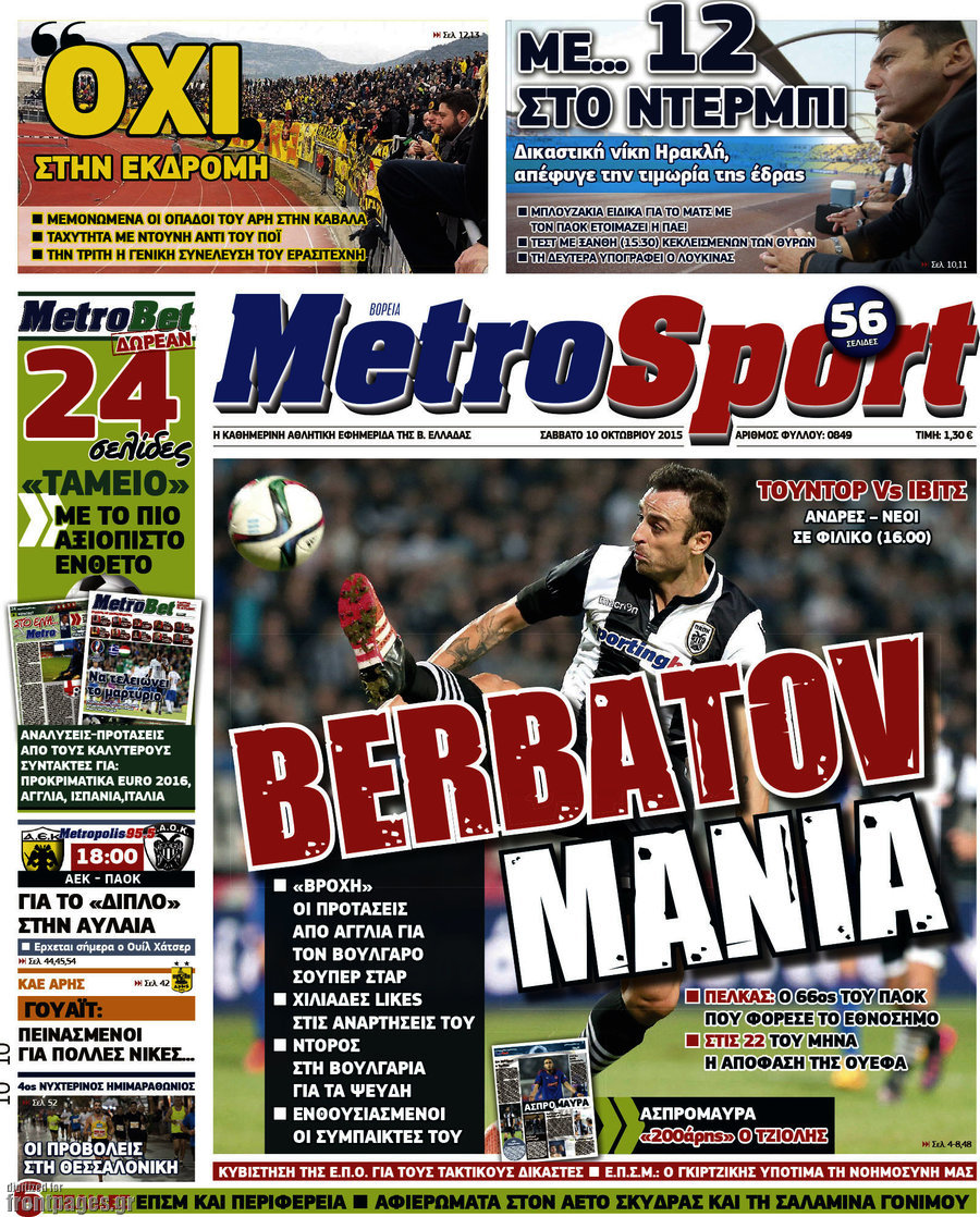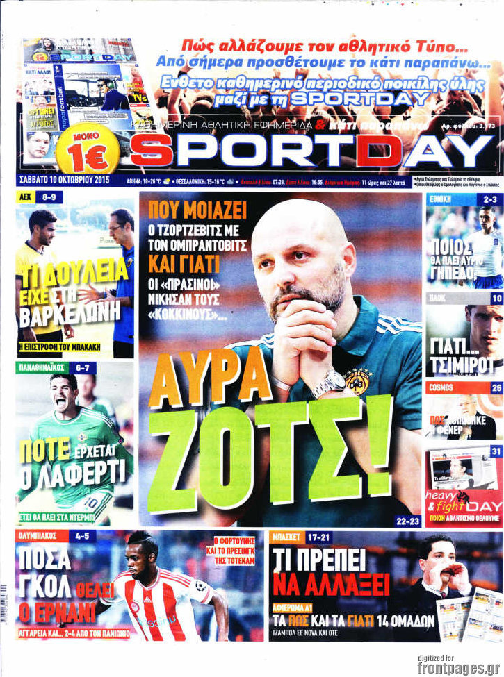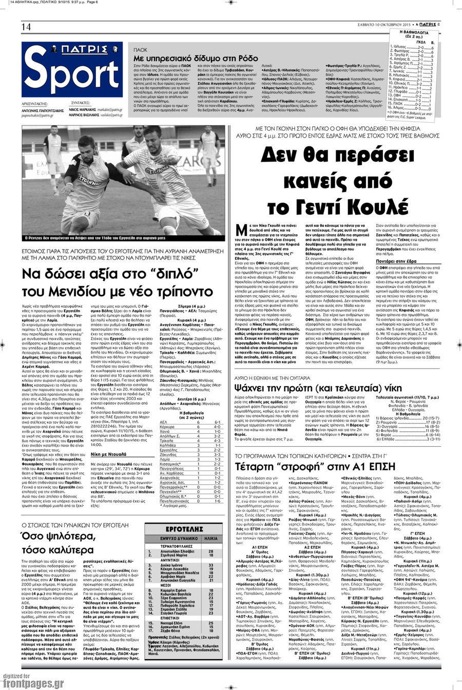 Οι αθλητικές εφημερίδες 10/10/2015 Στεφανία Κασίμη 07:33, Σάββατο 10 Οκτωβρίου 2015 Media ΑΘΛΗΤΙΚΕΣ ΕΦΗΜΕΡΙΔΕΣ ΠΡΩΤΟΣΕΛΙΔΑ Μοιράσου το: σχολίασε κι εσύ (0 σχόλια) Ακολουθήστε το enikos.gr στο Google News και μάθετε πρώτοι όλες τις ειδήσεις Δείτε όλες τις τελευταίες ειδήσεις από την Ελλάδα και τον Κόσμο στο enikos.gr Ειδήσεις Ροή Ειδήσεων 49 λεπτά πριν Μεσόγειος: Η διαδρομή του ρωσικού τάνκερ «Qendil» και η στοχευμένη επίθεση της Ουκρανίας με drone – Ο Πούτιν προειδοποίησε για αντίποινα 43 λεπτά πριν Αττική: Θρίλερ με νεκρό βρέφος 5 μηνών – Κοιμόταν στο ίδιο κρεβάτι με τους γονείς του 1 ώρα πριν Από το Ορμένιο ως τα Μάλγαρα κι από τη Σιάτιστα μέχρι τη Νίκαια: Μπλόκα σε όλη την Ελλάδα – Το Σάββατο ανοίγουν τα διόδια οι αγρότες 2 ώρες πριν «Έλληνας Εσκομπάρ»: Φωτογραφίες με τους 4 τόνους κοκαΐνης που κατασχέθηκαν από το σκάφος «Ουρανία» 3 ώρες πριν Πούτιν: Σαρκαστικά μηνύματα, παράπονα και απρόοπτα στη συνέντευξη Τύπου – Η πρόταση γάμου on air και οι ερωτήσεις για τα αγγούρια και τους… εξωγήινους 3 ώρες πριν Τα 5 ζώδια που ευνοούνται στην ερωτική ζωή τους την επόμενη εβδομάδα – «Η ενέργεια του Αιγόκερου φέρνει αγάπη και σταθερότητα» 7 ώρες πριν Ειδικός μοιράζεται 6 κόλπα για να διατηρείστε σε φόρμα με πάνω από 40 ώρες εργασίας την εβδομάδα: «Προπονηθείτε πριν από τη δουλειά, όχι μετά» 4 ώρες πριν Αυτό το έξυπνο μαθηματικό κόλπο θα μπορούσε να αλλάξει τον τρόπο με τον οποίο οι επιστήμονες μελετούν τους σεισμούς 2 ώρες πριν Κουίζ για την παλιά Αθήνα: Αναγνωρίζετε την περιοχή; Έχετε περάσει 100% από εκεί 35 δευτερόλεπτα πριν Hellenic Train: Αλλαγές και καταργήσεις δρομολογίων λεωφορείων λόγω των αγροτικών κινητοποιήσεων 7 λεπτά πριν Ζελένσκι: «Δεν χρειάζεται αναθεώρηση του Συντάγματος» για να εγκαταλείψει η Ουκρανία τον στόχο ένταξης στο ΝΑΤΟ 11 λεπτά πριν Παναγιώτα Βλαντή: Η τρυφερή εξομολόγηση για τον σύζυγό της – «Πραγματικά ήταν για μένα αυτό που ήθελα σε όλη μου τη ζωή» 18 λεπτά πριν Επίσημη η «βόμβα»: Ο ΠΑΟΚ ανακοίνωσε την απόκτηση του Πάτρικ Μπέβερλι 22 λεπτά πριν Θεσσαλονίκη: Πατέρας εγκαλεί τον Ιατρικό Σύλλογο για ποινές «χάδι» σε γιατρό που κατηγορείται για τον θάνατο του παιδιού του ENIKOS NETWORK «Η σούπερ» γρίπη εξαπλώνεται στην Ευρώπη-Στοιχεία για την αποτελεσματικότητα του εμβολίου από το ECDC ΕΛΣΤΑΤ: Αύξηση κατά 1,7% των επαγγελματιών υγείας το 2024 Η απάντηση της κυβέρνησης στα αιτήματα των αγροτών: 16 έχουν ικανοποιηθεί, 4 βρίσκονται υπό επεξεργασία και 7 δεν είναι εφι... Μισθολογική διαφάνεια: Το 68% των εργαζομένων αγνοεί τη νέα οδηγία – Αναλυτικά τα στοιχεία έρευνας Χαρτογραφώντας το «σημείο χωρίς επιστροφή»: Για πρώτη φορά αποκαλύπτεται με λεπτομέρεια το ακανθώδες όριο της ατμόσφαιρας τ... Η Google καταργεί τη λειτουργία «dark web report» – Πώς θα μπορούν οι χρήστες να διαγράφουν τα δεδομένα τους περισσότερα 18:11 , Παρασκευή 19 Δεκεμβρίου 2025 Το σόι σου: Ο Άρης έρχεται στην Ελλάδα για τις γιορτές των Χριστουγέννων – Τι θα δούμε στο αποψινό εορταστικό επεισόδιο Ένα απολαυστικό, εορταστικό επεισόδιο της σειράς “Το σόι σου”, γεμάτο ευτράπελα αλ... 15:15 , Παρασκευή 19 Δεκεμβρίου 2025 Την Κυριακή με τη Realnews: Ό,τι και αν αγοράσεις, σκανάρεις και κερδίζεις! Την Κυριακή με τη Realnews: Ό,τι και αν αγοράσεις, σκανάρεις και κερδίζεις! Με το PADU app, το... 08:00 , Παρασκευή 19 Δεκεμβρίου 2025 Την Κυριακή με τη Realnews: Δωροεπιταγή 10€ Δωροεπιταγή αξίας 10€ για αγορές άνω των 60€ από τα πολυκαταστήματα FactoryOutlet H προσφορά ι... 05:48 , Παρασκευ