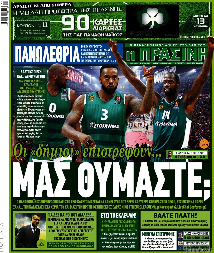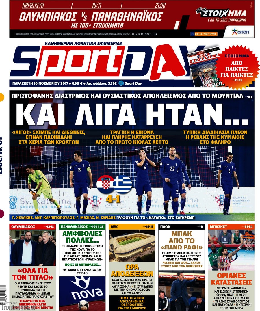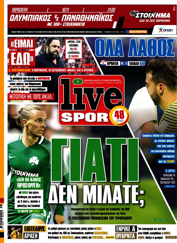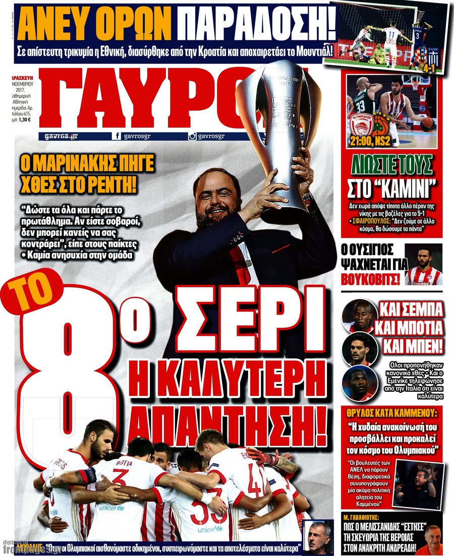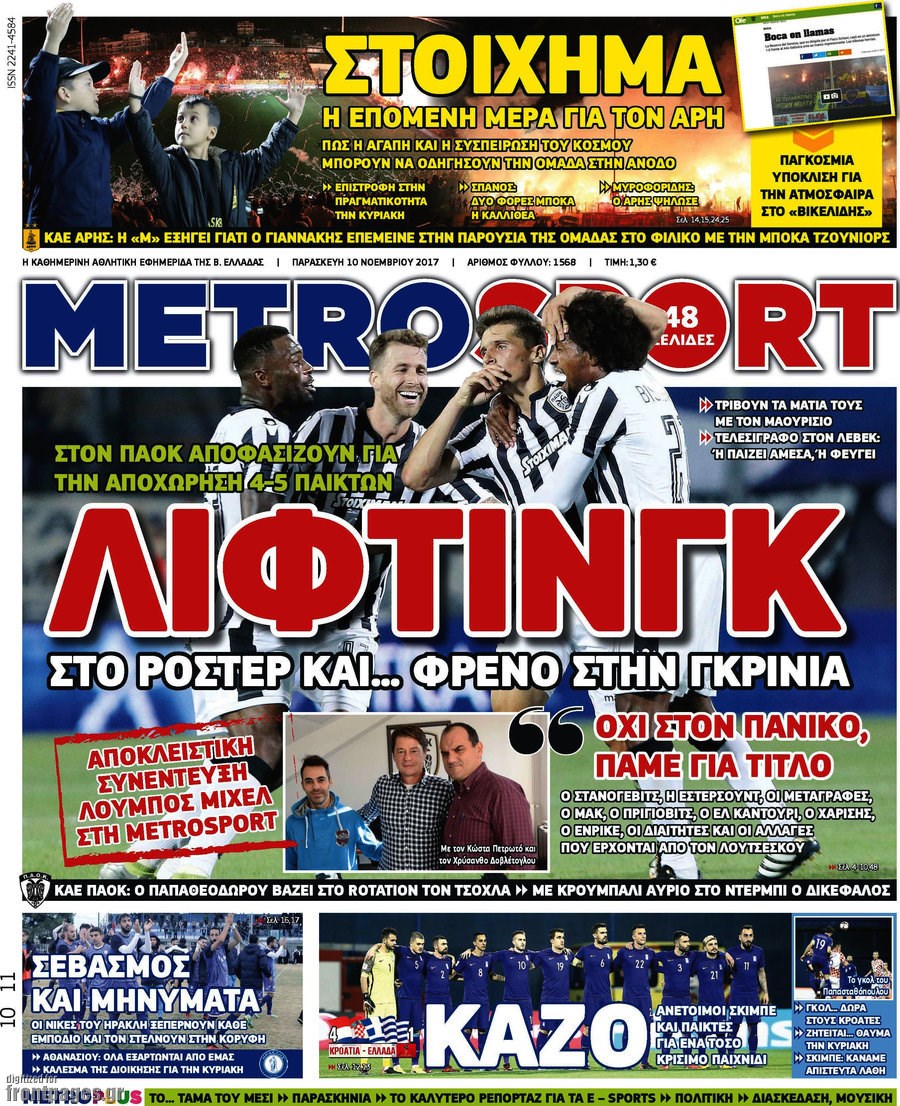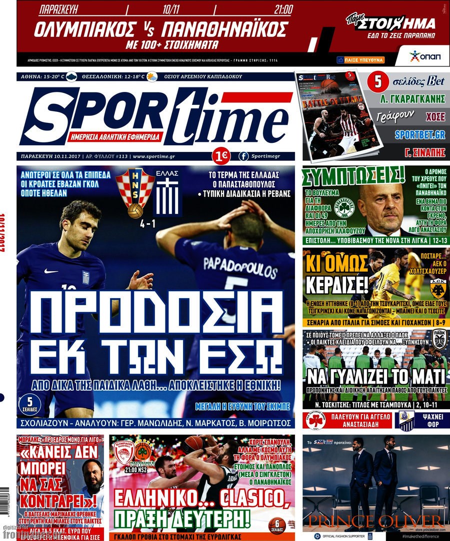 Οι αθλητικές εφημερίδες 10/11/2017 Enikos Newsroom 07:26, Παρασκευή 10 Νοεμβρίου 2017 Media Διαβάστε τα σημερινά πρωτοσέλιδα των αθλητικών εφημερίδων: ΑΘΛΗΤΙΚΕΣ ΕΦΗΜΕΡΙΔΕΣ ΠΡΩΤΟΣΕΛΙΔΑ Μοιράσου το: σχολίασε κι εσύ (0 σχόλια) Ακολουθήστε το enikos.gr στο Google News και μάθετε πρώτοι όλες τις ειδήσεις Δείτε όλες τις τελευταίες ειδήσεις από την Ελλάδα και τον Κόσμο στο enikos.gr Ειδήσεις Ροή Ειδήσεων 23 λεπτά πριν Υπόθεση Έπσταϊν: Το Υπουργείο Δικαιοσύνης δημοσιοποίησε μια σειρά από εξαιρετικά επεξεργασμένα αρχεία – «Λείπουν τα πιο σημαντικά έγγραφα», λένε οι Δημοκρατικοί 2 ώρες πριν Σαρωτικοί οι έλεγχοι στους δρόμους ενόψει εορτών – Μπλόκα της τροχαίας σε κεντρικές αρτηρίες της Αττικής 34 λεπτά πριν ΟΝΕΧ – MEGATUGS: Ξεκίνησε η ναυπήγηση ρυμουλκών στην Ελλάδα – Προθάλαμος πολεμικών πλοίων – Δείτε φωτογραφίες και βίντεο 10 ώρες πριν Χριστούγεννα στα μπλόκα: Επιμένουν στις κινητοποιήσεις τους οι αγρότες – Ανοίγουν τα διόδια το Σαββατοκύριακο 9 ώρες πριν Πούτιν: Τα μηνύματα σε Ευρώπη και ΝΑΤΟ από το μαραθώνιο «σόου» του – Η απαίτηση για «σεβασμό» και η ειρήνη «με τους όρους» της Μόσχας 2 ώρες πριν Αυγά: Πόσα μπορείτε να τρώτε την ημέρα με ασφάλεια για μέγιστη πρόσληψη πρωτεΐνης 3 ώρες πριν Τα ζώδια σήμερα, Σάββατο 20 Δεκεμβρίου: Παρθένοι, το σύμπαν σας δίνει το κλειδί 9 ώρες πριν Ανακαλύφθηκαν αρχαία χρυσά νομίσματα 2.200 ετών που απεικονίζουν τον θεό Απόλλωνα – Η άγνωστη σύνδεση με τον Φίλιππο Β΄ της Μακεδονίας 2 ώρες πριν Οπτική ψευδαίσθηση: Μόνο αν είσαι ο Σέρλοκ Χολμς θα βρεις τον αριθμό «87» σε 7 δευτερόλεπτα 3 λεπτά πριν Αρχαιολόγοι ανακάλυψαν σε χωράφι απεικόνιση 600 ετών ενός Αγίου – Τα στοιχεία που δείχνουν ότι μαρτύρησε 11 λεπτά πριν Mega χριστουγεννιάτικη φορολοταρία: «Κλείδωσε» η ημερομηνία για την κλήρωση – Ερωτήσεις και απαντήσεις 18 λεπτά πριν ΗΠΑ: Τέσσερις μετανάστες πέθαναν σε κέντρα κράτησης – Αύξηση θανάτων σε επίπεδο ρεκόρ το 2025 23 λεπτά πριν Υπόθεση Έπσταϊν: Το Υπουργείο Δικαιοσύνης δημοσιοποίησε μια σειρά από εξαιρετικά επεξεργασμένα αρχεία – «Λείπουν τα πιο σημαντικά έγγραφα», λένε οι Δημοκρατικοί 26 λεπτά πριν Καιρός: Αλλαγή σκηνικού σήμερα με βροχές και πτώση της θερμοκρασίας – Οι προβλέψεις των μετεωρολόγων για τα Χριστούγεννα ENIKOS NETWORK Το τεστ των 10 δευτερολέπτων που μπορεί να προβλέψει το προσδόκιμο ζωής σας – Τι λέει ειδικός του Cleveland Επιλέξτε καρέκλα για να μάθετε ποια είναι τα κρυφά χαρακτηριστικά σας – Τι αποκάλυψε για εσάς αυτό το τεστ προσωπικότητας; Mega χριστουγεννιάτικη φορολοταρία: «Κλείδωσε» η ημερομηνία για την κλήρωση – Ερωτήσεις και απαντήσεις Αναστολή μέτρων αναγκαστικής εκτέλεσης για κτηνοτρόφους που πλήττονται από την ευλογιά των αιγοπροβάτων Χαρτογραφώντας το «σημείο χωρίς επιστροφή»: Για πρώτη φορά αποκαλύπτεται με λεπτομέρεια το ακανθώδες όριο της ατμόσφαιρας τ... Η Google καταργεί τη λειτουργία «dark web report» – Πώς θα μπορούν οι χρήστες να διαγράφουν τα δεδομένα τους περισσότερα 05:48 , Σάββατο 20 Δεκεμβρίου 2025 Οι οικονομικές εφημερίδες 20/12/2025 Διαβάστε τα πρωτοσέλιδα από τις οικονομικές εφημερίδες, σήμερα 20/12/2025. 05:43 , Σάββατο 20 Δεκεμβρίου 2025 Οι αθλητικές εφημερίδες 20/12/2025 Διαβάστε τα πρωτοσέλιδα από τις αθλητικές εφημερίδες, σήμερα 20/12/2025. 05:38 , Σάββατο 20 Δεκεμβρίου 2025 Οι πολιτικές εφημερίδες 20/12/2025 Διαβάστε τα πρωτοσέλιδα από τις πολιτικές εφημερίδες, σήμερα 20/12/2025. 04:20 , Σάββατο 20 Δεκεμβρίου 2025 Αγγελική Νικολούλη: Τα συλλυπητήρια για την α