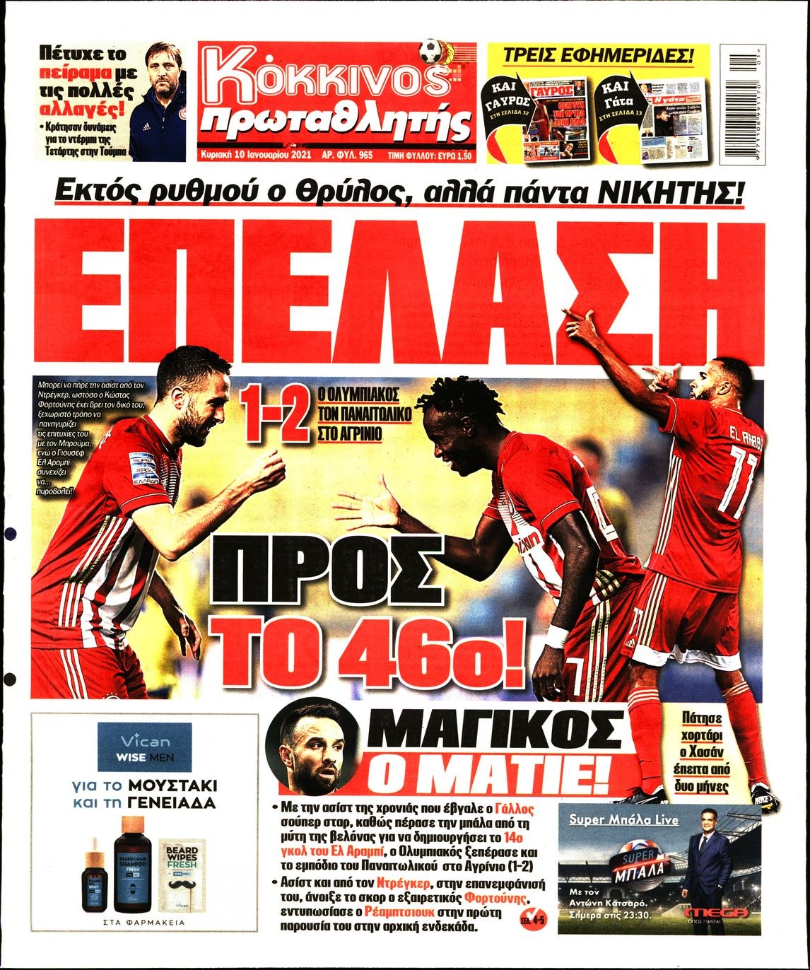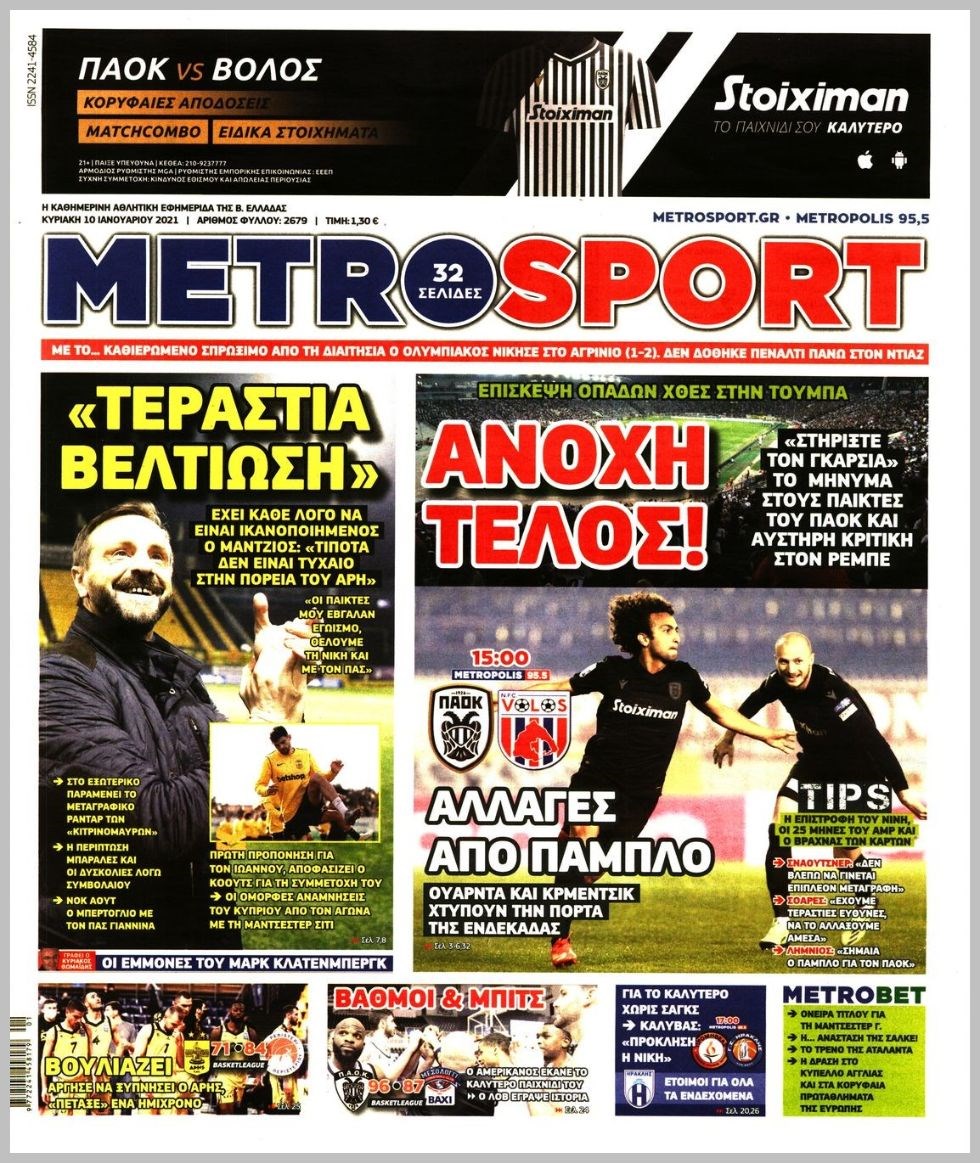 Οι αθλητικές εφημερίδες 10/1/2021 Διονύσης Νίκκας 07:55, Κυριακή 10 Ιανουαρίου 2021 Media Διαβάστε τα πρωτοσέλιδα των αθλητικών εφημερίδων… ΑΘΛΗΤΙΚΕΣ ΕΦΗΜΕΡΙΔΕΣ Μοιράσου το: σχολίασε κι εσύ (0 σχόλια) Ακολουθήστε το enikos.gr στο Google News και μάθετε πρώτοι όλες τις ειδήσεις Δείτε όλες τις τελευταίες ειδήσεις από την Ελλάδα και τον Κόσμο στο enikos.gr Ειδήσεις Ροή Ειδήσεων 3 ώρες πριν Χριστούγεννα στα μπλόκα: Επιμένουν στις κινητοποιήσεις τους οι αγρότες – Ανοίγουν τα διόδια το Σαββατοκύριακο 3 ώρες πριν Ουκρανία: Η άνευ προηγουμένου επίθεση σε ρωσικό τάνκερ στη Μεσόγειο και το μήνυμα προς στον Πούτιν – Το «μακρύ χέρι» του Κιέβου 2 ώρες πριν Πούτιν: Τα μηνύματα σε Ευρώπη και ΝΑΤΟ από το μαραθώνιο «σόου» του – Η απαίτηση για «σεβασμό» και η ειρήνη «με τους όρους» της Μόσχας 3 ώρες πριν Τραμπ: Δεν αποκλείει την πιθανότητα ενός πολέμου στη Βενεζουέλα – «Ο Μαδούρο ξέρει καλύτερα από τον καθένα τι ακριβώς θέλω» 4 ώρες πριν Συνεχίζει να προκαλεί ο Μίτσκοσκι: «Για μένα το όνομα Μακεδονία είναι ιερό» 2 ώρες πριν Ανακαλύφθηκαν αρχαία χρυσά νομίσματα 2.200 ετών που απεικονίζουν τον θεό Απόλλωνα – Η άγνωστη σύνδεση με τον Φίλιππο Β΄ της Μακεδονίας 3 ώρες πριν Ύπνος: Μια κρυφή κατάσταση του εγκεφάλου πριν από τον ύπνο μπορεί να είναι το “κλειδί” για υψηλή ευφυΐα και δημιουργικότητα 4 ώρες πριν Αριθμολογία: Οι άνθρωποι που έχουν γεννηθεί αυτές τις 4 ημερομηνίες, συχνά παρεξηγούνται – «Η καλοσύνη τους κρύβει τεράστια δύναμη» 5 ώρες πριν Ξεχάστε το καθάρισμα το Σαββατοκύριακο: Ο «κανόνας των 20 λεπτών» που θα σας λύσει τα χέρια 3 λεπτά πριν Συρία: Μαζικά πλήγματα των ΗΠΑ σε θέσεις του Ισλαμικού Κράτους – Χέγκσεθ: «Δεν είναι αρχή πολέμου, είναι μια δήλωση εκδίκησης» για το θάνατο των στρατιωτών μας 16 λεπτά πριν Ουκρανία: Ολοκληρώθηκαν οι συνομιλίες με τους Αμερικανούς κι Ευρωπαίους διαπραγματευτές 31 λεπτά πριν Μπαρτσελόνα – Μπασκόνια 134-124: Οι «μπλαουγκράνα» πήραν το ματς της χρονιάς ύστερα από τρεις παρατάσεις 46 λεπτά πριν Φαίη Σκορδά: «Παλιότερα τα κομπλιμέντα τα προσπερνούσα, τώρα τα έχω ανάγκη» 1 ώρα πριν Βασίλης Σπανούλης: Δεν εμφανίστηκε ούτε ένας δημοσιογράφος στην συνέντευξη Τύπου – «Καλησπέρα στον… κανέναν», δείτε βίντεο ENIKOS NETWORK Το ΕΚΑΒ τιμήθηκε από την Ακαδημία Αθηνών για τα 40 χρόνια προσφοράς του Έχετε πραγματικά μεγάλη καρδιά; 10 χαρακτηριστικά όσων έχουν καλοσύνη Αναστολή μέτρων αναγκαστικής εκτέλεσης για κτηνοτρόφους που πλήττονται από την ευλογιά των αιγοπροβάτων Πλήρης επάρκεια προϊόντων στις λαϊκές της Αττικής, παρά τις αγροτικές κινητοποιήσεις – Τι απαντούν οι πωλητές Χαρτογραφώντας το «σημείο χωρίς επιστροφή»: Για πρώτη φορά αποκαλύπτεται με λεπτομέρεια το ακανθώδες όριο της ατμόσφαιρας τ... Η Google καταργεί τη λειτουργία «dark web report» – Πώς θα μπορούν οι χρήστες να διαγράφουν τα δεδομένα τους περισσότερα 22:42 , Παρασκευή 19 Δεκεμβρίου 2025 Γιώργος Γιαννόπουλος για “Το σόι σου”: “Είναι ευτυχία και ευλογία αυτή η σειρά” «Είναι ευτυχία και ευλογία η συγκυρία αυτής της σειράς», θα πει ο Γιώργος Γιαννόπουλος -ο αγαπ... 20:37 , Παρασκευή 19 Δεκεμβρίου 2025 Don’t Forget The Lyrics: Η Έλλη Κοκκίνου υποδέχεται 4 παίκτες που θα κάνουν τα πάντα για να μη χάσουν ούτε… μισή λέξη από τους στίχους Το «Don’t Forget The Lyrics» επιστρέφει απόψε, Παρασκευή 19 Δεκεμβρίου, στις 21:00 με νέο επει... 19:31 , Παρασκευή 19 Δεκεμβρίου 2025 GNTM: Απόψε ο μεγάλος τελικός για τους 4 φιναλίστ Έπειτα από μήνες γεμάτους μόδα, 