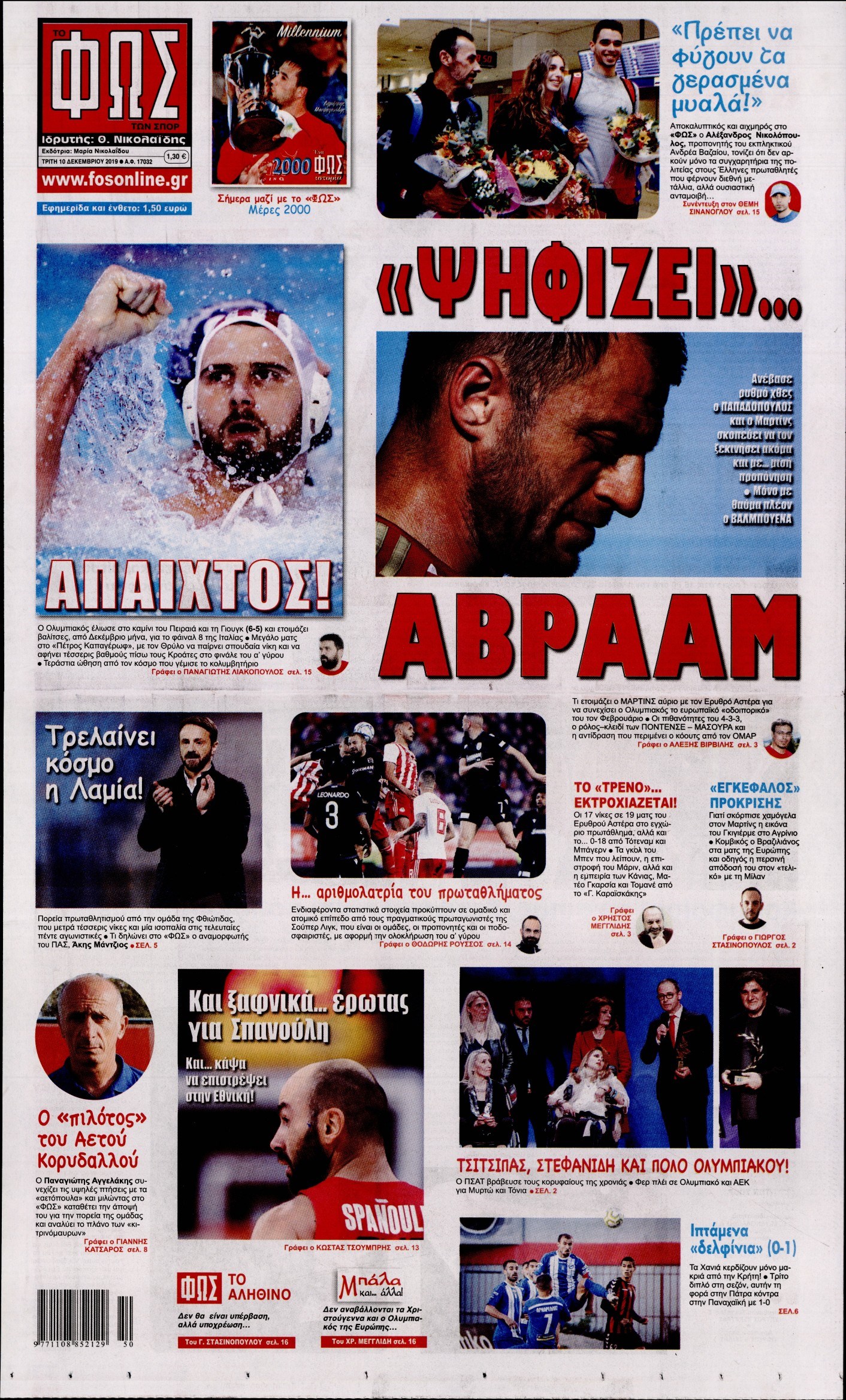 Οι αθλητικές εφημερίδες 10/12/19 Διονύσης Νίκκας 06:59, Τρίτη 10 Δεκεμβρίου 2019 Media Διαβάστε τα πρωτοσέλιδα των αθλητικών εφημερίδων… ΑΘΛΗΤΙΚΕΣ ΕΦΗΜΕΡΙΔΕΣ Μοιράσου το: σχολίασε κι εσύ (0 σχόλια) Ακολουθήστε το enikos.gr στο Google News και μάθετε πρώτοι όλες τις ειδήσεις Δείτε όλες τις τελευταίες ειδήσεις από την Ελλάδα και τον Κόσμο στο enikos.gr Ειδήσεις Ροή Ειδήσεων 6 ώρες πριν Εκτός ευρωομάδας ΣΥΡΙΖΑ ο Νίκος Παππάς μετά την επίθεση στον δημοσιογράφο Νίκο Γιαννόπουλο – Η μήνυση και οι νέες δηλώσεις 6 ώρες πριν «Αγριεύουν» οι αγρότες: «Δεν συντρέχει λόγος συνάντησης με τον πρωθυπουργό» – Ώρα αποφάσεων στη σύσκεψη της Πέμπτης 6 ώρες πριν Κυψέλη: Χωρίς την οικογένειά της δίπλα της απολογήθηκε η 16χρονη – «Της είχε επιτεθεί κάποιος για να την βιάσει, φοβήθηκε και κυκλοφορούσε με μαχαίρι» 6 ώρες πριν Politico: Το πρόβλημα της Ευρώπης δεν είναι το Βέλγιο αλλά ο Ντόναλντ Τραμπ 8 ώρες πριν Αλεξανδρούπολη: Πολυοργανική ανεπάρκεια λόγω υποσιτισμού η αιτία θανάτου του 3χρονου αγοριού 6 ώρες πριν Μυστήριο με τεράστιες κυκλικές πέτρες 200 κιλών – Ανακαλύφθηκαν τυχαία κατά τη διάρκεια οδικών έργων και κανείς δεν ξέρει από πού προέρχονται 7 ώρες πριν Ύπνος: Ειδικός εξηγεί τον πραγματικό λόγο που ξυπνάτε στις 4 τα ξημερώματα – Ο ρόλος των ορμονών και του κιρκάδιου ρυθμού 8 ώρες πριν Αριθμολογία: Οι άνθρωποι που έχουν γεννηθεί αυτές τις 4 ημερομηνίες, είναι τρυφεροί και αγαπούν ανιδιοτελώς 20 ώρες πριν 20 χρόνια τα Χριστούγεννα ξεκινούν στα Public με μεγάλη ποικιλία σε δώρα! 5 λεπτά πριν Μιχάλης Αεράκης: «Της είπα “θέλω να κάνουμε σπιτικό, αλλά υπάρχουν τρεις προϋποθέσεις…”» 13 λεπτά πριν Αυστραλία: Κυβερνητική δέσμευση για αυστηρότερα μέτρα κατά της υποκίνησης μίσους 28 λεπτά πριν Ντόναλντ Τραμπ: Παρουσίασε τα επιτεύγματα της διακυβέρνησής του – Σκληρή κριτική στον Τζο Μπάιντεν 43 λεπτά πριν Κτηνοτρόφοι: Με δάκρυα στα μάτια ζουν τον εφιάλτη των άδειων στάβλων – «Καταστράφηκαν οι ζωές μας» 58 λεπτά πριν Νέο αμερικανικό πλήγμα σε σκάφος που φέρεται να μετέφερε ναρκωτικά στον Ειρηνικό – Τέσσερις νεκροί ENIKOS NETWORK Αϋπνία: Το κόλπο που θα σας βοηθήσει να κοιμηθείτε απόψε – Είναι απλό και έχει αποτέλεσμα 2,6 εκατομμύρια πολίτες έχουν ήδη εμβολιαστεί κατά της γρίπης ΕΛΣΤΑΤ: Τι δείχνουν τα νέα στοιχεία για τις ηλεκτρονικές παραγγελίες των επιχειρήσεων ΚΕΠΕ: Οι 3 διακριτές συμβολές των ΜμΕ και της μεταποίησης στην ελληνική οικονομία Χαρτογραφώντας το «σημείο χωρίς επιστροφή»: Για πρώτη φορά αποκαλύπτεται με λεπτομέρεια το ακανθώδες όριο της ατμόσφαιρας τ... Η Google καταργεί τη λειτουργία «dark web report» – Πώς θα μπορούν οι χρήστες να διαγράφουν τα δεδομένα τους περισσότερα 02:30 , Πέμπτη 18 Δεκεμβρίου 2025 Αλ Τσαντίρι Νιουζ: Η κόρη της Πάολα στο κοινό – Η ατάκα Λαζόπουλου που την έκανε να «κοκκινήσει» Γιορτινή διάθεση και ευχάριστες στιγμές γέμισε η αποψινή, τελευταία για το 2025, εκπομπή του «... 22:24 , Τετάρτη 17 Δεκεμβρίου 2025 Το Σπίτι Δίπλα Στο Ποτάμι: Σε κίνδυνο η υγεία του Απόστολου – Τι θα δούμε απόψε “Το Σπίτι Δίπλα στο Ποτάμι” ξετυλίγει το νήμα της ζωής των πέντε αδελφών με καταισ... 21:14 , Τετάρτη 17 Δεκεμβρίου 2025 Παιχνίδια Εκδίκησης: Θα καταφέρει ο Χρήστος να κλονίσει την εμπιστοσύνη της Μάγιας απέναντι στον Άγη; Τα «Παιχνίδια Εκδίκησης» έρχονται απόψε στις 22:30, στον Αντ1, με το τελευταίο επεισόδιο της χ... 20:57 , Τετάρτη 17 Δεκεμβρίου 2025 Άγιος Έρωτας: Η Χλόη καταθέτει εναντίον του πατέρα της και ο Χάρης α