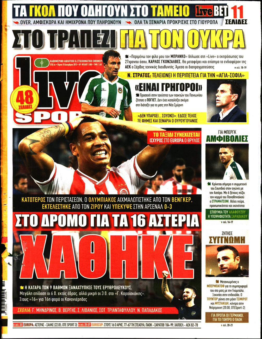 Οι αθλητικές εφημερίδες 10/12/2015 Enikos Newsroom 06:06, Πέμπτη 10 Δεκεμβρίου 2015 Media Διαβάστε τα σημερινά πρωτοσέλιδα των αθλητικών εφημερίδων: ΑΘΛΗΤΙΚΕΣ ΕΦΗΜΕΡΙΔΕΣ ΠΡΩΤΟΣΕΛΙΔΑ Μοιράσου το: σχολίασε κι εσύ (0 σχόλια) Ακολουθήστε το enikos.gr στο Google News και μάθετε πρώτοι όλες τις ειδήσεις Δείτε όλες τις τελευταίες ειδήσεις από την Ελλάδα και τον Κόσμο στο enikos.gr Ειδήσεις Ροή Ειδήσεων 45 λεπτά πριν Ευρωπαϊκή Ένωση: Χωρίς συμφωνία, για την μακροπρόθεσμη χρηματοδότηση της Ουκρανίας, ολοκληρώθηκε η Σύνοδος Κορυφής στις Βρυξέλλες 4 ώρες πριν ΟΠΕΚΕΠΕ: Προφυλακιστέος ο φερόμενος αρχηγός και ο λογιστής της εγκληματικής οργάνωσης 5 ώρες πριν Αυξάνουν την πίεση προς την κυβέρνηση οι αγρότες: Κλείνουν παρακαμπτήριους και ανοίγουν διόδια – Τι θα γίνει τις γιορτές 5 ώρες πριν Φοινικούντα: Το Σάββατο απολογείται ο 30χρονος γιος γνωστού επιχειρηματία της Πλάκας που παραδόθηκε – Όσα είπε στους αστυνομικούς και ο ρόλος του στο έγκλημα 4 ώρες πριν ΑΕΚ – Κραϊόβα 3-2: Επική ανατροπή και πρόκριση στους «16» του Conference League η Ένωση 5 ώρες πριν Αρχαιολόγοι ανακάλυψαν ρωμαϊκά τεχνουργήματα από μια πόλη που δεν υπήρξε ποτέ – Τα τρία εντυπωσιακά κτίρια και ο αμφορέας με τις… σαρδέλες 6 ώρες πριν Ύπνος: Η απλή βραδινή ρουτίνα για να προστατεύσετε τα μαλλιά σας από το κρύο κατά τη διάρκεια του χειμώνα 7 ώρες πριν Manifesting: Πώς να συναντήσετε τον σύντροφο της ζωής σας, ανάλογα με τον μήνα γέννησής σας 2 ημέρες πριν 20 χρόνια τα Χριστούγεννα ξεκινούν στα Public με μεγάλη ποικιλία σε δώρα! 31 δευτερόλεπτα πριν Στη Φλόριντα σήμερα οι διαβουλεύσεις σχετικά με τα επόμενα στάδια για τη Λωρίδα της Γάζας 5 λεπτά πριν Σίσσυ Τουμάση: «Είμαι ασθενοφοβική πάρα πολύ και με πιάνει μια παράνοια μ’ αυτό» 29 λεπτά πριν Ντόναλντ Τραμπ: Δεν χρειάζομαι την έγκριση του Κογκρέσου για να διατάξω στρατιωτικά πλήγματα στη Βενεζουέλα 45 λεπτά πριν Ευρωπαϊκή Ένωση: Χωρίς συμφωνία, για την μακροπρόθεσμη χρηματοδότηση της Ουκρανίας, ολοκληρώθηκε η Σύνοδος Κορυφής στις Βρυξέλλες 60 λεπτά πριν GNTM: «Κλείδωσαν» οι τέσσερις φιναλίστ – Μεγάλη ανατροπή στις τελευταίες αποχωρήσεις ENIKOS NETWORK Σε περίοδο αυξημένης δραστηριότητας η γρίπη στην Ελλάδα-Μέτρα προστασίας από τον ΕΟΔΥ Σκέφτεστε συνέχεια συζητήσεις που έχετε κάνει; Τι σημαίνει αυτό, σύμφωνα με ειδικό Στεγαστικό: Τι λέει η ΠΟΜΙΔΑ για τα νέα μέτρα που ανακοίνωσε ο Κυριάκος Μητσοτάκης Λαγκάρντ: Αισιόδοξη για την ανάπτυξη της Ευρωζώνης, αβέβαιη για τον πληθωρισμό Χαρτογραφώντας το «σημείο χωρίς επιστροφή»: Για πρώτη φορά αποκαλύπτεται με λεπτομέρεια το ακανθώδες όριο της ατμόσφαιρας τ... Η Google καταργεί τη λειτουργία «dark web report» – Πώς θα μπορούν οι χρήστες να διαγράφουν τα δεδομένα τους περισσότερα 02:50 , Παρασκευή 19 Δεκεμβρίου 2025 GNTM: «Κλείδωσαν» οι τέσσερις φιναλίστ – Μεγάλη ανατροπή στις τελευταίες αποχωρήσεις Για προτελευταία φορά εμφανίστηκαν στο πλατό του GNTM οι φιναλίστ του φετινού κύκλου, το βράδυ... 17:45 , Πέμπτη 18 Δεκεμβρίου 2025 ROUK ZOUK: Εορταστικό επεισόδιο με καλεσμένους τους πρωταγωνιστές του «Γιατί ρε πατέρα» Το Σάββατο 20 Δεκεμβρίου στις 21:00, η Ζέτα Μακρυπούλια υποδέχεται εκλεκτούς ηθοποιούς που όλο... 17:20 , Πέμπτη 18 Δεκεμβρίου 2025 Άγιος έρωτας: Η Χριστίνα εξομολογείται στον πατέρα Νικόλαο, απόψε στις 21:00 στον Alpha Η Νότα αποφασίζει να εκδικηθεί τον Πέτρο και τον Στέφανο, για χάρη του Λούη, όμως τα πράγματα ... 16:50 , Πέμπτη 18 Δεκεμβρίου 2025 Να μ’ αγαπάς: Ζωή και Φωτεινή συμφιλιώνοντ