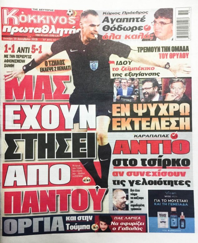 Οι αθλητικές εφημερίδες 10/12/2018 Κώστας Τεό 06:35, Δευτέρα 10 Δεκεμβρίου 2018 Media Διαβάστε τα πρωτοσέλιδα των αθλητικών εφημερίδων: ΑΘΛΗΤΙΚΕΣ ΕΦΗΜΕΡΙΔΕΣ ΠΡΩΤΟΣΕΛΙΔΑ Μοιράσου το: σχολίασε κι εσύ (0 σχόλια) Ακολουθήστε το enikos.gr στο Google News και μάθετε πρώτοι όλες τις ειδήσεις Δείτε όλες τις τελευταίες ειδήσεις από την Ελλάδα και τον Κόσμο στο enikos.gr Ειδήσεις Ροή Ειδήσεων 4 ώρες πριν Από το Ορμένιο ως τα Μάλγαρα κι από τη Σιάτιστα μέχρι τη Νίκαια: Μπλόκα σε όλη την Ελλάδα – Το Σάββατο ανοίγουν τα διόδια οι αγρότες 1 ώρα πριν Εμπλοκή και αερομαχίες με οπλισμένα τουρκικά F-16 στο Αιγαίο 3 ώρες πριν Αττική: Θρίλερ με νεκρό βρέφος 5 μηνών – Κοιμόταν στο ίδιο κρεβάτι με τους γονείς του 57 λεπτά πριν Πούτιν: «Ναι, είμαι ερωτευμένος» – Βίντεο από τη σπάνια προσωπική παραδοχή του 3 ώρες πριν Μεσόγειος: Η διαδρομή του ρωσικού τάνκερ «Qendil» και η στοχευμένη επίθεση της Ουκρανίας με drone – Ο Πούτιν προειδοποίησε για αντίποινα 5 ώρες πριν Τα 5 ζώδια που ευνοούνται στην ερωτική ζωή τους την επόμενη εβδομάδα – «Η ενέργεια του Αιγόκερου φέρνει αγάπη και σταθερότητα» 6 ώρες πριν Αυτό το έξυπνο μαθηματικό κόλπο θα μπορούσε να αλλάξει τον τρόπο με τον οποίο οι επιστήμονες μελετούν τους σεισμούς 2 ώρες πριν Μήπως έχετε χάσει τον εαυτό σας στη σχέση σας; 7 «αθόρυβες» υποχωρήσεις που μάλλον κάνατε, χωρίς να το συνειδητοποιήσετε 4 ώρες πριν Κουίζ για την παλιά Αθήνα: Αναγνωρίζετε την περιοχή; Έχετε περάσει 100% από εκεί 4 λεπτά πριν Μπαράκ Ομπάμα: Τα βιβλία, οι ταινίες και τα τραγούδια που ξεχώρισε το 2025 – Πλήρης λίστα 9 λεπτά πριν Don’t Forget The Lyrics: Η Έλλη Κοκκίνου υποδέχεται 4 παίκτες που θα κάνουν τα πάντα για να μη χάσουν ούτε… μισή λέξη από τους στίχους 14 λεπτά πριν Πλεύρης στον ΑΝΤ1: Η βασική πολιτική που ψηφίστηκε από τους υπουργούς Μετανάστευσης είναι η δημιουργία κέντρων κράτησης μεταναστών στην Αφρική – ΒΙΝΤΕΟ 19 λεπτά πριν Η εξομολόγηση της Νίκης Σερέτη: «Δεν κρύβω ότι ήταν πάρα πολύ δύσκολο όλο αυτό που βίωσα» 25 λεπτά πριν Αγρότες: Κλειστό ξανά το ρεύμα εισόδου στα Μάλγαρα – Άνοιξαν τον κόμβο της Χαλκηδόνας ENIKOS NETWORK Έχετε πραγματικά μεγάλη καρδιά; 10 χαρακτηριστικά όσων έχουν καλοσύνη «Η σούπερ» γρίπη εξαπλώνεται στην Ευρώπη-Στοιχεία από το ECDC για την αποτελεσματικότητα του εμβολίου Επίδομα παιδιού: Πότε ανοίγει ξανά η πλατφόρμα για τις αιτήσεις Προκήρυξη ΑΣΕΠ για 397 μόνιμες προσλήψεις στο Δημόσιο: Βγήκαν τα προσωρινά αποτελέσματα – Πότε αρχίζει η υποβολή ενστάσεων Χαρτογραφώντας το «σημείο χωρίς επιστροφή»: Για πρώτη φορά αποκαλύπτεται με λεπτομέρεια το ακανθώδες όριο της ατμόσφαιρας τ... Η Google καταργεί τη λειτουργία «dark web report» – Πώς θα μπορούν οι χρήστες να διαγράφουν τα δεδομένα τους περισσότερα 20:37 , Παρασκευή 19 Δεκεμβρίου 2025 Don’t Forget The Lyrics: Η Έλλη Κοκκίνου υποδέχεται 4 παίκτες που θα κάνουν τα πάντα για να μη χάσουν ούτε… μισή λέξη από τους στίχους Το «Don’t Forget The Lyrics» επιστρέφει απόψε, Παρασκευή 19 Δεκεμβρίου, στις 21:00 με νέο επει... 19:31 , Παρασκευή 19 Δεκεμβρίου 2025 GNTM: Απόψε ο μεγάλος τελικός για τους 4 φιναλίστ Έπειτα από μήνες γεμάτους μόδα, δημιουργία και έντονες αναμετρήσεις, το GNTM 2025 κορυφώνεται,... 18:11 , Παρασκευή 19 Δεκεμβρίου 2025 Το σόι σου: Ο Άρης έρχεται στην Ελλάδα για τις γιορτές των Χριστουγέννων – Τι θα δούμε στο αποψινό εορταστικό επεισόδιο Ένα απολαυστικό, εορταστικό επεισόδιο της σειράς “Το σόι σου”, γεμάτο ευτράπελα αλ... 15:15 , Παρασκευή 19 Δεκεμβρίου 2025 Την Κυριακή μ