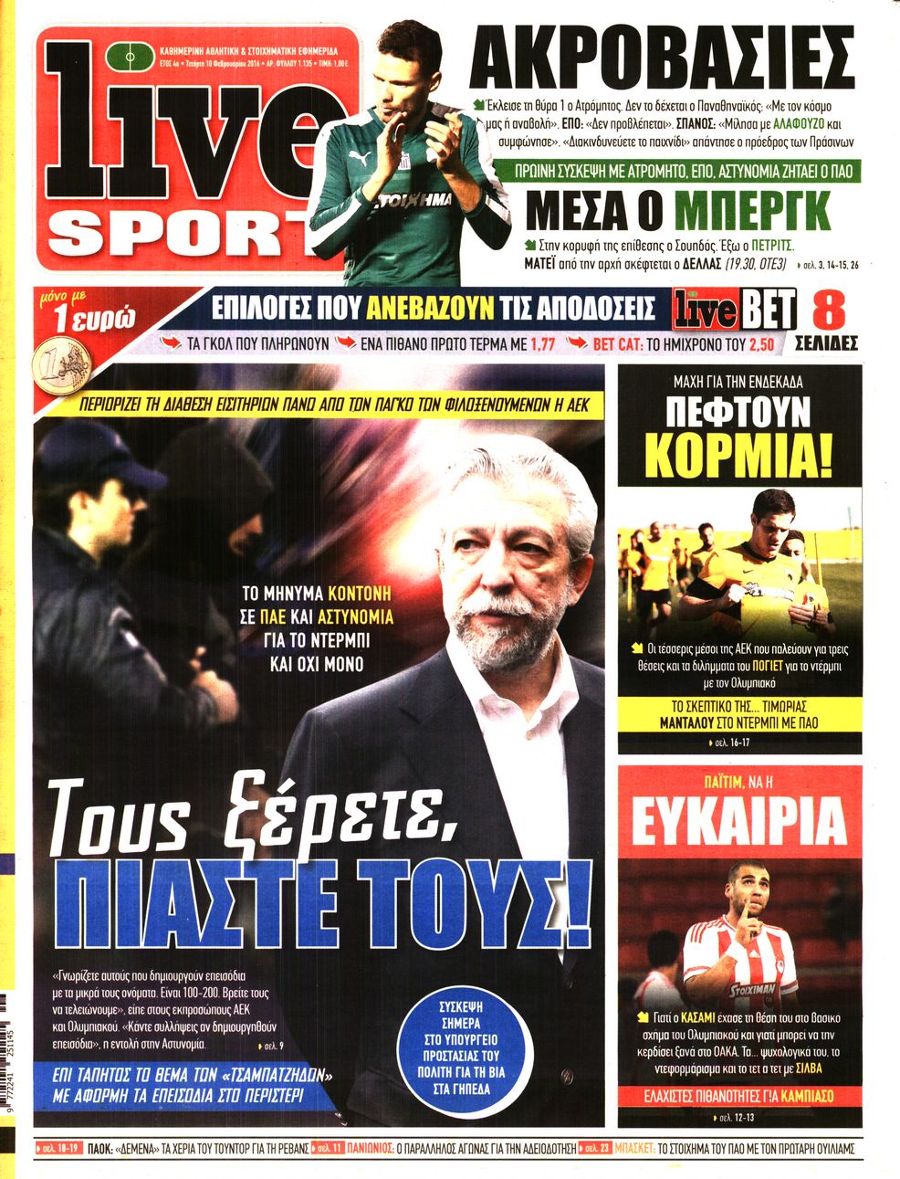 Οι αθλητικές εφημερίδες 10/2/2016 Enikos Newsroom 06:29, Τετάρτη 10 Φεβρουαρίου 2016 Media Διαβάστε τα σημερινά πρωτοσέλιδα των αθλητικών εφημερίδων. ΑΘΛΗΤΙΚΕΣ ΕΦΗΜΕΡΙΔΕΣ ΠΡΩΤΟΣΕΛΙΔΑ Μοιράσου το: σχολίασε κι εσύ (0 σχόλια) Ακολουθήστε το enikos.gr στο Google News και μάθετε πρώτοι όλες τις ειδήσεις Δείτε όλες τις τελευταίες ειδήσεις από την Ελλάδα και τον Κόσμο στο enikos.gr Ειδήσεις Ροή Ειδήσεων 6 ώρες πριν Χριστούγεννα στα μπλόκα οι αγρότες: Άνοιξαν στα διόδια και μοίρασαν προϊόντα στους πολίτες – Νέα σύσκεψη την Κυριακή στη Νίκαια 7 ώρες πριν Κύκλωμα διακίνησης ναρκωτικών σε σχολεία: Τηλεφωνούσαν στους ανηλίκους την ώρα του μαθήματος – Οι διάλογοι-σοκ, τα «ψευδώνυμα» και τα βασανιστήρια 6 ώρες πριν Αρχεία Επστάιν: Οι 500 σελίδες που λείπουν, τα αναπάντητα ερωτήματα και οι επώνυμοι – Τι έπεται 8 ώρες πριν Ζελένσκι: Μόνο οι ΗΠΑ και ο Τραμπ μπορούν να πιέσουν τη Ρωσία να βάλει τέλος στον πόλεμο 8 ώρες πριν Φοινικούντα: Προφυλακιστέος ο 30χρονος για συνέργεια στη διπλή δολοφονία – Και άλλα πρόσωπα στο «μικροσκόπιο» 6 ώρες πριν Αποκαλύφθηκε το άγνωστο «GPS» της αρχαιότητας – Πώς οι ναοί «φώτιζαν» τον δρόμο των ναυτικών πριν από την εφεύρεση των φάρων 7 ώρες πριν Ύπνος: Η διατροφή που μπορεί να σας βοηθήσει να κοιμάστε καλύτερα και να ζήσετε περισσότερο 8 ώρες πριν Αριθμολογία: Ο αριθμός του φύλακα αγγέλου σας, με βάση τον μήνα γέννησής σας – «Έτσι σας στέλνει σημάδια το σύμπαν» 20 ώρες πριν Enerwave: Το νέο «ρεύμα» στη λιανική ενέργειας που αλλάζει την εμπειρία του καταναλωτή 13 λεπτά πριν Σήμερα με τη Realnews: Δωροεπιταγή 10€ 11 λεπτά πριν «Εσκεμμένη παράλυση» της διαδικασίας καταμέτρησης των αποτελεσμάτων των εκλογών στην Ονδούρα, καταγγέλλει η αποστολή παρατηρητών της ΕΕ 26 λεπτά πριν Λευτέρης Πετρούνιας – Βασιλική Μιλλούση: Οι μαγευτικές φωτογραφίες από το ταξίδι τους στο Στρασβούργο με τις κόρες τους 40 λεπτά πριν Βενεζουέλα: Καταδικάζει την «κλοπή και την απαγωγή» δεύτερου πετρελαιοφόρου δεξαμενόπλοιου από τις ΗΠΑ 47 λεπτά πριν Σήμερα με τη Realnews: Ό,τι και αν αγοράσεις, σκανάρεις και κερδίζεις! ENIKOS NETWORK Οι γυναίκες αποκαλύπτουν το πιο ελκυστικό πράγμα που μπορεί να κάνει ένας άνδρας Ομορφιά και αντιγήρανση: Ειδικοί μιλούν για συσκευές περιποίησης του δέρματος «Πολεμική» προετοιμασία από την ευρωπαϊκή βιομηχανία ενέργειας – Η Eurelectric ζητεί «ομπρέλα» προστασίας για τις υποδομές Ακύρωση ΑΦΜ για απάτες – Ποιους βάζει στο στόχαστρο η ΑΑΔΕ Χαρτογραφώντας το «σημείο χωρίς επιστροφή»: Για πρώτη φορά αποκαλύπτεται με λεπτομέρεια το ακανθώδες όριο της ατμόσφαιρας τ... Η Google καταργεί τη λειτουργία «dark web report» – Πώς θα μπορούν οι χρήστες να διαγράφουν τα δεδομένα τους περισσότερα 04:08 , Κυριακή 21 Δεκεμβρίου 2025 Σήμερα με τη Realnews: Ό,τι και αν αγοράσεις, σκανάρεις και κερδίζεις! Σήμερα με τη Realnews: Ό,τι και αν αγοράσεις, σκανάρεις και κερδίζεις! Με το PADU app, το κορυ... 03:08 , Κυριακή 21 Δεκεμβρίου 2025 Σήμερα με τη Realnews: Instyle, μαζί Drive και Realnews Geopolitics Σήμερα με τη Realnews: Instyle, μαζί Drive και Realnews Geopolitics Instyle Η Άννα Ρεζάν, η Ch... 01:30 , Κυριακή 21 Δεκεμβρίου 2025 Άννα Βίσση: Τα… Social Media «προσκύνησαν» την «απόλυτη» για την συναυλία της στο Καλλιμάρμαρο που προβλήθηκε από το Mega Την ημέρα των γενεθλίων της Άννας Βίσση, το MEGA τίμησε τη διαχρονική παρουσία της «απόλυτης Ε... 00:00 , Κυριακή 21 Δεκεμβρίου 2025 The Voice: Η επιστροφή της Έλενας Παπαρίζου και η ατάκα του Γιώργου Μαζωνάκη μετά τις καταγγελίες Στη φάση των Cross Battles Live μπήκε το The V