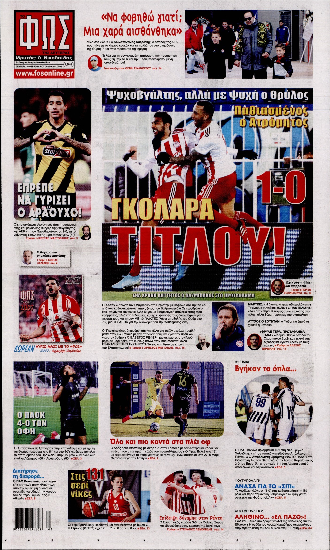 Οι αθλητικές εφημερίδες 10/2/2020 Διονύσης Νίκκας 06:58, Δευτέρα 10 Φεβρουαρίου 2020 Media Διαβάστε τα πρωτοσέλιδα των αθλητικών εφημερίδων… ΑΘΛΗΤΙΚΕΣ ΕΦΗΜΕΡΙΔΕΣ ΠΡΩΤΟΣΕΛΙΔΑ Μοιράσου το: σχολίασε κι εσύ (0 σχόλια) Ακολουθήστε το enikos.gr στο Google News και μάθετε πρώτοι όλες τις ειδήσεις Δείτε όλες τις τελευταίες ειδήσεις από την Ελλάδα και τον Κόσμο στο enikos.gr Ειδήσεις Ροή Ειδήσεων 41 λεπτά πριν Χριστούγεννα στα μπλόκα: Επιμένουν στις κινητοποιήσεις τους οι αγρότες – Ανοίγουν τα διόδια το Σαββατοκύριακο 1 ώρα πριν Ουκρανία: Η άνευ προηγουμένου επίθεση σε ρωσικό τάνκερ στη Μεσόγειο και το μήνυμα προς στον Πούτιν – Το «μακρύ χέρι» του Κιέβου 18 λεπτά πριν Πούτιν: Τα μηνύματα σε Ευρώπη και ΝΑΤΟ από το μαραθώνιο «σόου» του – Η απαίτηση για «σεβασμό» και η ειρήνη «με τους όρους» της Μόσχας 1 ώρα πριν Τραμπ: Δεν αποκλείει την πιθανότητα ενός πολέμου στη Βενεζουέλα – «Ο Μαδούρο ξέρει καλύτερα από τον καθένα τι ακριβώς θέλω» 2 ώρες πριν Συνεχίζει να προκαλεί ο Μίτσκοσκι: «Για μένα το όνομα Μακεδονία είναι ιερό» 4 ώρες πριν Πούτιν: «Ναι, είμαι ερωτευμένος» – Βίντεο από τη σπάνια προσωπική παραδοχή του 2 ώρες πριν Αριθμολογία: Οι άνθρωποι που έχουν γεννηθεί αυτές τις 4 ημερομηνίες, συχνά παρεξηγούνται – «Η καλοσύνη τους κρύβει τεράστια δύναμη» 1 ώρα πριν Ύπνος: Μια κρυφή κατάσταση του εγκεφάλου πριν από τον ύπνο μπορεί να είναι το “κλειδί” για υψηλή ευφυΐα και δημιουργικότητα 3 ώρες πριν Ξεχάστε το καθάρισμα το Σαββατοκύριακο: Ο «κανόνας των 20 λεπτών» που θα σας λύσει τα χέρια 19 λεπτά πριν Ανακαλύφθηκαν αρχαία χρυσά νομίσματα 2.200 ετών που απεικονίζουν τον θεό Απόλλωνα – Η άγνωστη σύνδεση με τον Φίλιππο Β΄ της Μακεδονίας 3 λεπτά πριν Ολυμπιακός – Βιλερμπάν 107-84: Επιστροφή στις νίκες με… προπόνηση 9 λεπτά πριν Νέος Κόσμος: Συνελήφθη 41χρονος με ένταλμα από την Τουρκία για εμπόριο ναρκωτικών και ληστεία 18 λεπτά πριν Πούτιν: Τα μηνύματα σε Ευρώπη και ΝΑΤΟ από το μαραθώνιο «σόου» του – Η απαίτηση για «σεβασμό» και η ειρήνη «με τους όρους» της Μόσχας 19 λεπτά πριν Ανακαλύφθηκαν αρχαία χρυσά νομίσματα 2.200 ετών που απεικονίζουν τον θεό Απόλλωνα – Η άγνωστη σύνδεση με τον Φίλιππο Β΄ της Μακεδονίας 24 λεπτά πριν Νίκος Ξυλούρης: Συγκινεί η χήρα του σπουδαίου καλλιτέχνη – «Ευχαριστώ όλο τον κόσμο που τον κρατάει ζωντανό 45 χρόνια» ENIKOS NETWORK Το ΕΚΑΒ τιμήθηκε από την Ακαδημία Αθηνών για τα 40 χρόνια προσφοράς του Έχετε πραγματικά μεγάλη καρδιά; 10 χαρακτηριστικά όσων έχουν καλοσύνη Πλήρης επάρκεια προϊόντων στις λαϊκές της Αττικής, παρά τις αγροτικές κινητοποιήσεις – Τι απαντούν οι πωλητές ΑΑΔΕ: Νέες αναβαθμίσεις στο Ψηφιακό Πελατολόγιο και την εφαρμογή myDATAapp – Τι πρέπει να γνωρίζετε Χαρτογραφώντας το «σημείο χωρίς επιστροφή»: Για πρώτη φορά αποκαλύπτεται με λεπτομέρεια το ακανθώδες όριο της ατμόσφαιρας τ... Η Google καταργεί τη λειτουργία «dark web report» – Πώς θα μπορούν οι χρήστες να διαγράφουν τα δεδομένα τους περισσότερα 22:42 , Παρασκευή 19 Δεκεμβρίου 2025 Γιώργος Γιαννόπουλος για “Το σόι σου”: “Είναι ευτυχία και ευλογία αυτή η σειρά” «Είναι ευτυχία και ευλογία η συγκυρία αυτής της σειράς», θα πει ο Γιώργος Γιαννόπουλος -ο αγαπ... 20:37 , Παρασκευή 19 Δεκεμβρίου 2025 Don’t Forget The Lyrics: Η Έλλη Κοκκίνου υποδέχεται 4 παίκτες που θα κάνουν τα πάντα για να μη χάσουν ούτε… μισή λέξη από τους στίχους Το «Don’t Forget The Lyrics» επιστρέφει απόψε, Παρασκευή 19 Δεκεμβρίου, στις 21:00 με νέο επει... 19:31 , Παρασκευή 19 Δεκεμβ