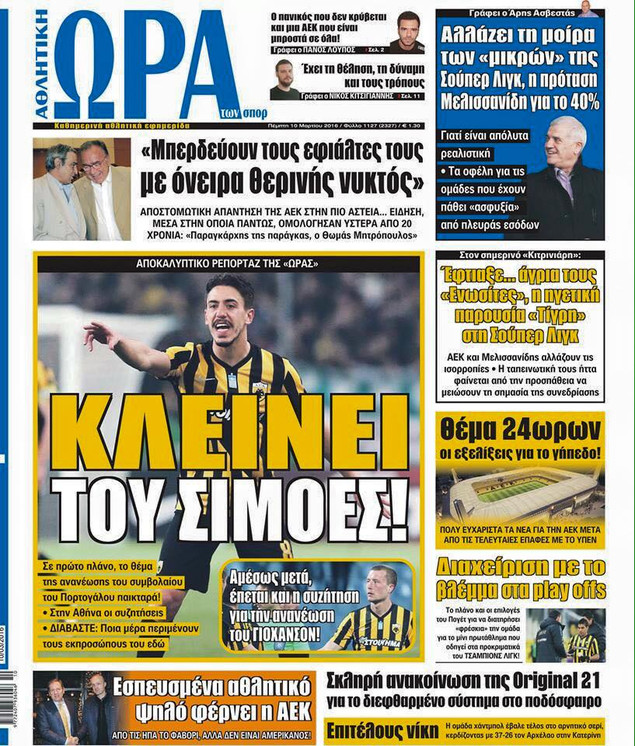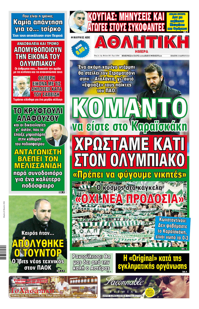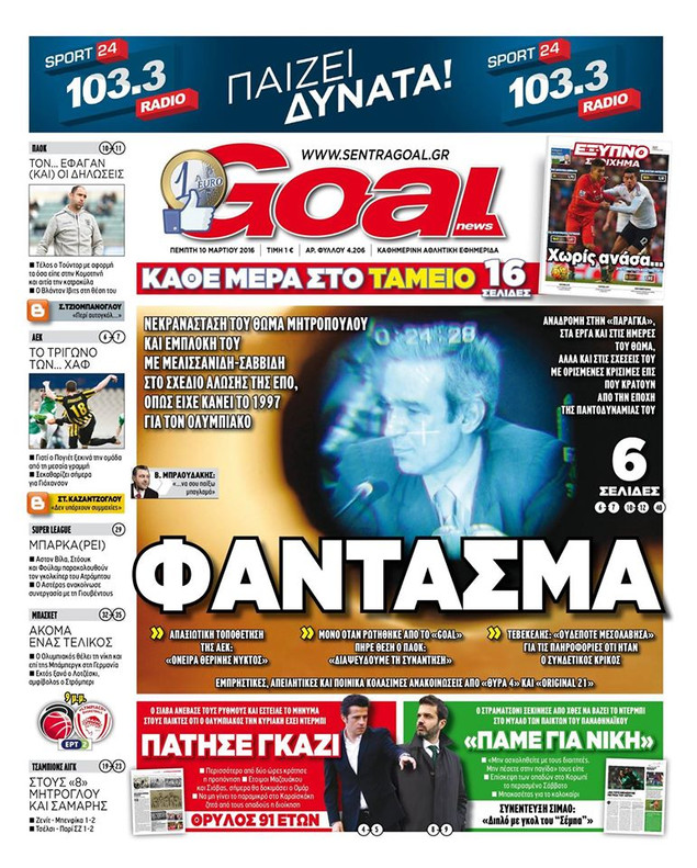 Oι αθλητικές εφημερίδες 10/3/2016 Enikos Newsroom 04:52, Πέμπτη 10 Μαρτίου 2016 Media Διαβάστε τα σημερινά πρωτοσέλιδα των αθλητικών εφημερίδων: ΑΘΛΗΤΙΚΕΣ ΕΦΗΜΕΡΙΔΕΣ ΠΡΩΤΟΣΕΛΙΔΑ Μοιράσου το: σχολίασε κι εσύ (0 σχόλια) Ακολουθήστε το enikos.gr στο Google News και μάθετε πρώτοι όλες τις ειδήσεις Δείτε όλες τις τελευταίες ειδήσεις από την Ελλάδα και τον Κόσμο στο enikos.gr Ειδήσεις Ροή Ειδήσεων 1 ώρα πριν Δημοσκόπηση Metron Analysis: Στις 10 μονάδες η διαφορά ΝΔ-ΠΑΣΟΚ, στην 3η θέση η Πλεύση Ελευθερίας – 8 στους 10 στηρίζουν τον αγώνα των αγροτών 6 ώρες πριν Αγρότες: «Όχι στον διάλογο, μας εμπαίζει η κυβέρνηση» – Αποφάσισαν κλιμάκωση των κινητοποιήσεων, τι θα γίνει τα Χριστούγεννα 1 ώρα πριν Νίκος Παππάς στον ΑΝΤ1: «Δεν κρύβομαι – Μετά το συμβάν ακολούθησα κανονικά το πρόγραμμά μου» – ΒΙΝΤΕΟ 3 ώρες πριν Αθήνα: Εξαρθρώθηκε εγκληματική οργάνωση που διακινούσε ναρκωτικά σε μορφή σοκολάτας – Δύο τράπερ ανάμεσα στους 4 συλληφθέντες – ΒΙΝΤΕΟ 1 ώρα πριν Διαμαντής Καραναστάσης: Οδηγούσε υπό την επήρεια αλκοόλ – Του αφαιρέθηκε το δίπλωμα και του επιβλήθηκε πρόστιμο 350 ευρώ 2 ώρες πριν Manifesting: Πώς να συναντήσετε τον σύντροφο της ζωής σας, ανάλογα με τον μήνα γέννησής σας 4 ώρες πριν Γάμος: 11 ψυχρές αλλά ευγενικές φράσεις, που λέει ένας άνδρας όταν σκέφτεται τον χωρισμό 3 ώρες πριν Σφουγγάρισμα: Η συνήθεια που θα σας βοηθήσει να διατηρήσετε το σπίτι σας καθαρό και τακτοποιημένο 2 ημέρες πριν 20 χρόνια τα Χριστούγεννα ξεκινούν στα Public με μεγάλη ποικιλία σε δώρα! 4 λεπτά πριν Αυξάνουν την πίεση προς την κυβέρνηση οι αγρότες: Κλείνουν παρακαμπτήριους και ανοίγουν διόδια – Τι θα γίνει τις γιορτές 9 λεπτά πριν Ελισάβετ Κωνσταντινίδου για τον Γεράσιμο Μιχελή και την Πόπη Χριστοδούλου: «Ξέρω ότι έχουν πάει απλώς κάπου αλλού, ότι δεν είναι ο θάνατος έτσι όπως τον έχουμε στο μυαλό μας» 13 λεπτά πριν Κρήτη: Νέες αποκαλύψεις για τον 54χρονο που κατηγορείται ότι εξαπάτησε τους γονείς του 33χρονου – Ζητούσε τρίχες αγνοουμένων 20 λεπτά πριν Τσιάρας: Δεν θα κινδυνέψουν οι πληρωμές των αγροτών – Χρειαζόμαστε μια νέα πολιτική, ένα restart 27 λεπτά πριν Δέσποινα Βανδή: Το βίντεο που δημοσίευσε με τον Γιώργο Νικολαΐδη – «Έχουμε καταστραφεί από τα μελομακάρονά σου» ENIKOS NETWORK Σε περίοδο αυξημένης δραστηριότητας η γρίπη στην Ελλάδα-Μέτρα προστασίας από τον ΕΟΔΥ Σκέφτεστε συνέχεια συζητήσεις που έχετε κάνει; Τι σημαίνει αυτό, σύμφωνα με ειδικό Λαγκάρντ: Αισιόδοξη για την ανάπτυξη της Ευρωζώνης, αβέβαιη για τον πληθωρισμό ΑΣΕΠ 2ΓΒ/2025: Σήμερα αρχίζει η υποβολή ενστάσεων – Πότε θα βγουν τα οριστικά αποτελέσματα Χαρτογραφώντας το «σημείο χωρίς επιστροφή»: Για πρώτη φορά αποκαλύπτεται με λεπτομέρεια το ακανθώδες όριο της ατμόσφαιρας τ... Η Google καταργεί τη λειτουργία «dark web report» – Πώς θα μπορούν οι χρήστες να διαγράφουν τα δεδομένα τους περισσότερα 17:45 , Πέμπτη 18 Δεκεμβρίου 2025 ROUK ZOUK: Εορταστικό επεισόδιο με καλεσμένους τους πρωταγωνιστές του «Γιατί ρε πατέρα» Το Σάββατο 20 Δεκεμβρίου στις 21:00, η Ζέτα Μακρυπούλια υποδέχεται εκλεκτούς ηθοποιούς που όλο... 17:20 , Πέμπτη 18 Δεκεμβρίου 2025 Άγιος έρωτας: Η Χριστίνα εξομολογείται στον πατέρα Νικόλαο, απόψε στις 21:00 στον Alpha Η Νότα αποφασίζει να εκδικηθεί τον Πέτρο και τον Στέφανο, για χάρη του Λούη, όμως τα πράγματα ... 16:50 , Πέμπτη 18 Δεκεμβρίου 2025 Να μ’ αγαπάς: Ζωή και Φωτεινή συμφιλιώνονται ως μάνα με κόρη, απόψε στις 20:00 Η ταυτότητα του Άγγελου αποκαλύπτεται στο νέο επεισόδιο της σειράς “Να μ’ αγ