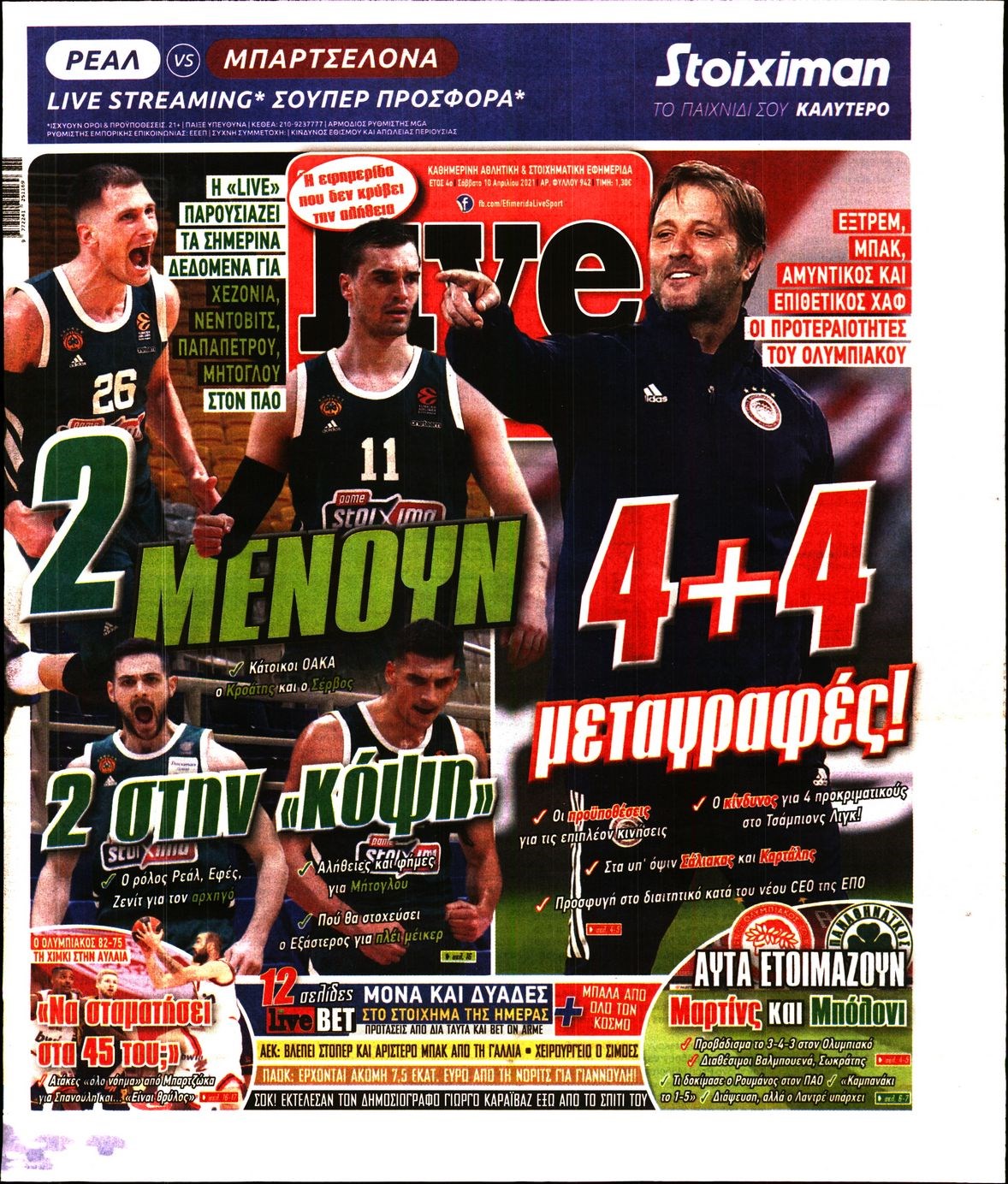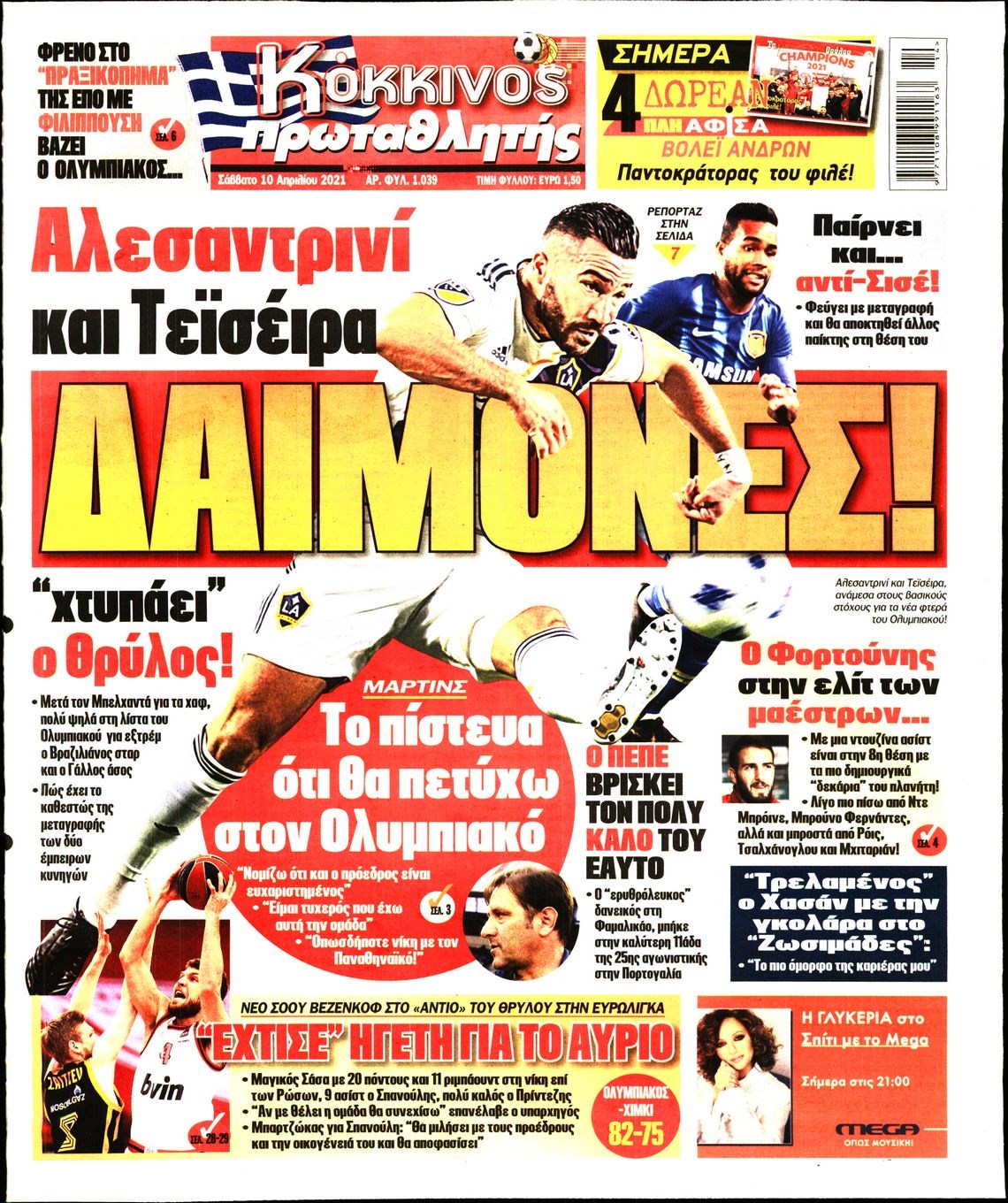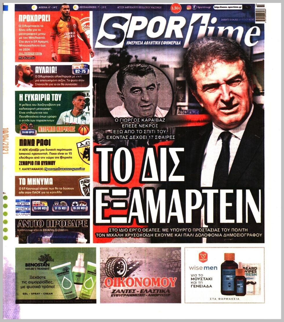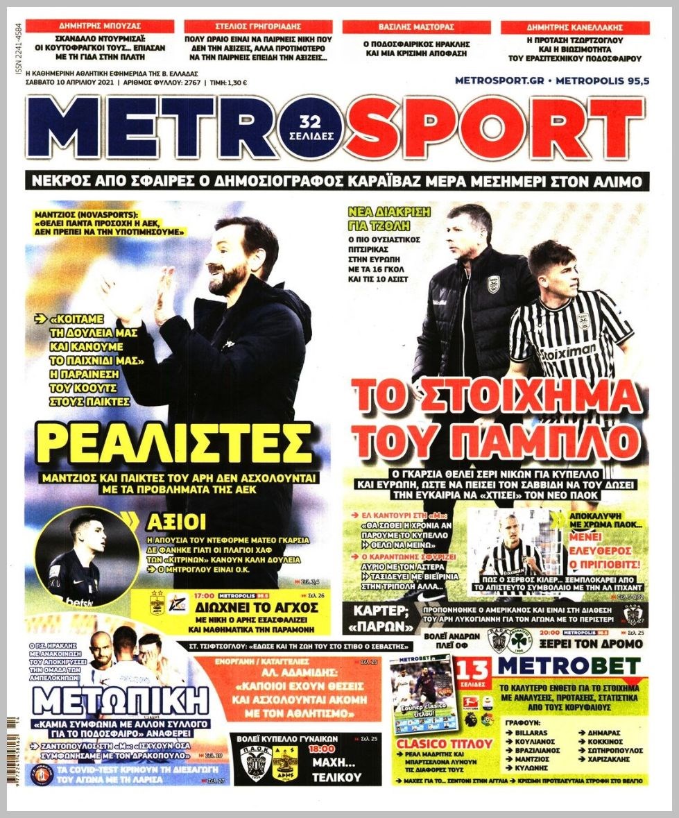 Οι αθλητικές εφημερίδες 10/4/2021 Διονύσης Νίκκας 08:24, Σάββατο 10 Απριλίου 2021 Media Διαβάστε τα πρωτοσέλιδα των αθλητικών εφημερίδων… ΑΘΛΗΤΙΚΕΣ ΕΦΗΜΕΡΙΔΕΣ Μοιράσου το: σχολίασε κι εσύ (0 σχόλια) Ακολουθήστε το enikos.gr στο Google News και μάθετε πρώτοι όλες τις ειδήσεις Δείτε όλες τις τελευταίες ειδήσεις από την Ελλάδα και τον Κόσμο στο enikos.gr Ειδήσεις Ροή Ειδήσεων 3 ώρες πριν Από το Ορμένιο ως τα Μάλγαρα κι από τη Σιάτιστα μέχρι τη Νίκαια: Μπλόκα σε όλη την Ελλάδα – Το Σάββατο ανοίγουν τα διόδια οι αγρότες 1 ώρα πριν Εμπλοκή και αερομαχίες με οπλισμένα τουρκικά F-16 στο Αιγαίο 3 ώρες πριν Αττική: Θρίλερ με νεκρό βρέφος 5 μηνών – Κοιμόταν στο ίδιο κρεβάτι με τους γονείς του 55 λεπτά πριν Πούτιν: «Ναι, είμαι ερωτευμένος» – Βίντεο από τη σπάνια προσωπική παραδοχή του 3 ώρες πριν Μεσόγειος: Η διαδρομή του ρωσικού τάνκερ «Qendil» και η στοχευμένη επίθεση της Ουκρανίας με drone – Ο Πούτιν προειδοποίησε για αντίποινα 5 ώρες πριν Τα 5 ζώδια που ευνοούνται στην ερωτική ζωή τους την επόμενη εβδομάδα – «Η ενέργεια του Αιγόκερου φέρνει αγάπη και σταθερότητα» 6 ώρες πριν Αυτό το έξυπνο μαθηματικό κόλπο θα μπορούσε να αλλάξει τον τρόπο με τον οποίο οι επιστήμονες μελετούν τους σεισμούς 2 ώρες πριν Μήπως έχετε χάσει τον εαυτό σας στη σχέση σας; 7 «αθόρυβες» υποχωρήσεις που μάλλον κάνατε, χωρίς να το συνειδητοποιήσετε 4 ώρες πριν Κουίζ για την παλιά Αθήνα: Αναγνωρίζετε την περιοχή; Έχετε περάσει 100% από εκεί 2 λεπτά πριν Μπαράκ Ομπάμα: Τα βιβλία, οι ταινίες και τα τραγούδια που ξεχώρισε το 2025 – Πλήρης λίστα 7 λεπτά πριν Don’t Forget The Lyrics: Η Έλλη Κοκκίνου υποδέχεται 4 παίκτες που θα κάνουν τα πάντα για να μη χάσουν ούτε… μισή λέξη από τους στίχους 13 λεπτά πριν Πλεύρης στον ΑΝΤ1: Η βασική πολιτική που ψηφίστηκε από τους υπουργούς Μετανάστευσης είναι η δημιουργία κέντρων κράτησης μεταναστών στην Αφρική – ΒΙΝΤΕΟ 17 λεπτά πριν Η εξομολόγηση της Νίκης Σερέτη: «Δεν κρύβω ότι ήταν πάρα πολύ δύσκολο όλο αυτό που βίωσα» 23 λεπτά πριν Αγρότες: Κλειστό ξανά το ρεύμα εισόδου στα Μάλγαρα – Άνοιξαν τον κόμβο της Χαλκηδόνας ENIKOS NETWORK Έχετε πραγματικά μεγάλη καρδιά; 10 χαρακτηριστικά όσων έχουν καλοσύνη «Η σούπερ» γρίπη εξαπλώνεται στην Ευρώπη-Στοιχεία από το ECDC για την αποτελεσματικότητα του εμβολίου Επίδομα παιδιού: Πότε ανοίγει ξανά η πλατφόρμα για τις αιτήσεις Προκήρυξη ΑΣΕΠ για 397 μόνιμες προσλήψεις στο Δημόσιο: Βγήκαν τα προσωρινά αποτελέσματα – Πότε αρχίζει η υποβολή ενστάσεων Χαρτογραφώντας το «σημείο χωρίς επιστροφή»: Για πρώτη φορά αποκαλύπτεται με λεπτομέρεια το ακανθώδες όριο της ατμόσφαιρας τ... Η Google καταργεί τη λειτουργία «dark web report» – Πώς θα μπορούν οι χρήστες να διαγράφουν τα δεδομένα τους περισσότερα 20:37 , Παρασκευή 19 Δεκεμβρίου 2025 Don’t Forget The Lyrics: Η Έλλη Κοκκίνου υποδέχεται 4 παίκτες που θα κάνουν τα πάντα για να μη χάσουν ούτε… μισή λέξη από τους στίχους Το «Don’t Forget The Lyrics» επιστρέφει απόψε, Παρασκευή 19 Δεκεμβρίου, στις 21:00 με νέο επει... 19:31 , Παρασκευή 19 Δεκεμβρίου 2025 GNTM: Απόψε ο μεγάλος τελικός για τους 4 φιναλίστ Έπειτα από μήνες γεμάτους μόδα, δημιουργία και έντονες αναμετρήσεις, το GNTM 2025 κορυφώνεται,... 18:11 , Παρασκευή 19 Δεκεμβρίου 2025 Το σόι σου: Ο Άρης έρχεται στην Ελλάδα για τις γιορτές των Χριστουγέννων – Τι θα δούμε στο αποψινό εορταστικό επεισόδιο Ένα απολαυστικό, εορταστικό επεισόδιο της σειράς “Το σόι σου”, γεμάτο ευτράπελα αλ... 15:15 , Παρασκευή 19 Δεκεμβρίου 2025 Την Κυριακή με τη Realnews:
