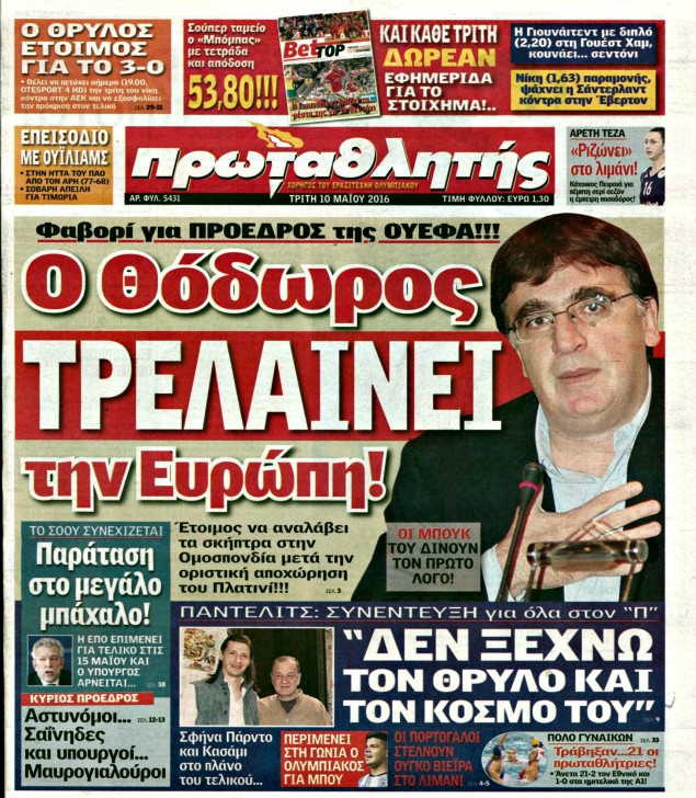 Oι αθλητικές εφημερίδες 10/5/2016 Enikos Newsroom 04:55, Τρίτη 10 Μαΐου 2016 Media Διαβάστε τα σημερινά πρωτοσέλιδα των αθλητικών εφημερίδων: ΑΘΛΗΤΙΚΕΣ ΕΦΗΜΕΡΙΔΕΣ ΠΡΩΤΟΣΕΛΙΔΑ Μοιράσου το: σχολίασε κι εσύ (0 σχόλια) Ακολουθήστε το enikos.gr στο Google News και μάθετε πρώτοι όλες τις ειδήσεις Δείτε όλες τις τελευταίες ειδήσεις από την Ελλάδα και τον Κόσμο στο enikos.gr Ειδήσεις Ροή Ειδήσεων 4 ώρες πριν Αγρότες: «Όχι στον διάλογο, μας εμπαίζει η κυβέρνηση» – Αποφάσισαν κλιμάκωση των κινητοποιήσεων, τι θα γίνει τα Χριστούγεννα 49 λεπτά πριν Αθήνα: Εξαρθρώθηκε εγκληματική οργάνωση που διακινούσε ναρκωτικά σε μορφή σοκολάτας – Δύο τράπερ ανάμεσα στους 4 συλληφθέντες – ΒΙΝΤΕΟ 58 λεπτά πριν Στη φυλακή ο «Έλληνας Εσκομπάρ» και τρεις συνεργοί του για το φορτίο με την κοκαΐνη – Τι υποστήριξε στην απολογία του 2 ώρες πριν Γιώργος Μαζωνάκης: «Έχει υποστεί ένα σωρό εκβιαστικές πρακτικές – Του είπαν ότι θα του βάλουν τον συγκεκριμένο άνθρωπο να τον καταγγείλει» 35 λεπτά πριν Γεωργιάδης για Κωνσταντοπούλου: «Έχει καταφέρει να ξεπεράσει ακόμη και τον εαυτό της – Το ερώτημα είναι “γιατί τώρα;”» 5 ώρες πριν Τα 5 ζώδια που θα ευνοηθούν στα οικονομικά τους το 2026 – «Τραβούν το χρήμα σαν μαγνήτες» 2 ώρες πριν Γάμος: 11 ψυχρές αλλά ευγενικές φράσεις, που λέει ένας άνδρας όταν σκέφτεται τον χωρισμό 44 λεπτά πριν Σφουγγάρισμα: Η συνήθεια που θα σας βοηθήσει να διατηρήσετε το σπίτι σας καθαρό και τακτοποιημένο 1 ημέρα πριν 20 χρόνια τα Χριστούγεννα ξεκινούν στα Public με μεγάλη ποικιλία σε δώρα! 4 λεπτά πριν ΗΠΑ: Νέες φωτογραφίες από τον φάκελο Επστάιν έδωσαν στην δημοσιότητα οι Δημοκρατικοί 10 λεπτά πριν ΕΦΕΤ: Συμβουλές για ασφαλή κατανάλωση τροφίμων κατά την εορταστική περίοδο των Χριστουγέννων 18 λεπτά πριν Φάμελλος: Η κινητοποίηση των αγροτών είναι για το συμφέρον όλων των κοινωνικών ομάδων – Πρέπει να φύγετε το συντομότερο 23 λεπτά πριν Primeira Liga: 8ος πιο ακριβός παίκτης στην Πορτογαλία ο Παυλίδης με αξία 35 εκατ. ευρώ – 27ος ο Ιωαννίδης, 45ος ο Βαγιαννίδης 28 λεπτά πριν Λένα Μαντά: «Με τον πατέρα μου δεν έχω ούτε μία καλή ανάμνηση» ENIKOS NETWORK Σκέφτεστε συνέχεια συζητήσεις που έχετε κάνει; Τι σημαίνει αυτό, σύμφωνα με ειδικό Ξεκίνησε η «επέλαση» της γρίπης στην Ελλάδα-Ποιοι κινδυνεύουν Servicers: Μικρή μείωση στα κόκκινα δάνεια που διαχειρίζονται – Αναλυτικά τα στοιχεία ΑΑΔΕ: “Αλλάζει πρόσωπο” το Φορολογικό Μητρώο για πολίτες και επιχειρήσεις – Όλες οι λεπτομέρειες Χαρτογραφώντας το «σημείο χωρίς επιστροφή»: Για πρώτη φορά αποκαλύπτεται με λεπτομέρεια το ακανθώδες όριο της ατμόσφαιρας τ... Η Google καταργεί τη λειτουργία «dark web report» – Πώς θα μπορούν οι χρήστες να διαγράφουν τα δεδομένα τους περισσότερα 17:45 , Πέμπτη 18 Δεκεμβρίου 2025 ROUK ZOUK: Εορταστικό επεισόδιο με καλεσμένους τους πρωταγωνιστές του «Γιατί ρε πατέρα» Το Σάββατο 20 Δεκεμβρίου στις 21:00, η Ζέτα Μακρυπούλια υποδέχεται εκλεκτούς ηθοποιούς που όλο... 17:20 , Πέμπτη 18 Δεκεμβρίου 2025 Άγιος έρωτας: Η Χριστίνα εξομολογείται στον πατέρα Νικόλαο, απόψε στις 21:00 στον Alpha Η Νότα αποφασίζει να εκδικηθεί τον Πέτρο και τον Στέφανο, για χάρη του Λούη, όμως τα πράγματα ... 16:50 , Πέμπτη 18 Δεκεμβρίου 2025 Να μ’ αγαπάς: Ζωή και Φωτεινή συμφιλιώνονται ως μάνα με κόρη, απόψε στις 20:00 Η ταυτότητα του Άγγελου αποκαλύπτεται στο νέο επεισόδιο της σειράς “Να μ’ αγαπάς... 15:52 , Πέμπτη 18 Δεκεμβρίου 2025 Το Σπίτι Δίπλα Στο Ποτάμι: Το καθηλωτικό τελευταίο επεισόδιο για το 2025 απόψε στις 22:30 Καθηλών