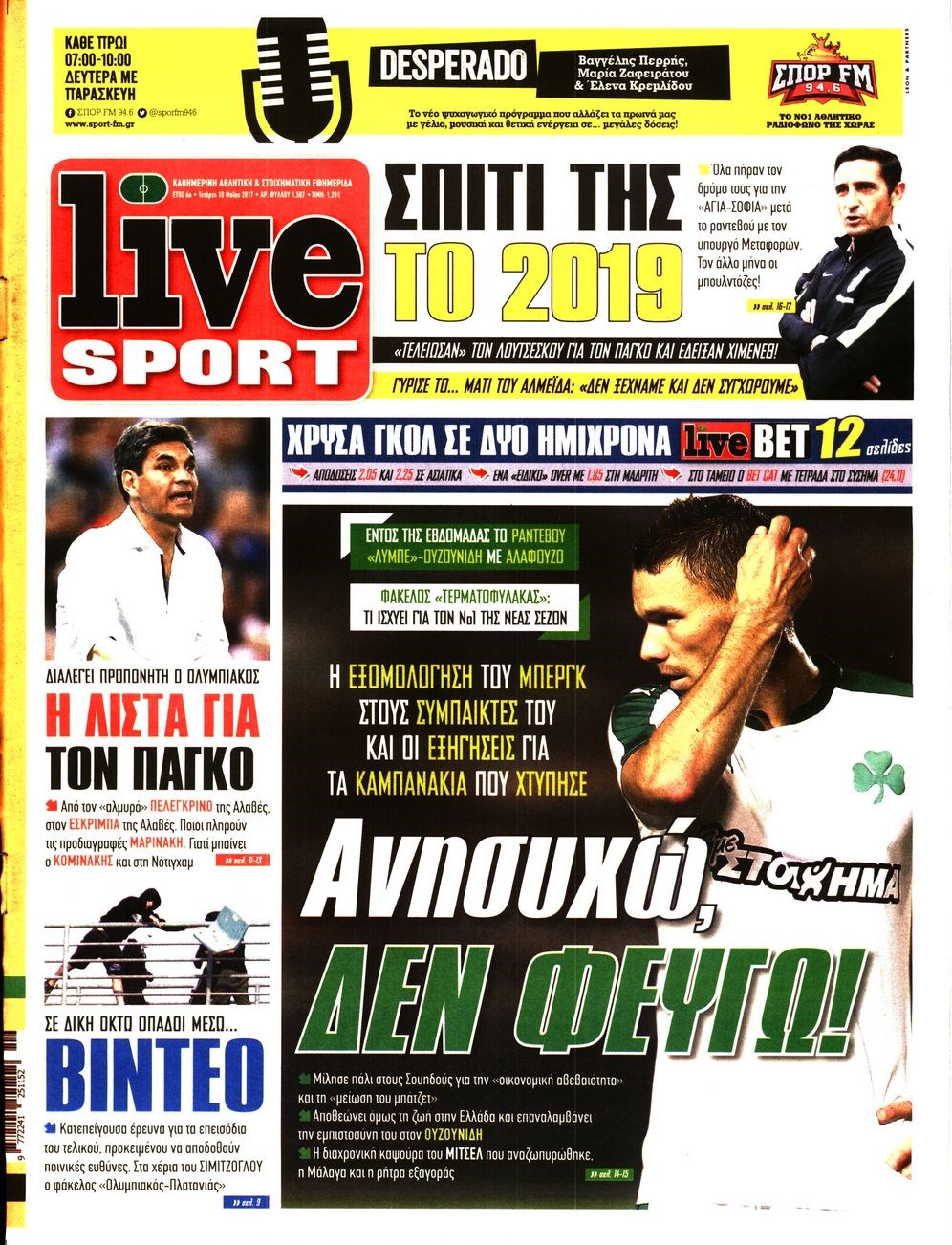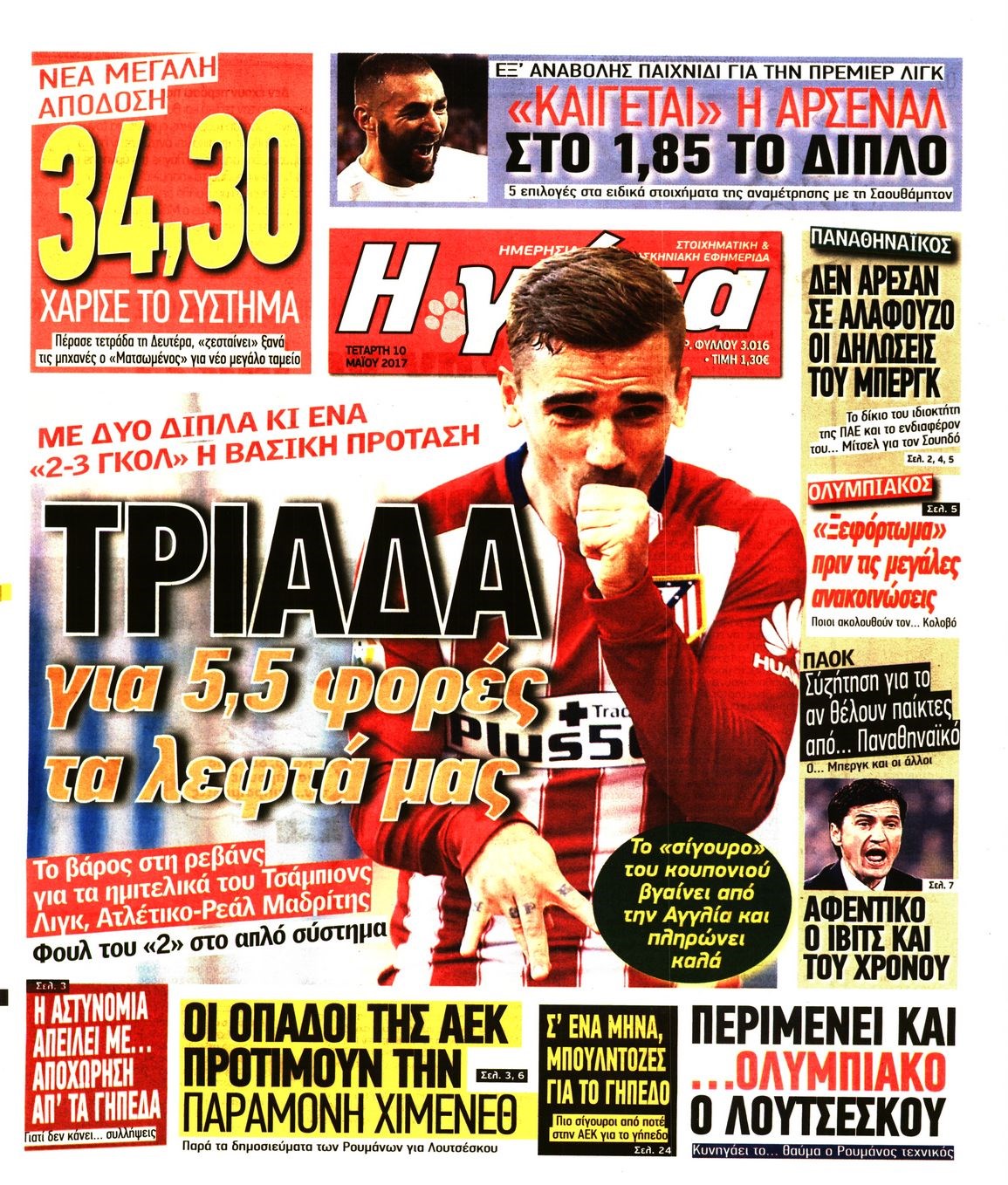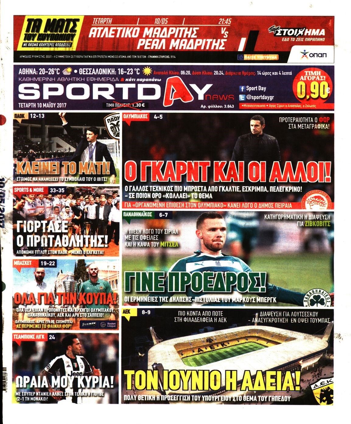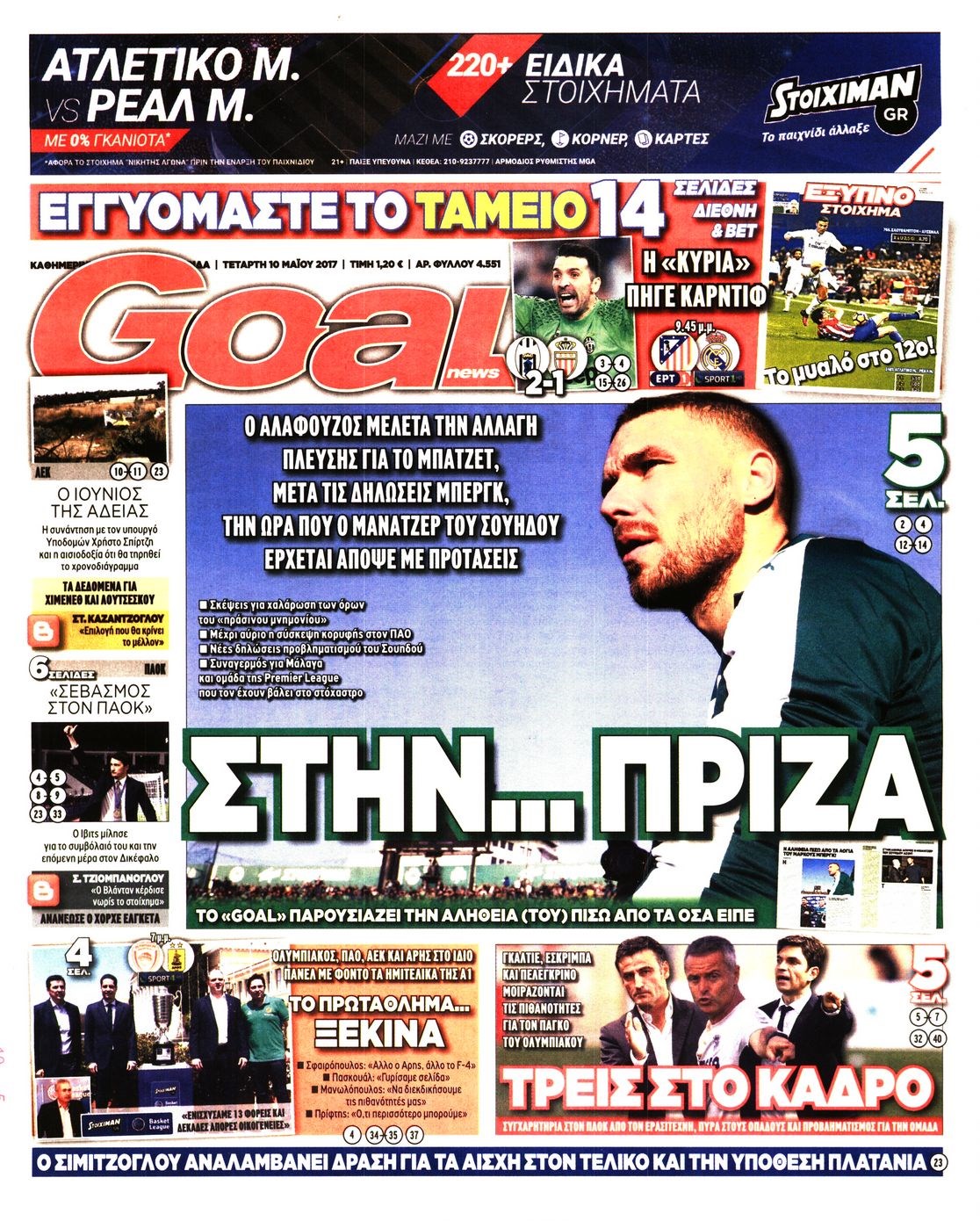 Οι αθλητικές εφημερίδες 10/5/2017 Enikos Newsroom 06:41, Τετάρτη 10 Μαΐου 2017 Media Διαβάστε τα σημερινά πρωτοσέλιδα των αθλητικών εφημερίδων: ΑΘΛΗΤΙΚΕΣ ΕΦΗΜΕΡΙΔΕΣ ΠΡΩΤΟΣΕΛΙΔΑ Μοιράσου το: σχολίασε κι εσύ (0 σχόλια) Ακολουθήστε το enikos.gr στο Google News και μάθετε πρώτοι όλες τις ειδήσεις Δείτε όλες τις τελευταίες ειδήσεις από την Ελλάδα και τον Κόσμο στο enikos.gr Ειδήσεις Ροή Ειδήσεων 1 ώρα πριν Δημοσκόπηση Metron Analysis: Στις 10 μονάδες η διαφορά ΝΔ-ΠΑΣΟΚ, στην 3η θέση η Πλεύση Ελευθερίας – 8 στους 10 στηρίζουν τον αγώνα των αγροτών 6 ώρες πριν Αγρότες: «Όχι στον διάλογο, μας εμπαίζει η κυβέρνηση» – Αποφάσισαν κλιμάκωση των κινητοποιήσεων, τι θα γίνει τα Χριστούγεννα 1 ώρα πριν Νίκος Παππάς στον ΑΝΤ1: «Δεν κρύβομαι – Μετά το συμβάν ακολούθησα κανονικά το πρόγραμμά μου» – ΒΙΝΤΕΟ 3 ώρες πριν Αθήνα: Εξαρθρώθηκε εγκληματική οργάνωση που διακινούσε ναρκωτικά σε μορφή σοκολάτας – Δύο τράπερ ανάμεσα στους 4 συλληφθέντες – ΒΙΝΤΕΟ 55 λεπτά πριν Διαμαντής Καραναστάσης: Οδηγούσε υπό την επήρεια αλκοόλ – Του αφαιρέθηκε το δίπλωμα και του επιβλήθηκε πρόστιμο 350 ευρώ 1 ώρα πριν Manifesting: Πώς να συναντήσετε τον σύντροφο της ζωής σας, ανάλογα με τον μήνα γέννησής σας 3 ώρες πριν Γάμος: 11 ψυχρές αλλά ευγενικές φράσεις, που λέει ένας άνδρας όταν σκέφτεται τον χωρισμό 2 ώρες πριν Σφουγγάρισμα: Η συνήθεια που θα σας βοηθήσει να διατηρήσετε το σπίτι σας καθαρό και τακτοποιημένο 2 ημέρες πριν 20 χρόνια τα Χριστούγεννα ξεκινούν στα Public με μεγάλη ποικιλία σε δώρα! 5 λεπτά πριν Τσιάρας: Δεν θα κινδυνέψουν οι πληρωμές των αγροτών – Χρειαζόμαστε μια νέα πολιτική, ένα restart 12 λεπτά πριν Δέσποινα Βανδή: Το βίντεο που δημοσίευσε με τον Γιώργο Νικολαΐδη – «Έχουμε καταστραφεί από τα μελομακάρονά σου» 18 λεπτά πριν Κλήρωση ΤΖΟΚΕΡ 18/12/2025: Αυτοί είναι οι τυχεροί αριθμοί 20 λεπτά πριν Τραμπ: Ζητεί από την Ουκρανία να “κινηθεί γρήγορα” στις διαπραγματεύσεις για το τέλος της σύγκρουσης 26 λεπτά πριν Ύπνος: Η απλή βραδινή ρουτίνα για να προστατεύσετε τα μαλλιά σας από το κρύο κατά τη διάρκεια του χειμώνα ENIKOS NETWORK Σε περίοδο αυξημένης δραστηριότητας η γρίπη στην Ελλάδα-Μέτρα προστασίας από τον ΕΟΔΥ Σκέφτεστε συνέχεια συζητήσεις που έχετε κάνει; Τι σημαίνει αυτό, σύμφωνα με ειδικό ΑΣΕΠ 2ΓΒ/2025: Σήμερα αρχίζει η υποβολή ενστάσεων – Πότε θα βγουν τα οριστικά αποτελέσματα ΕΛΤΑ: Αυτό είναι το νέο σχέδιο μετασχηματισμού του Οργανισμού- Τι δήλωσαν Πιερρακάκης και Παπαστεργίου Χαρτογραφώντας το «σημείο χωρίς επιστροφή»: Για πρώτη φορά αποκαλύπτεται με λεπτομέρεια το ακανθώδες όριο της ατμόσφαιρας τ... Η Google καταργεί τη λειτουργία «dark web report» – Πώς θα μπορούν οι χρήστες να διαγράφουν τα δεδομένα τους περισσότερα 17:45 , Πέμπτη 18 Δεκεμβρίου 2025 ROUK ZOUK: Εορταστικό επεισόδιο με καλεσμένους τους πρωταγωνιστές του «Γιατί ρε πατέρα» Το Σάββατο 20 Δεκεμβρίου στις 21:00, η Ζέτα Μακρυπούλια υποδέχεται εκλεκτούς ηθοποιούς που όλο... 17:20 , Πέμπτη 18 Δεκεμβρίου 2025 Άγιος έρωτας: Η Χριστίνα εξομολογείται στον πατέρα Νικόλαο, απόψε στις 21:00 στον Alpha Η Νότα αποφασίζει να εκδικηθεί τον Πέτρο και τον Στέφανο, για χάρη του Λούη, όμως τα πράγματα ... 16:50 , Πέμπτη 18 Δεκεμβρίου 2025 Να μ’ αγαπάς: Ζωή και Φωτεινή συμφιλιώνονται ως μάνα με κόρη, απόψε στις 20:00 Η ταυτότητα του Άγγελου αποκαλύπτεται στο νέο επεισόδιο της σειράς “Να μ’ αγαπάς... 15:52 , Πέμπτη 18 Δεκεμβρίου 2025 Το Σπίτι Δίπλα Στο Ποτάμι: Το καθηλωτικό τελευταίο επεισόδιο για το 2025 απόψε στις 22:30 Καθηλώνει το ση