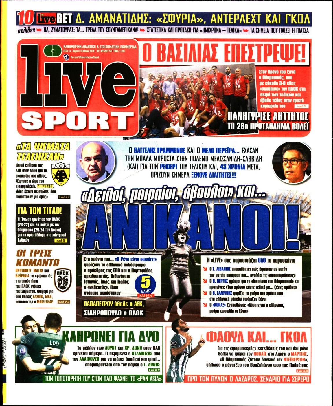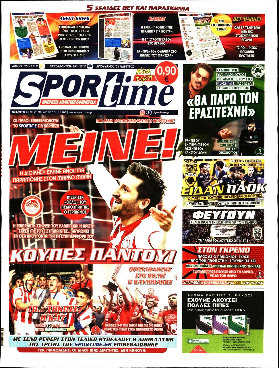 Οι αθλητικές εφημερίδες 10/5/2018 Enikos Newsroom 07:52, Πέμπτη 10 Μαΐου 2018 Media Διαβάστε τα σημερινά πρωτοσέλιδα των αθλητικών εφημερίδων: ΑΘΛΗΤΙΚΕΣ ΕΦΗΜΕΡΙΔΕΣ ΠΡΩΤΟΣΕΛΙΔΑ Μοιράσου το: σχολίασε κι εσύ (0 σχόλια) Ακολουθήστε το enikos.gr στο Google News και μάθετε πρώτοι όλες τις ειδήσεις Δείτε όλες τις τελευταίες ειδήσεις από την Ελλάδα και τον Κόσμο στο enikos.gr Ειδήσεις Ροή Ειδήσεων 1 ώρα πριν Η Ουκρανία χτύπησε τάνκερ του σκιώδους στόλου της Ρωσίας στη Μεσόγειο – Έπλεε νότια της Κρήτης 4 ώρες πριν Πούτιν: Η Ουκρανία δεν είναι έτοιμη για ειρηνευτικές συνομιλίες – Ο ρωσικός στρατός προελαύνει σε όλα τα μέτωπα 23 λεπτά πριν Θεσσαλονίκη: Στη φυλακή ο 44χρονος που κατηγορείται ότι προσπάθησε να πνίξει με κορδόνι την 34χρονη σύντροφό του 41 λεπτά πριν Εξώδικο επιχειρηματία στον Γιώργο Μαζωνάκη – Τι απαντά στις καταγγελίες του τραγουδιστή 1 ώρα πριν Βουλή: Υπερψηφίστηκε το νομοσχέδιο για την ένταξη του ΟΠΕΚΕΠΕ στην ΑΑΔΕ 5 ώρες πριν Αλλαγή σελίδας για 3 ζώδια – «Μία δύσκολη περίοδος φτάνει στο τέλος της» 2 ημέρες πριν 20 χρόνια τα Χριστούγεννα ξεκινούν στα Public με μεγάλη ποικιλία σε δώρα! 4 ώρες πριν Γεμάτος νεροχύτης; 5 σοβαρές ευθύνες που «φοβίζουν» όσους αφήνουν άπλυτα πιάτα 3 ώρες πριν Ειδικός μοιράζεται 6 κόλπα για να διατηρείστε σε φόρμα με πάνω από 40 ώρες εργασίας την εβδομάδα: «Προπονηθείτε πριν από τη δουλειά, όχι μετά» 4 λεπτά πριν Η απάντηση της κυβέρνησης στα αιτήματα των αγροτών: 16+4 υλοποιούνται ή βρίσκονται υπό επεξεργασία για να βρεθεί λύση – 7 δεν μπορούν να επιλυθούν 11 λεπτά πριν Την Κυριακή με τη Realnews: Ό,τι και αν αγοράσεις, σκανάρεις και κερδίζεις! 17 λεπτά πριν ΝΒΑ: Η πρώτη… πεντάδα του Γιάννη Αντετοκούνμπο 20 λεπτά πριν Η Σάντυ Χατζηϊωάννου στο Game Time: Το παιδικό όνειρο με τον Αντώνη Νικοπολίδη και το ντουέτο με την Ευγενία Σαμαρά 23 λεπτά πριν Θεσσαλονίκη: Στη φυλακή ο 44χρονος που κατηγορείται ότι προσπάθησε να πνίξει με κορδόνι την 34χρονη σύντροφό του ENIKOS NETWORK Τάξη στις ιατρικές διαφημίσεις για την προστασία των πολιτών βάζει ο ΙΣΑ Μακροζωία: Τι παίζει πιο σημαντικό ρόλο ακόμα και από την διατροφή και την άσκηση, σύμφωνα με μελέτη Βουλή: Υπερψηφίστηκε το νομοσχέδιο για τη μετάβαση του ΟΠΕΚΕΠΕ στην ΑΑΔΕ ΕΥΔΑΠ: Οδηγός για τις αλλαγές στα τιμολόγια του νερού – 17 ερωτήσεις και απαντήσεις Χαρτογραφώντας το «σημείο χωρίς επιστροφή»: Για πρώτη φορά αποκαλύπτεται με λεπτομέρεια το ακανθώδες όριο της ατμόσφαιρας τ... Η Google καταργεί τη λειτουργία «dark web report» – Πώς θα μπορούν οι χρήστες να διαγράφουν τα δεδομένα τους περισσότερα 15:15 , Παρασκευή 19 Δεκεμβρίου 2025 Την Κυριακή με τη Realnews: Ό,τι και αν αγοράσεις, σκανάρεις και κερδίζεις! Την Κυριακή με τη Realnews: Ό,τι και αν αγοράσεις, σκανάρεις και κερδίζεις! Με το PADU app, το... 08:00 , Παρασκευή 19 Δεκεμβρίου 2025 Την Κυριακή με τη Realnews: Δωροεπιταγή 10€ Δωροεπιταγή αξίας 10€ για αγορές άνω των 60€ από τα πολυκαταστήματα FactoryOutlet H προσφορά ι... 05:48 , Παρασκευή 19 Δεκεμβρίου 2025 Οι οικονομικές εφημερίδες 19/12/2025 Διαβάστε τα πρωτοσέλιδα από τις οικονομικές εφημερίδες, σήμερα 19/12/2025. 05:43 , Παρασκευή 19 Δεκεμβρίου 2025 Οι αθλητικές εφημερίδες 19/12/2025 Διαβάστε τα πρωτοσέλιδα από τις αθλητικές εφημερίδες, σήμερα 19/12/2025. ΤΕΛΕΥΤΑΙΕΣ ΕΙΔΗΣΕΙΣ 4 λεπτά πριν Η απάντηση της κυβέρνησης στα αιτήματα των αγροτών: 16+4... 11 λεπτά πριν Την Κυριακή με τη Realnews: Ό,τι και αν αγοράσεις,... 17 λεπτά πριν ΝΒΑ: Η πρώτη… πεντάδα του Γιάννη Αντετοκούνμπο 20 λεπτά πριν Η Σάντυ Χατζηϊωάννου στ