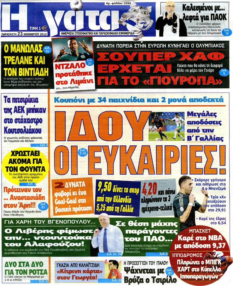 Οι αθλητικές εφημερίδες Enikos Newsroom 08:51, Παρασκευή 23 Νοεμβρίου 2012 Media Οι αθλητικές εφημερίδες Τα σημερινά πρωτοσέλιδα των αθλητικών εφημερίδων. ΑΘΛΗΤΙΚΑ ΕΦΗΜΕΡΙΔΕΣ ΕΦΗΜΕΡΙΔΕΣ ΠΡΩΤΟΣΕΛΙΔΑ ΠΡΩΤΟΣΕΛΙΔΑ Μοιράσου το: σχολίασε κι εσύ (0 σχόλια) Ακολουθήστε το enikos.gr στο Google News και μάθετε πρώτοι όλες τις ειδήσεις Δείτε όλες τις τελευταίες ειδήσεις από την Ελλάδα και τον Κόσμο στο enikos.gr Ειδήσεις Ροή Ειδήσεων 30 λεπτά πριν Ευρωπαϊκή Ένωση: Συμφωνία για δάνειο 90 δισ. ευρώ στην Ουκρανία τη διετία 2026-2027 5 ώρες πριν ΟΠΕΚΕΠΕ: Προφυλακιστέος ο φερόμενος αρχηγός και ο λογιστής της εγκληματικής οργάνωσης 6 ώρες πριν Αυξάνουν την πίεση προς την κυβέρνηση οι αγρότες: Κλείνουν παρακαμπτήριους και ανοίγουν διόδια – Τι θα γίνει τις γιορτές 6 ώρες πριν Φοινικούντα: Το Σάββατο απολογείται ο 30χρονος γιος γνωστού επιχειρηματία της Πλάκας που παραδόθηκε – Όσα είπε στους αστυνομικούς και ο ρόλος του στο έγκλημα 5 ώρες πριν ΑΕΚ – Κραϊόβα 3-2: Επική ανατροπή και πρόκριση στους «16» του Conference League η Ένωση 6 ώρες πριν Αρχαιολόγοι ανακάλυψαν ρωμαϊκά τεχνουργήματα από μια πόλη που δεν υπήρξε ποτέ – Τα τρία εντυπωσιακά κτίρια και ο αμφορέας με τις… σαρδέλες 7 ώρες πριν Ύπνος: Η απλή βραδινή ρουτίνα για να προστατεύσετε τα μαλλιά σας από το κρύο κατά τη διάρκεια του χειμώνα 8 ώρες πριν Manifesting: Πώς να συναντήσετε τον σύντροφο της ζωής σας, ανάλογα με τον μήνα γέννησής σας 2 ημέρες πριν 20 χρόνια τα Χριστούγεννα ξεκινούν στα Public με μεγάλη ποικιλία σε δώρα! 18 λεπτά πριν Γουατεμάλα: Εξαρθρώθηκε κύκλωμα διακίνησης μεταναστών προς τις ΗΠΑ – Συνελήφθησαν 14 άτομα 23 λεπτά πριν Βουλγαρία: Χιλιάδες πολίτες στους δρόμους κατά της απερχόμενης κυβέρνησης και της διαφθοράς 30 λεπτά πριν Ευρωπαϊκή Ένωση: Συμφωνία για δάνειο 90 δισ. ευρώ στην Ουκρανία τη διετία 2026-2027 54 λεπτά πριν Αιματηρή βομβιστική επίθεση στην Υεμένη: Τουλάχιστον τρεις νεκροί και 13 τραυματίες 57 λεπτά πριν Στη Φλόριντα σήμερα οι διαβουλεύσεις σχετικά με τα επόμενα στάδια για τη Λωρίδα της Γάζας ENIKOS NETWORK Σε περίοδο αυξημένης δραστηριότητας η γρίπη στην Ελλάδα-Μέτρα προστασίας από τον ΕΟΔΥ Σκέφτεστε συνέχεια συζητήσεις που έχετε κάνει; Τι σημαίνει αυτό, σύμφωνα με ειδικό Στεγαστικό: Τι λέει η ΠΟΜΙΔΑ για τα νέα μέτρα που ανακοίνωσε ο Κυριάκος Μητσοτάκης Λαγκάρντ: Αισιόδοξη για την ανάπτυξη της Ευρωζώνης, αβέβαιη για τον πληθωρισμό Χαρτογραφώντας το «σημείο χωρίς επιστροφή»: Για πρώτη φορά αποκαλύπτεται με λεπτομέρεια το ακανθώδες όριο της ατμόσφαιρας τ... Η Google καταργεί τη λειτουργία «dark web report» – Πώς θα μπορούν οι χρήστες να διαγράφουν τα δεδομένα τους περισσότερα 02:50 , Παρασκευή 19 Δεκεμβρίου 2025 GNTM: «Κλείδωσαν» οι τέσσερις φιναλίστ – Μεγάλη ανατροπή στις τελευταίες αποχωρήσεις Για προτελευταία φορά εμφανίστηκαν στο πλατό του GNTM οι φιναλίστ του φετινού κύκλου, το βράδυ... 17:45 , Πέμπτη 18 Δεκεμβρίου 2025 ROUK ZOUK: Εορταστικό επεισόδιο με καλεσμένους τους πρωταγωνιστές του «Γιατί ρε πατέρα» Το Σάββατο 20 Δεκεμβρίου στις 21:00, η Ζέτα Μακρυπούλια υποδέχεται εκλεκτούς ηθοποιούς που όλο... 17:20 , Πέμπτη 18 Δεκεμβρίου 2025 Άγιος έρωτας: Η Χριστίνα εξομολογείται στον πατέρα Νικόλαο, απόψε στις 21:00 στον Alpha Η Νότα αποφασίζει να εκδικηθεί τον Πέτρο και τον Στέφανο, για χάρη του Λούη, όμως τα πράγματα ... 16:50 , Πέμπτη 18 Δεκεμβρίου 2025 Να μ’ αγαπάς: Ζωή και Φωτεινή συμφιλιώνονται ως μάνα με κόρη, απόψε στις 20:00 Η ταυτότητα του Άγγελου αποκαλύπτεται στο νέο επεισόδ