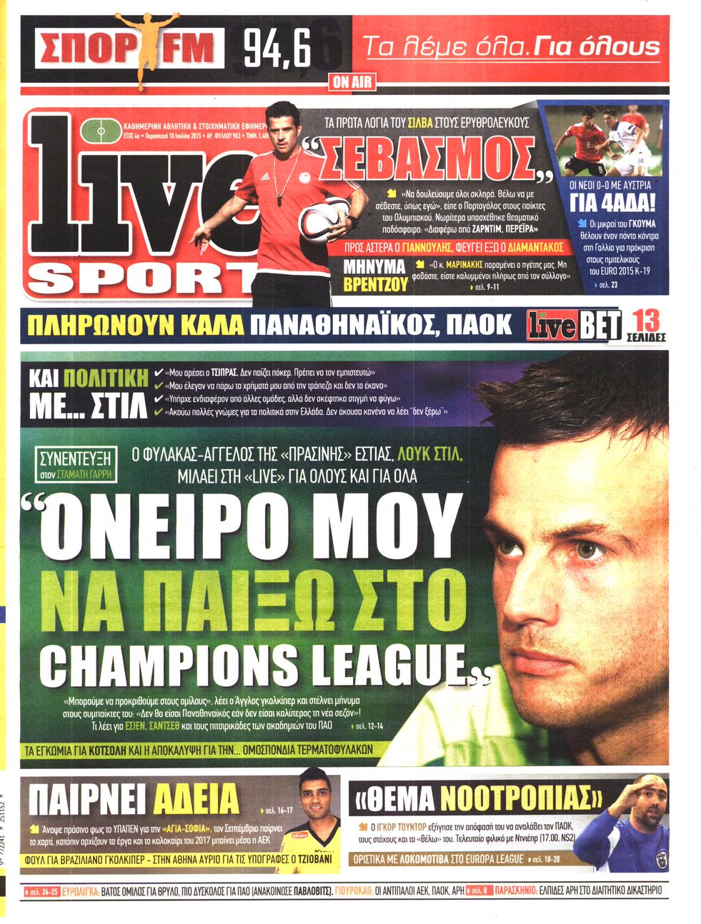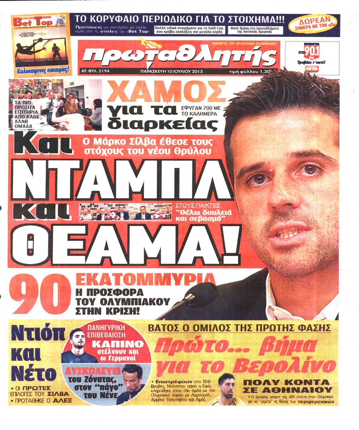 Οι αθλητικές εφημερίδες 10/7/2015 Enikos Newsroom 06:33, Παρασκευή 10 Ιουλίου 2015 Media Διαβάστε τα σημερινά πρωτοσέλιδα των αθλητικών εφημερίδων: ΑΘΛΗΤΙΚΕΣ ΕΦΗΜΕΡΙΔΕΣ ΠΡΩΤΟΣΕΛΙΔΑ Μοιράσου το: σχολίασε κι εσύ (0 σχόλια) Ακολουθήστε το enikos.gr στο Google News και μάθετε πρώτοι όλες τις ειδήσεις Δείτε όλες τις τελευταίες ειδήσεις από την Ελλάδα και τον Κόσμο στο enikos.gr Ειδήσεις Ροή Ειδήσεων 4 ώρες πριν Χριστούγεννα στα μπλόκα: Επιμένουν στις κινητοποιήσεις τους οι αγρότες – Ανοίγουν τα διόδια το Σαββατοκύριακο 4 ώρες πριν Ουκρανία: Η άνευ προηγουμένου επίθεση σε ρωσικό τάνκερ στη Μεσόγειο και το μήνυμα προς στον Πούτιν – Το «μακρύ χέρι» του Κιέβου 3 ώρες πριν Πούτιν: Τα μηνύματα σε Ευρώπη και ΝΑΤΟ από το μαραθώνιο «σόου» του – Η απαίτηση για «σεβασμό» και η ειρήνη «με τους όρους» της Μόσχας 4 ώρες πριν Τραμπ: Δεν αποκλείει την πιθανότητα ενός πολέμου στη Βενεζουέλα – «Ο Μαδούρο ξέρει καλύτερα από τον καθένα τι ακριβώς θέλω» 5 ώρες πριν Συνεχίζει να προκαλεί ο Μίτσκοσκι: «Για μένα το όνομα Μακεδονία είναι ιερό» 3 ώρες πριν Ανακαλύφθηκαν αρχαία χρυσά νομίσματα 2.200 ετών που απεικονίζουν τον θεό Απόλλωνα – Η άγνωστη σύνδεση με τον Φίλιππο Β΄ της Μακεδονίας 4 ώρες πριν Ύπνος: Μια κρυφή κατάσταση του εγκεφάλου πριν από τον ύπνο μπορεί να είναι το “κλειδί” για υψηλή ευφυΐα και δημιουργικότητα 5 ώρες πριν Αριθμολογία: Οι άνθρωποι που έχουν γεννηθεί αυτές τις 4 ημερομηνίες, συχνά παρεξηγούνται – «Η καλοσύνη τους κρύβει τεράστια δύναμη» 6 ώρες πριν Ξεχάστε το καθάρισμα το Σαββατοκύριακο: Ο «κανόνας των 20 λεπτών» που θα σας λύσει τα χέρια 8 λεπτά πριν Εξάρχεια: Ένταση με μολότοφ, χημικά και κρότου λάμψης 24 λεπτά πριν ΗΠΑ: Τραγωδία στην Αλαμπάμα – Σκότωσε την δημοσιογράφο σύζυγό του και αυτοκτόνησε μπροστά στον 3χρονο γιο τους 38 λεπτά πριν Πρόταση γάμου στο ΣΕΦ κατά την διάρκεια του αγώνα Ολυμπιακός-Βιλερμπάν – Δείτε βίντεο 53 λεπτά πριν Euroleague: Επέστρεψε στις νίκες ο Ολυμπιακός, πήρε την ματσάρα της χρονιάς η Μπάρτσα – Τα αποτελέσματα και η βαθμολογία 1 ώρα πριν Συρία: Μαζικά πλήγματα των ΗΠΑ σε θέσεις του Ισλαμικού Κράτους – Χέγκσεθ: «Δεν είναι αρχή πολέμου, είναι μια δήλωση εκδίκησης» για το θάνατο των στρατιωτών μας ENIKOS NETWORK Το ΕΚΑΒ τιμήθηκε από την Ακαδημία Αθηνών για τα 40 χρόνια προσφοράς του Έχετε πραγματικά μεγάλη καρδιά; 10 χαρακτηριστικά όσων έχουν καλοσύνη Αναστολή μέτρων αναγκαστικής εκτέλεσης για κτηνοτρόφους που πλήττονται από την ευλογιά των αιγοπροβάτων Πλήρης επάρκεια προϊόντων στις λαϊκές της Αττικής, παρά τις αγροτικές κινητοποιήσεις – Τι απαντούν οι πωλητές Χαρτογραφώντας το «σημείο χωρίς επιστροφή»: Για πρώτη φορά αποκαλύπτεται με λεπτομέρεια το ακανθώδες όριο της ατμόσφαιρας τ... Η Google καταργεί τη λειτουργία «dark web report» – Πώς θα μπορούν οι χρήστες να διαγράφουν τα δεδομένα τους περισσότερα 22:42 , Παρασκευή 19 Δεκεμβρίου 2025 Γιώργος Γιαννόπουλος για “Το σόι σου”: “Είναι ευτυχία και ευλογία αυτή η σειρά” «Είναι ευτυχία και ευλογία η συγκυρία αυτής της σειράς», θα πει ο Γιώργος Γιαννόπουλος -ο αγαπ... 20:37 , Παρασκευή 19 Δεκεμβρίου 2025 Don’t Forget The Lyrics: Η Έλλη Κοκκίνου υποδέχεται 4 παίκτες που θα κάνουν τα πάντα για να μη χάσουν ούτε… μισή λέξη από τους στίχους Το «Don’t Forget The Lyrics» επιστρέφει απόψε, Παρασκευή 19 Δεκεμβρίου, στις 21:00 με νέο επει... 19:31 , Παρασκευή 19 Δεκεμβρίου 2025 GNTM: Απόψε ο μεγάλος τελικός για τους 4 φιναλίστ Έπειτα από μήνες γεμάτους μόδα, δημιουργία και 