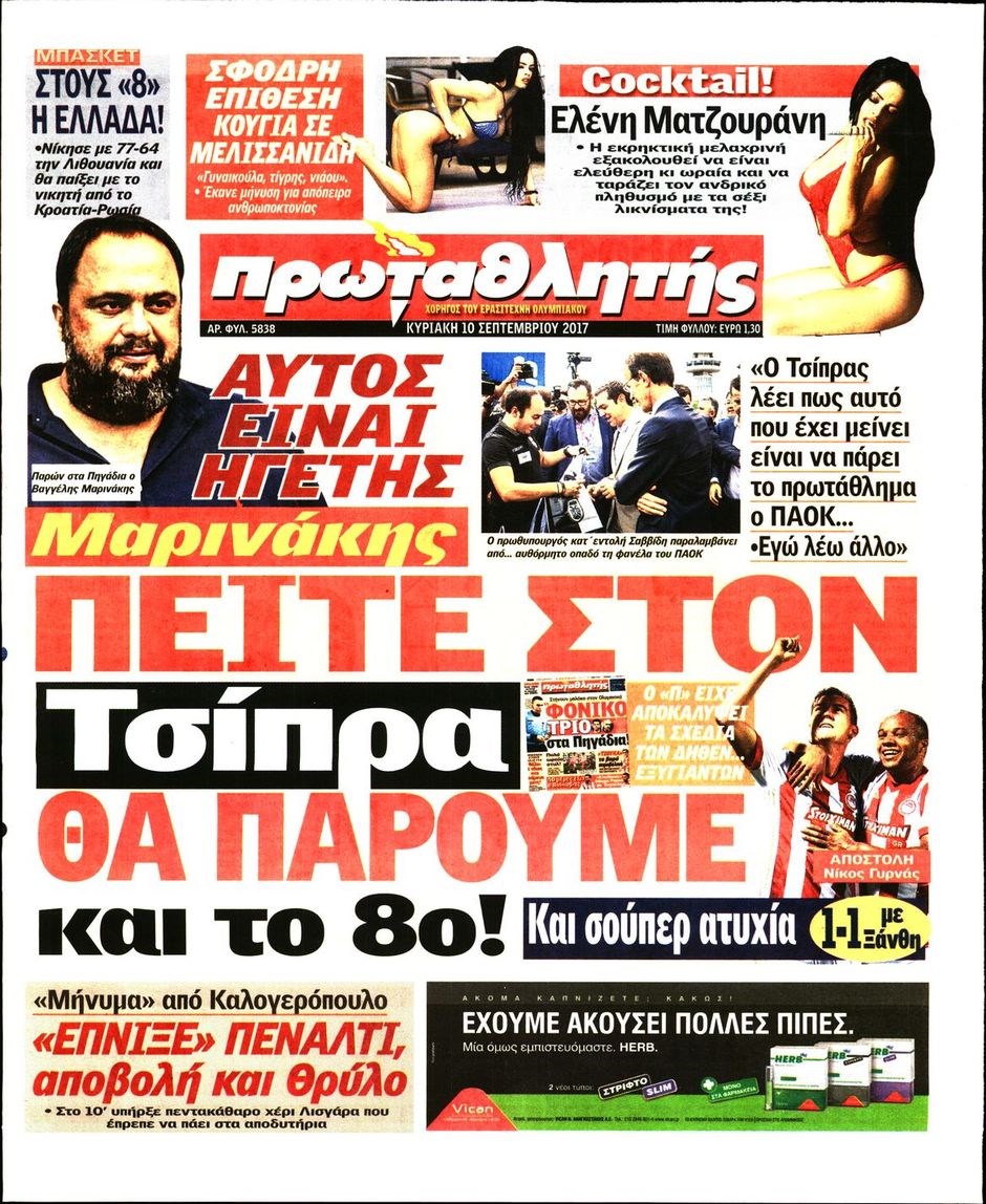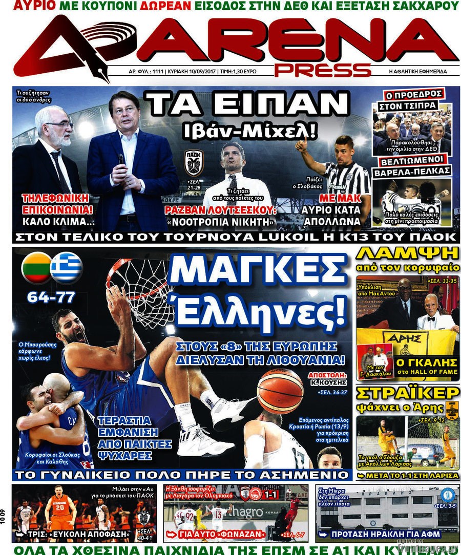 Οι αθλητικές εφημερίδες 10/9/2017 Enikos Newsroom 07:11, Κυριακή 10 Σεπτεμβρίου 2017 Media Διαβάστε τα σημερινά πρωτοσέλιδα των αθλητικών εφημερίδων: ΑΘΛΗΤΙΚΕΣ ΕΦΗΜΕΡΙΔΕΣ ΠΡΩΤΟΣΕΛΙΔΑ Μοιράσου το: σχολίασε κι εσύ (0 σχόλια) Ακολουθήστε το enikos.gr στο Google News και μάθετε πρώτοι όλες τις ειδήσεις Δείτε όλες τις τελευταίες ειδήσεις από την Ελλάδα και τον Κόσμο στο enikos.gr Ειδήσεις Ροή Ειδήσεων 4 ώρες πριν Από το Ορμένιο ως τα Μάλγαρα κι από τη Σιάτιστα μέχρι τη Νίκαια: Μπλόκα σε όλη την Ελλάδα – Το Σάββατο ανοίγουν τα διόδια οι αγρότες 1 ώρα πριν Εμπλοκή και αερομαχίες με οπλισμένα τουρκικά F-16 στο Αιγαίο 3 ώρες πριν Αττική: Θρίλερ με νεκρό βρέφος 5 μηνών – Κοιμόταν στο ίδιο κρεβάτι με τους γονείς του 57 λεπτά πριν Πούτιν: «Ναι, είμαι ερωτευμένος» – Βίντεο από τη σπάνια προσωπική παραδοχή του 3 ώρες πριν Μεσόγειος: Η διαδρομή του ρωσικού τάνκερ «Qendil» και η στοχευμένη επίθεση της Ουκρανίας με drone – Ο Πούτιν προειδοποίησε για αντίποινα 5 ώρες πριν Τα 5 ζώδια που ευνοούνται στην ερωτική ζωή τους την επόμενη εβδομάδα – «Η ενέργεια του Αιγόκερου φέρνει αγάπη και σταθερότητα» 6 ώρες πριν Αυτό το έξυπνο μαθηματικό κόλπο θα μπορούσε να αλλάξει τον τρόπο με τον οποίο οι επιστήμονες μελετούν τους σεισμούς 2 ώρες πριν Μήπως έχετε χάσει τον εαυτό σας στη σχέση σας; 7 «αθόρυβες» υποχωρήσεις που μάλλον κάνατε, χωρίς να το συνειδητοποιήσετε 4 ώρες πριν Κουίζ για την παλιά Αθήνα: Αναγνωρίζετε την περιοχή; Έχετε περάσει 100% από εκεί 4 λεπτά πριν Μπαράκ Ομπάμα: Τα βιβλία, οι ταινίες και τα τραγούδια που ξεχώρισε το 2025 – Πλήρης λίστα 8 λεπτά πριν Don’t Forget The Lyrics: Η Έλλη Κοκκίνου υποδέχεται 4 παίκτες που θα κάνουν τα πάντα για να μη χάσουν ούτε… μισή λέξη από τους στίχους 14 λεπτά πριν Πλεύρης στον ΑΝΤ1: Η βασική πολιτική που ψηφίστηκε από τους υπουργούς Μετανάστευσης είναι η δημιουργία κέντρων κράτησης μεταναστών στην Αφρική – ΒΙΝΤΕΟ 19 λεπτά πριν Η εξομολόγηση της Νίκης Σερέτη: «Δεν κρύβω ότι ήταν πάρα πολύ δύσκολο όλο αυτό που βίωσα» 24 λεπτά πριν Αγρότες: Κλειστό ξανά το ρεύμα εισόδου στα Μάλγαρα – Άνοιξαν τον κόμβο της Χαλκηδόνας ENIKOS NETWORK Έχετε πραγματικά μεγάλη καρδιά; 10 χαρακτηριστικά όσων έχουν καλοσύνη «Η σούπερ» γρίπη εξαπλώνεται στην Ευρώπη-Στοιχεία από το ECDC για την αποτελεσματικότητα του εμβολίου Επίδομα παιδιού: Πότε ανοίγει ξανά η πλατφόρμα για τις αιτήσεις Προκήρυξη ΑΣΕΠ για 397 μόνιμες προσλήψεις στο Δημόσιο: Βγήκαν τα προσωρινά αποτελέσματα – Πότε αρχίζει η υποβολή ενστάσεων Χαρτογραφώντας το «σημείο χωρίς επιστροφή»: Για πρώτη φορά αποκαλύπτεται με λεπτομέρεια το ακανθώδες όριο της ατμόσφαιρας τ... Η Google καταργεί τη λειτουργία «dark web report» – Πώς θα μπορούν οι χρήστες να διαγράφουν τα δεδομένα τους περισσότερα 20:37 , Παρασκευή 19 Δεκεμβρίου 2025 Don’t Forget The Lyrics: Η Έλλη Κοκκίνου υποδέχεται 4 παίκτες που θα κάνουν τα πάντα για να μη χάσουν ούτε… μισή λέξη από τους στίχους Το «Don’t Forget The Lyrics» επιστρέφει απόψε, Παρασκευή 19 Δεκεμβρίου, στις 21:00 με νέο επει... 19:31 , Παρασκευή 19 Δεκεμβρίου 2025 GNTM: Απόψε ο μεγάλος τελικός για τους 4 φιναλίστ Έπειτα από μήνες γεμάτους μόδα, δημιουργία και έντονες αναμετρήσεις, το GNTM 2025 κορυφώνεται,... 18:11 , Παρασκευή 19 Δεκεμβρίου 2025 Το σόι σου: Ο Άρης έρχεται στην Ελλάδα για τις γιορτές των Χριστουγέννων – Τι θα δούμε στο αποψινό εορταστικό επεισόδιο Ένα απολαυστικό, εορταστικό επεισόδιο της σειράς “Το σόι σου”, γεμάτο ευτράπελα αλ... 15:15 , Παρασκευή 19 Δεκεμβρίου 2025 Την Κυ